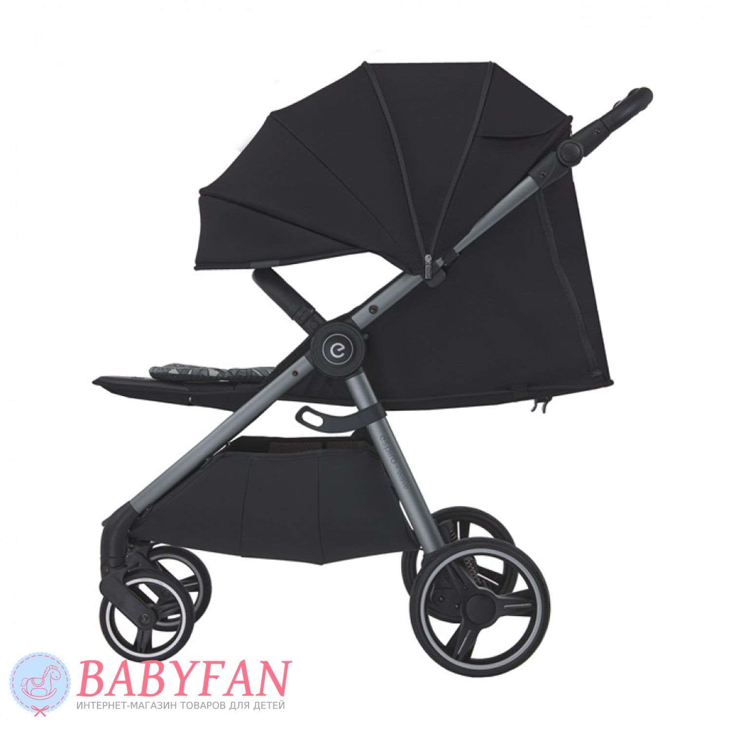 Espiro Wave – повнорозмірний прогулянковий візок для дітей від народження до 4 років, обмеження за вагою дитини – до 22 кг. Відповідає найновішому європейському стандарту EN 1888-2:2018. Виконана у класичному дизайні з великими задніми колесами та передніми меншого розміру. Виготовлена із міцних та довговічних матеріалів – алюмінієве шасі, оббивка сидіння із щільного водовідштовхувального матеріалу, покришки коліс із поліуретану. Обладнана великим регульованим капюшоном із сонцезахисним козирком та оглядовим віконцем на магніті. За капюшоном розташована кишеня на блискавці і сіткою для провітрювання внутрішнього простору прогулянкового блоку.