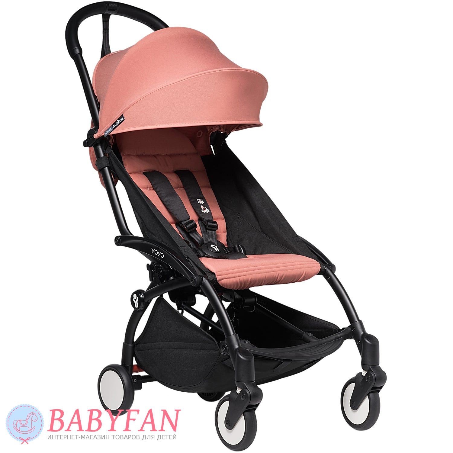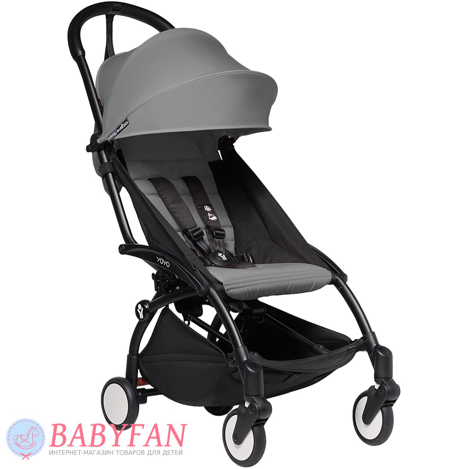 BABYZEN YOYO² – надлегкий, ультракомпактний міський прогулянковий візок для дітей від 6 місяців до 4 років, обмеження за вагою дитини – до 22 кг. Виготовлена в класичному дизайні з довговічних, міцних та практичних матеріалів: шасі з алюмінієвого сплаву з елементами з нержавіючої сталі та технічного пластику, посиленого оптоволокном; оббивка сидіння із водовідштовхувальної тканини із захистом від ультрафіолетового випромінювання UPF 50+. Коляска компактно і легко складається однією рукою - у складеному стані самостійно стоїть, поміщається в ручну поклажу літака. За безпеку дитини відповідають 5-точкові ремені безпеки у м'якими плечовими накладками. Переноситься за підлокітники або на ремені – на плечі.