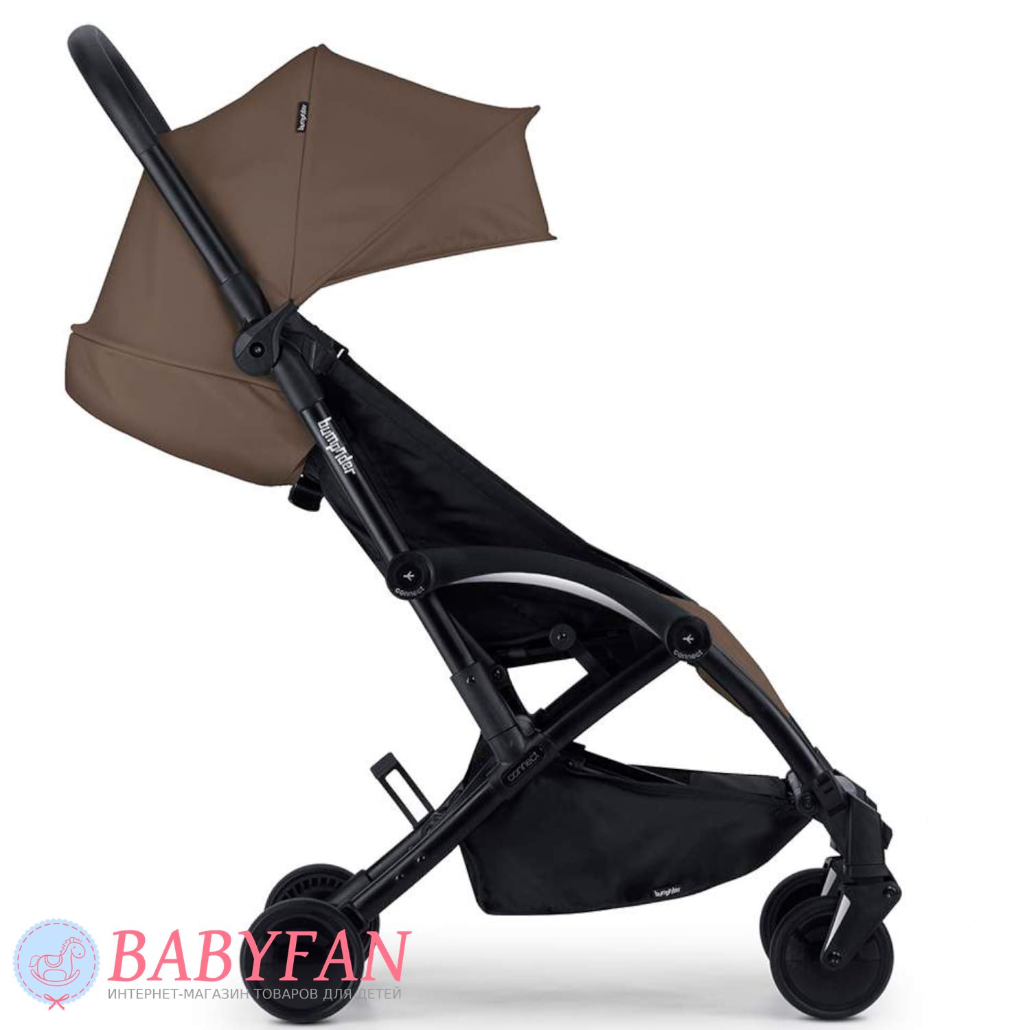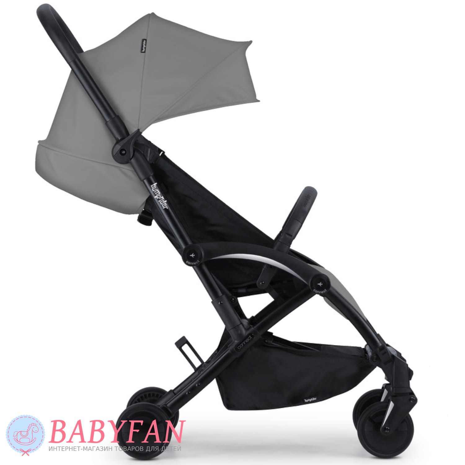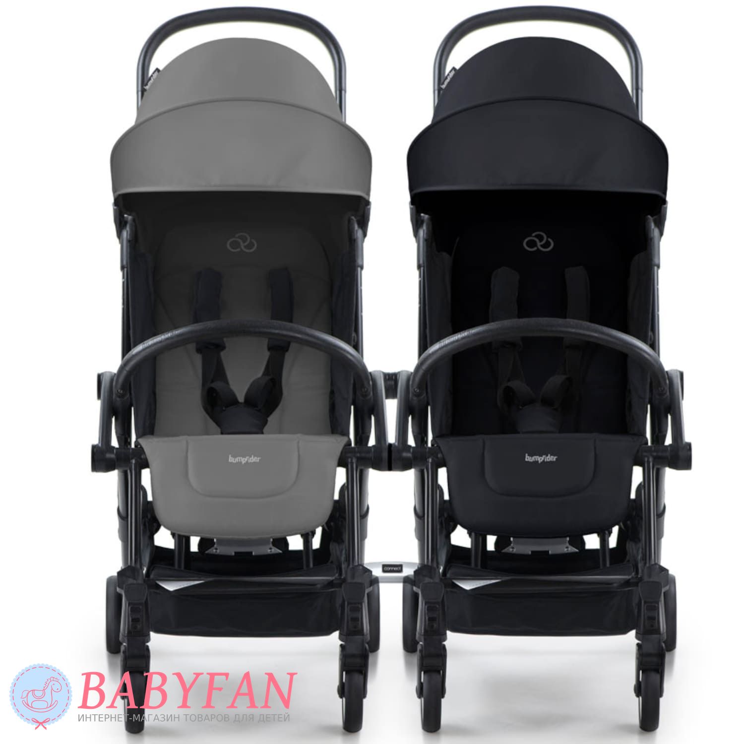 Прогулянковий візок Bumprider Connect 3 – інноваційна модель з потужними магнітами, розташованими з боків рами, за допомогою яких можна прикріпити до коляски ще один візок, в результаті чого виходить практична транспортна система для двійнят або погодок. Використовуючи адаптери на візок також можна встановити люльку або автокрісло - модулі купуються окремо. Це зручна модель коляски для повсякденного використання та подорожей.