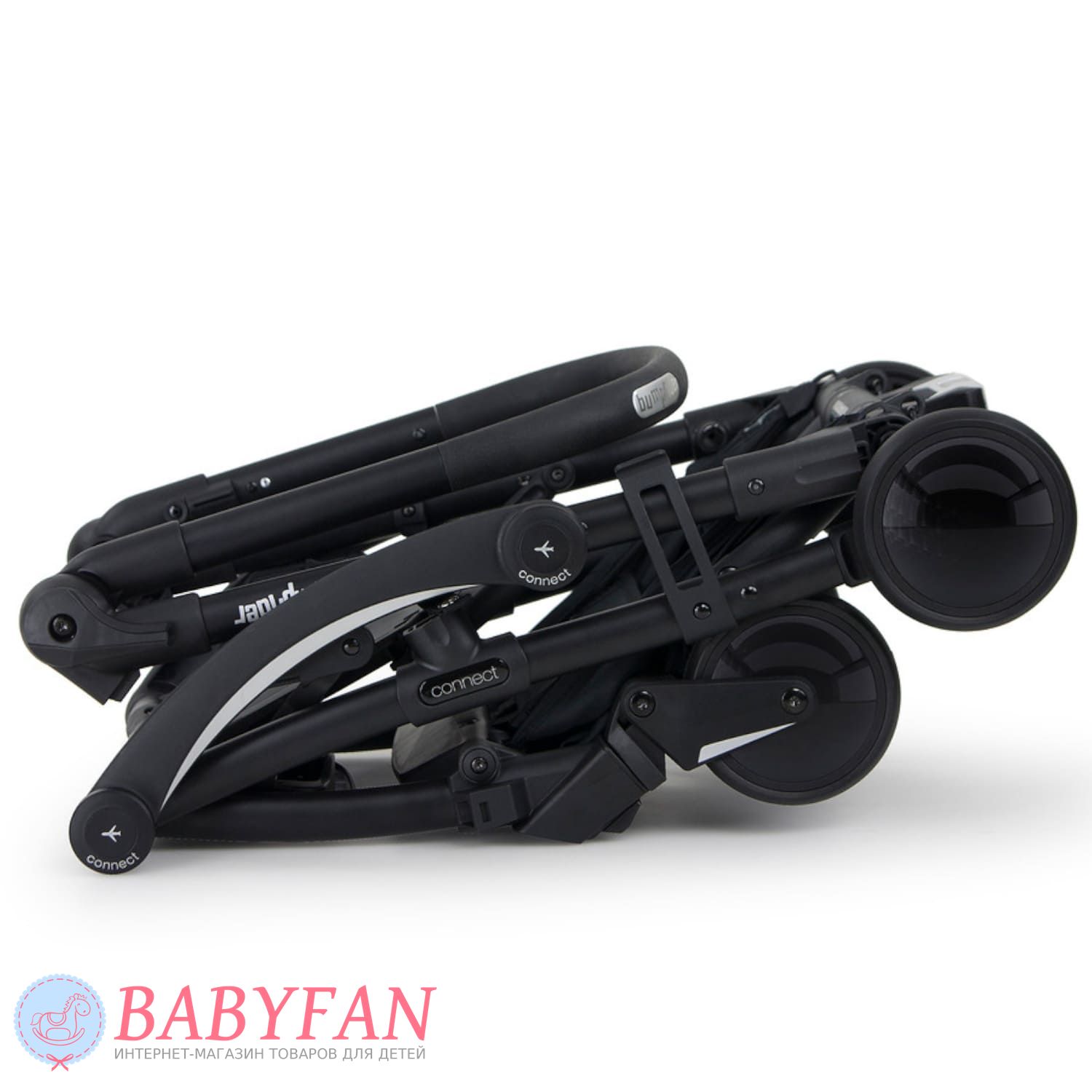 - коляска Bumprider Connect оснащена чотирма ненадувними колесами, стійкими до проколів, які забезпечують хорошу прохідність та м'який хід;