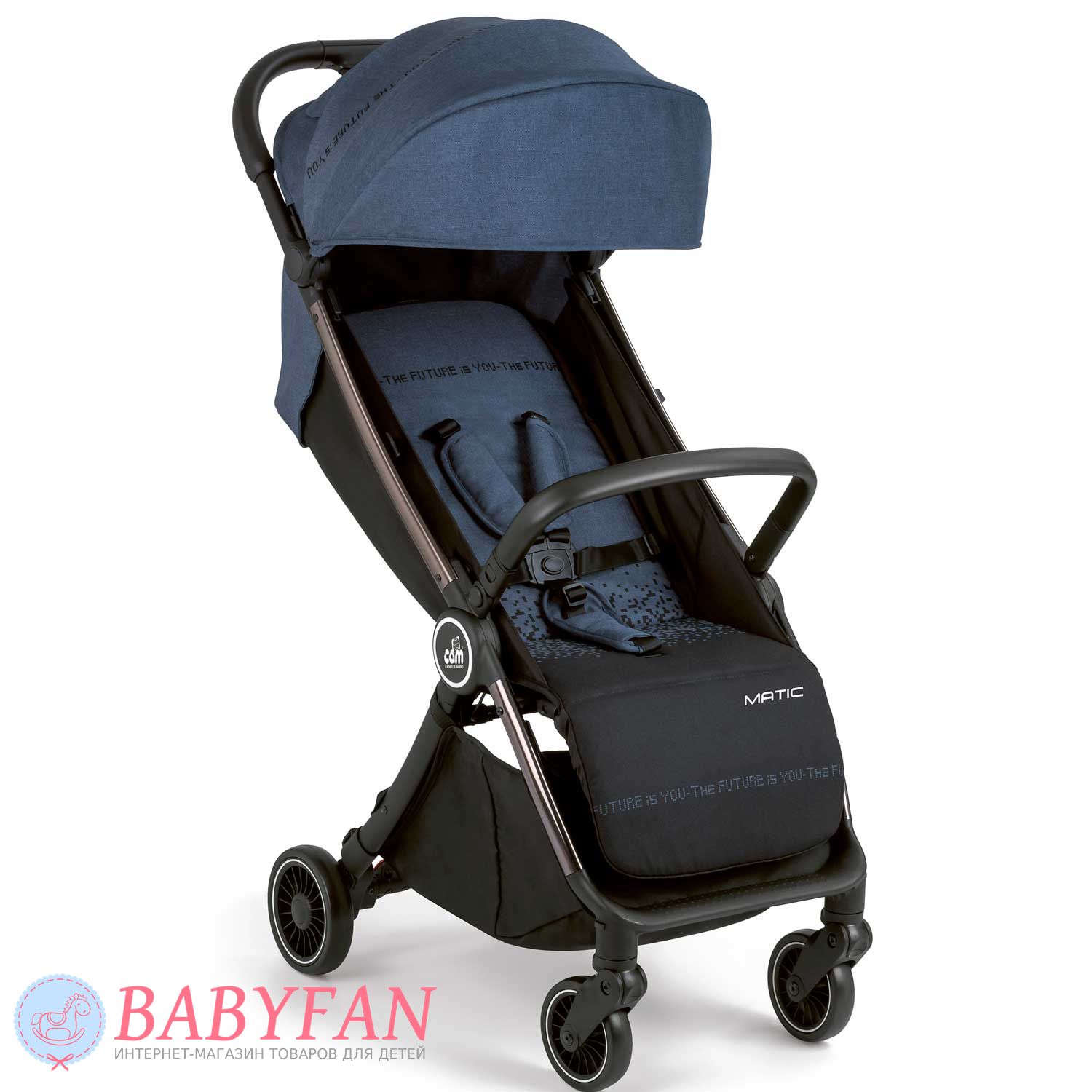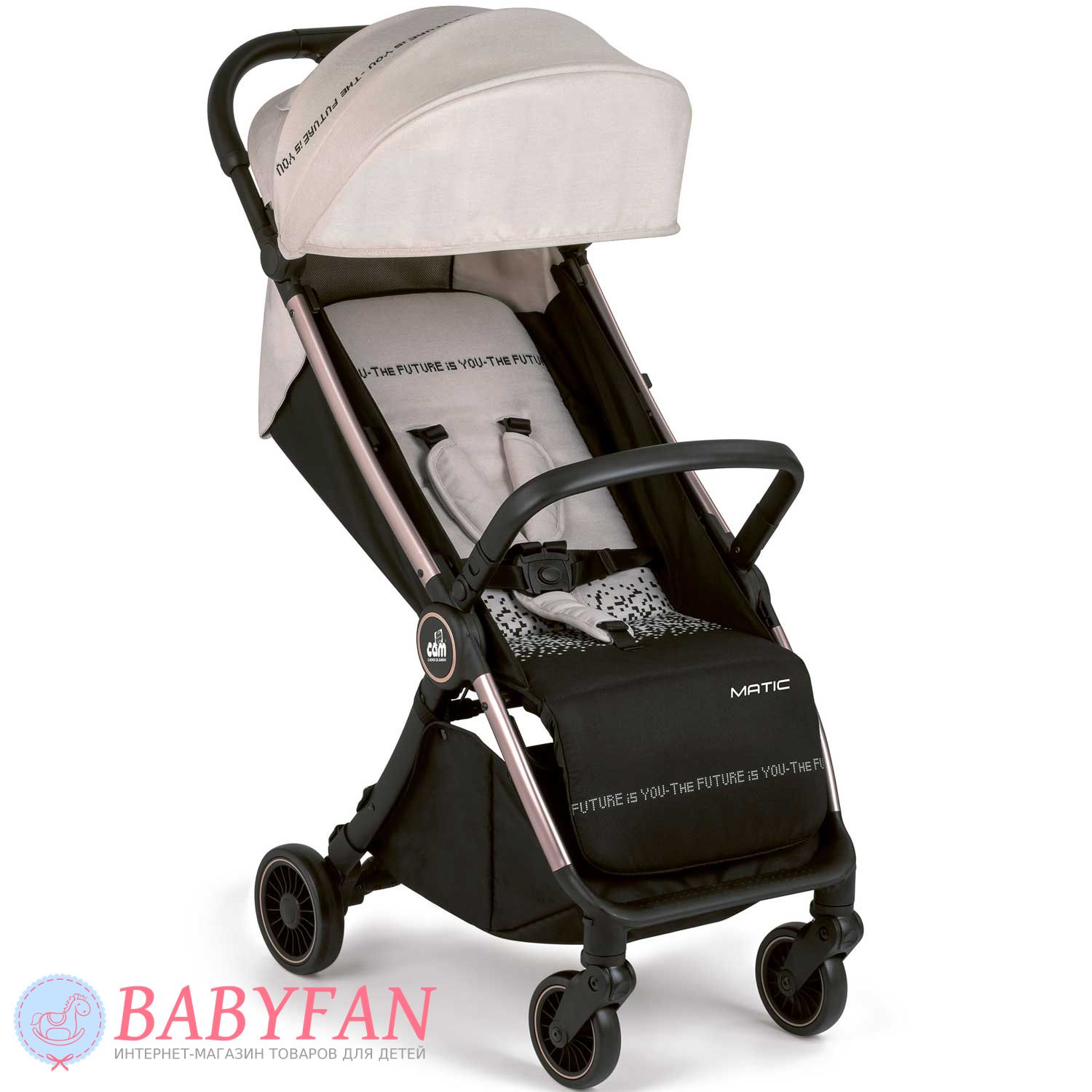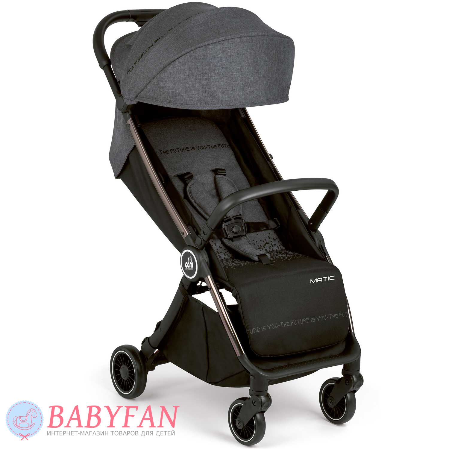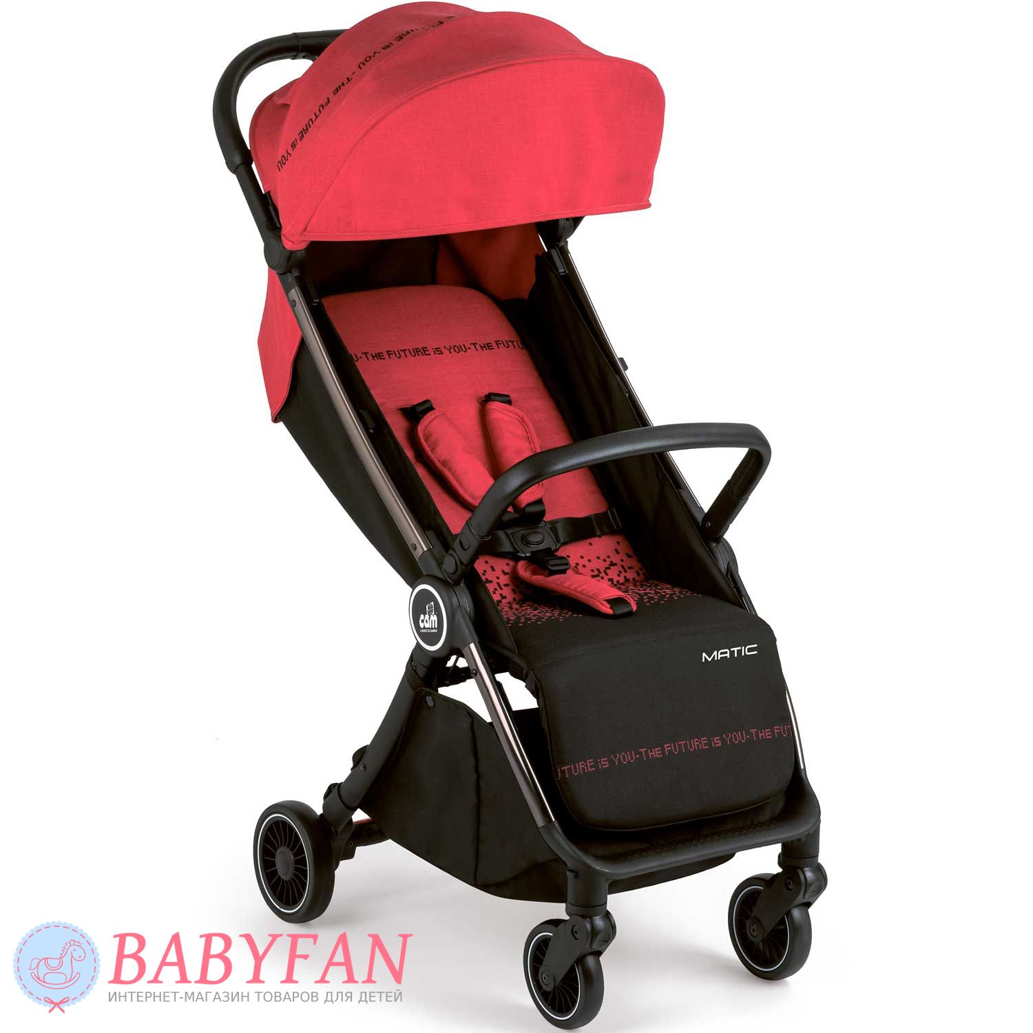 Прогулянковий візочок Cam Matic – компактна дуже легка модель коляски з унікальними характеристиками та аксесуарами в комплекті. З особливостей варто відзначити великий, продуманий каптур, який чудово закриває малюка навіть у положенні сну. Рама виготовлена з алюмінію, легка та міцна. Передні пари коліс – обертаються на 360 градусів. Задня пара коліс – оснащені ножним гальмом стоянки. Великий, шикарний кошик для покупок. Супер компактне складання, вертикальна стійкість у складеному стані. Відмінний варіант коляски для літа.