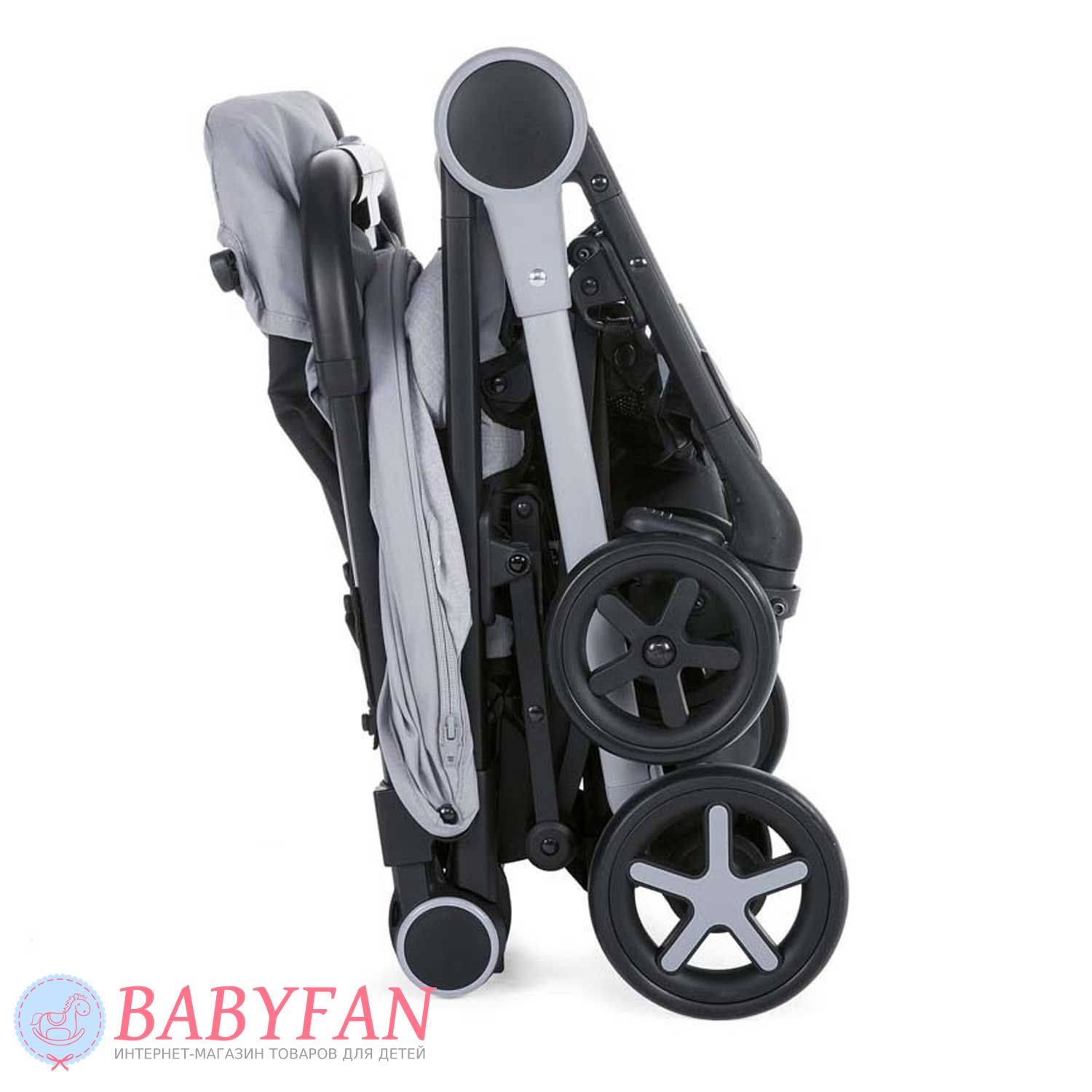 - інноваційна система складання в ультра компактну конструкцію, що фіксується в цьому положенні, що унеможливлює її випадкове розкладання. У складеному вигляді візок зручно переносити, скориставшись спеціальною ручкою або спеціальною сумкою переноскою. У багажнику завжди знайдеться місце для складеного візка;