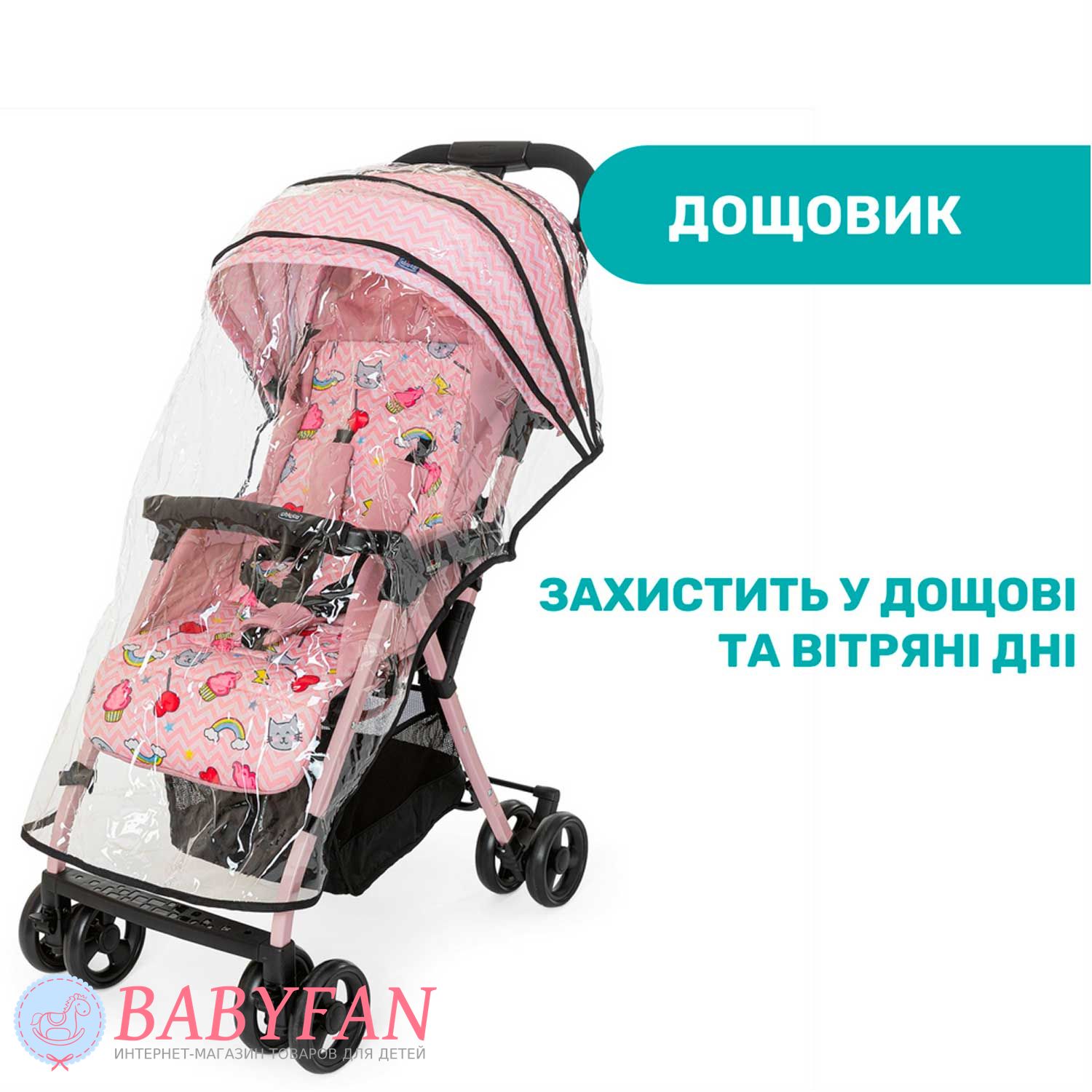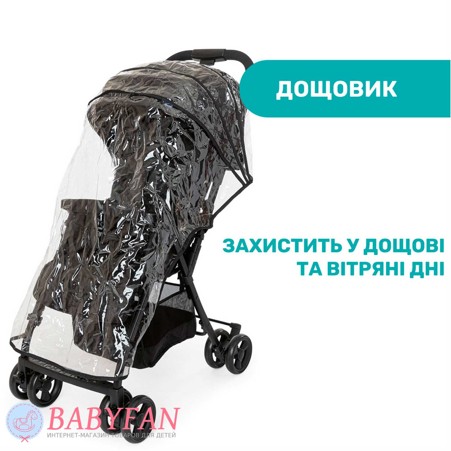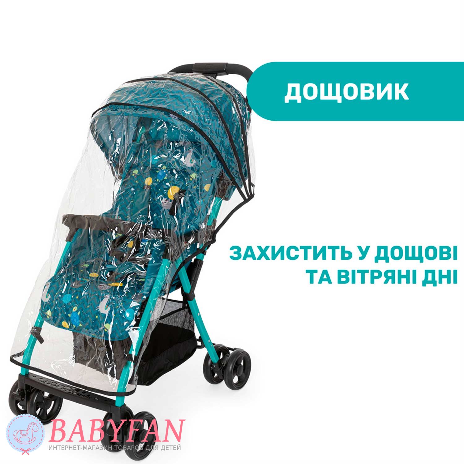 - надійно захищає від палючих сонячних променів розкладний козирок, також оберігає від опадів та вітру;
