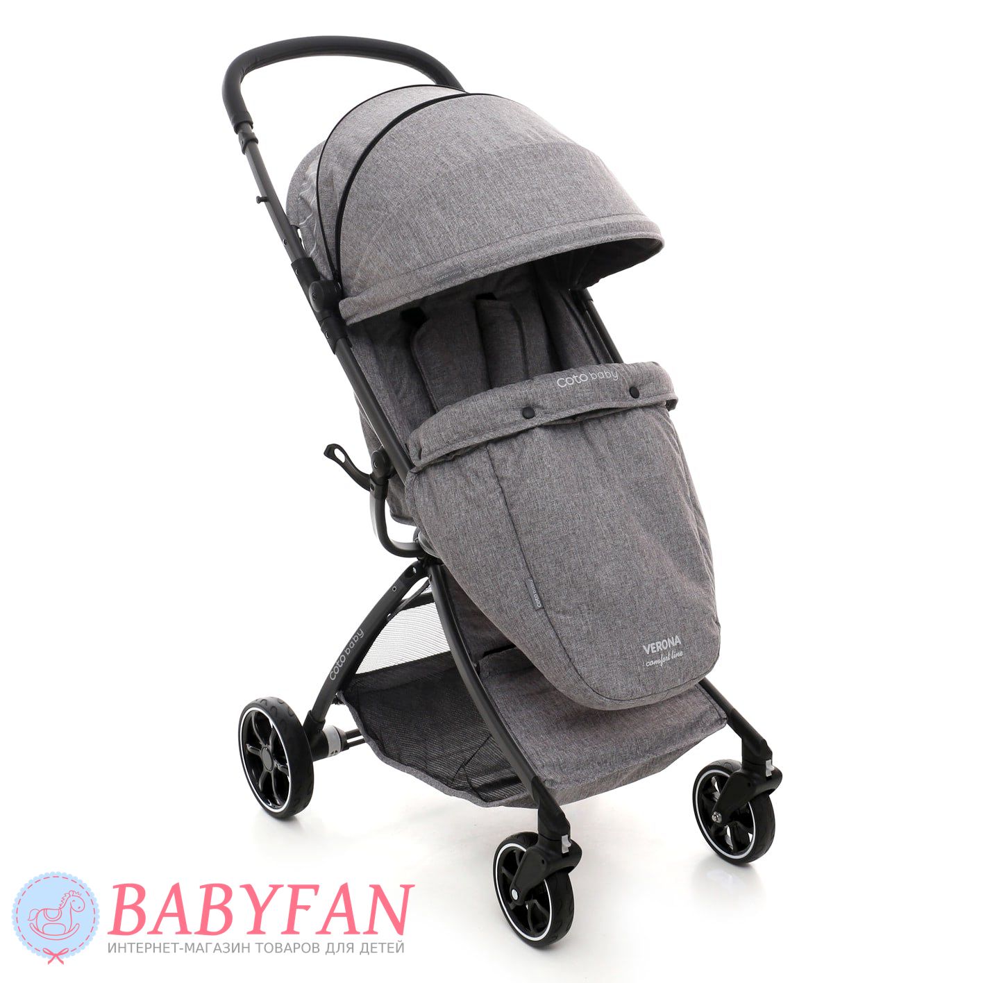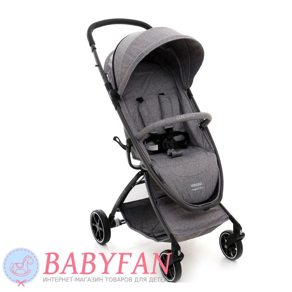 Прогулянковий візочок Coto Baby Verona Comfort Line – практичний дуже легкий візочок з оббивкою з натурального матеріалу для приємних прогулянок. Модель із зручним механізмом складання, регульованим нахилом спинки сидіння та блокованими поворотними передніми сидіннями. Завдяки ножному утепленому конверту та вентильованій частині капюшона створюється приємний мікроклімат у будь-який сезон. Це зручна коляска для дитини та батьків.