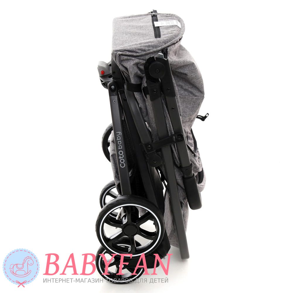 - зручний механізм складання з блокуванням від випадкового розкладання. Складена коляска компактна і зручна у зберіганні, перенесенні та транспортуванні в будь-якому вигляді автотранспорту. Розкладається візок також просто, для чого достатньо зняти блокатор;