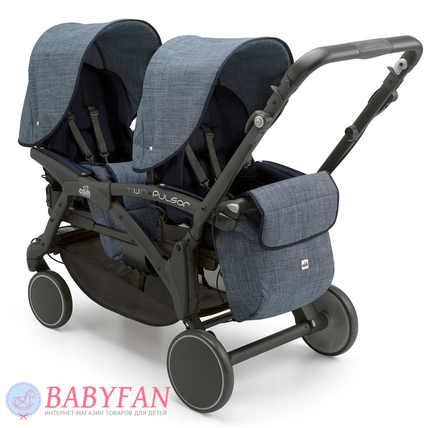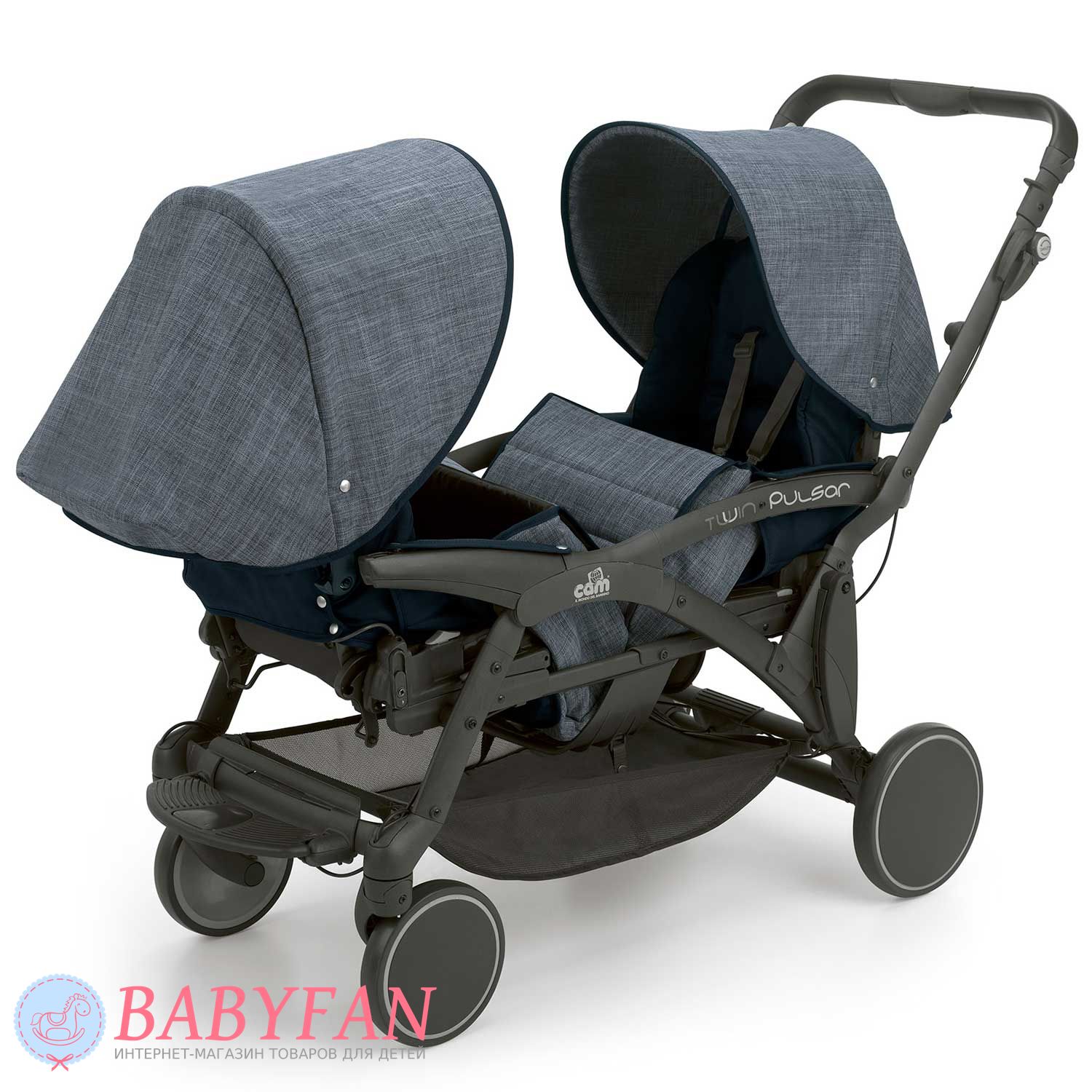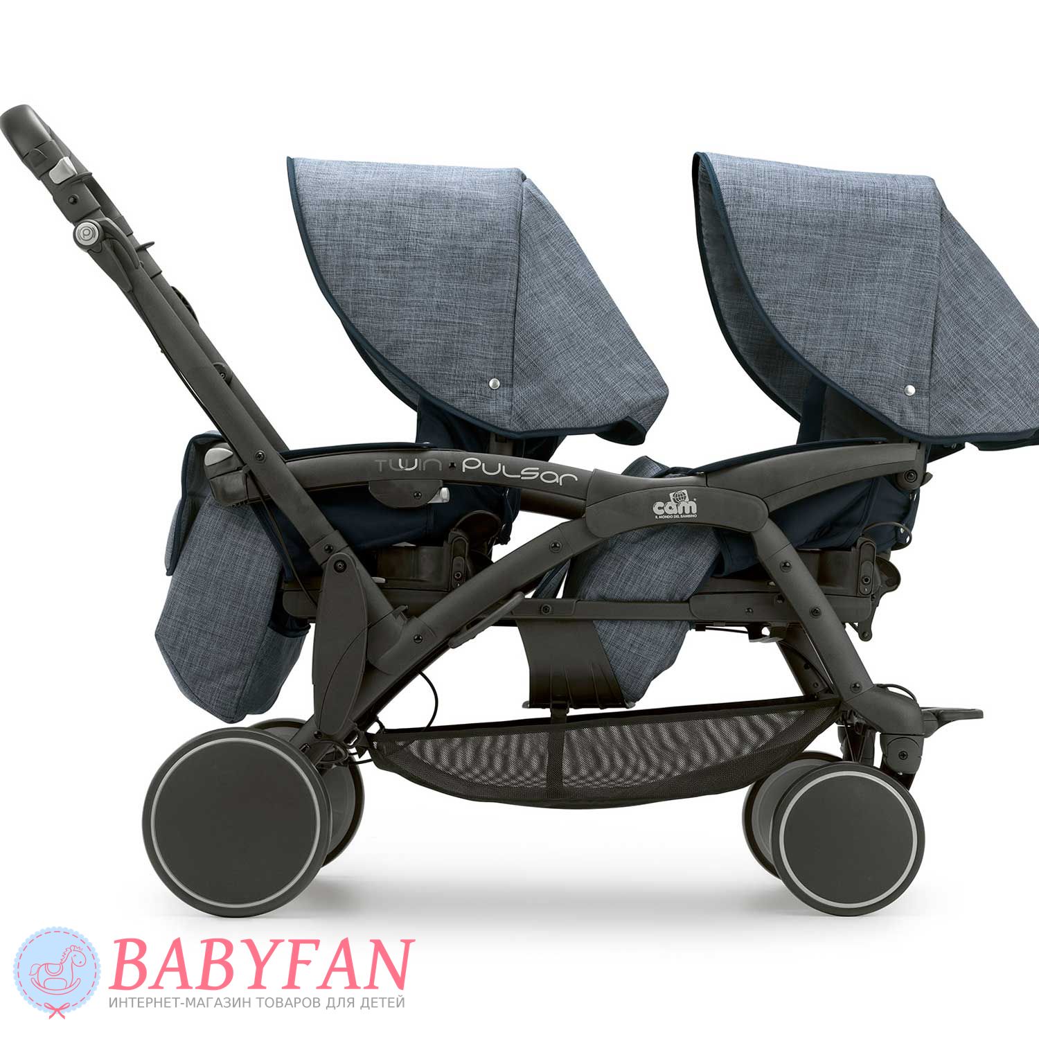 Прогулянковий візочок для двох дітей Cam Twin Pulsar - оптимальний варіант коляски для двійнят. Коляску можна використовувати для прогулянок не тільки двійнят, а й дітей з віковою різницею від народження до 3-х років. Вигідною відмінністю цієї моделі є функція реверсивності в сидіннях, які встановлюються в 3-х різних позиціях: віч-на-віч, особою до мами, спиною до мами. Комфортні прогулянки в стильному візку незалежно від погодних умов та якості доріг.