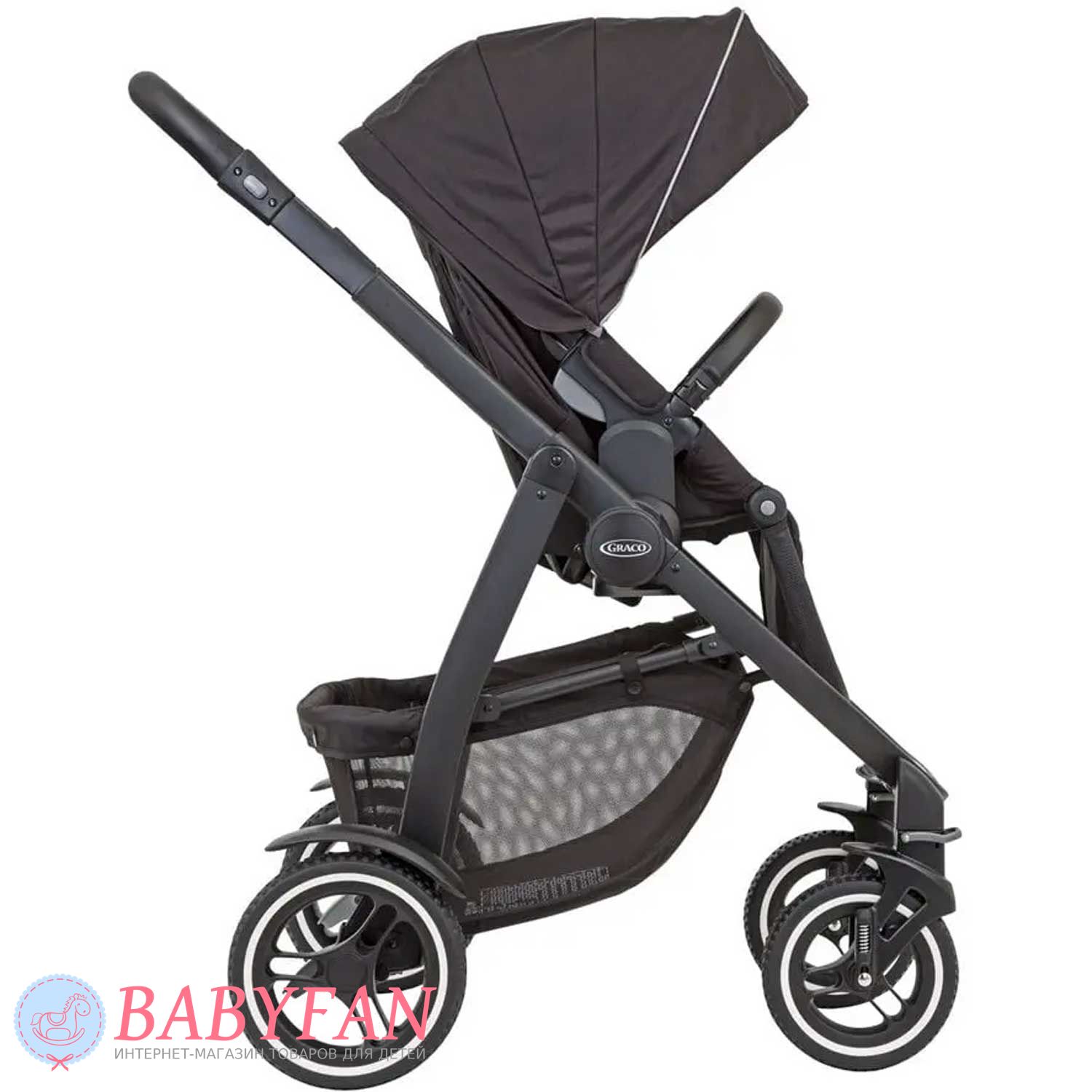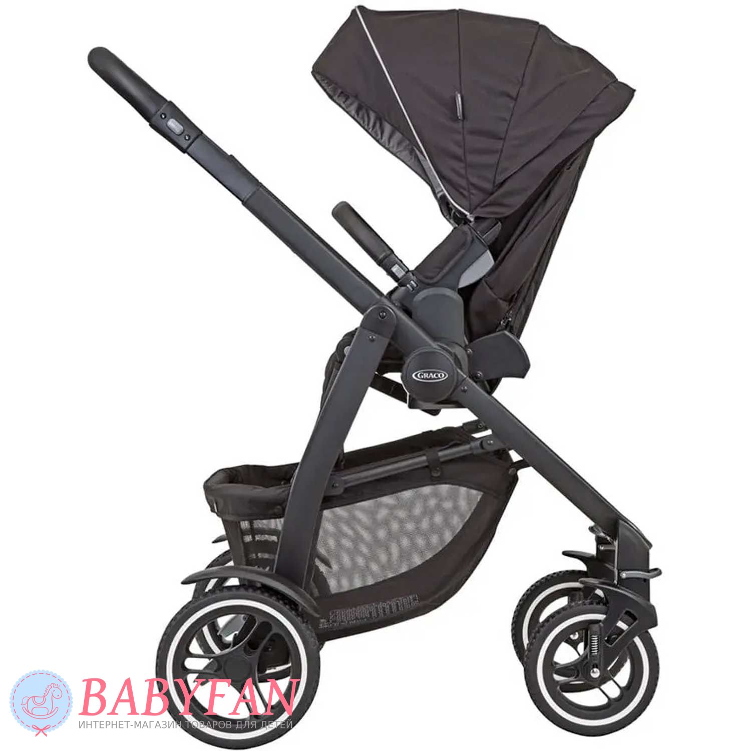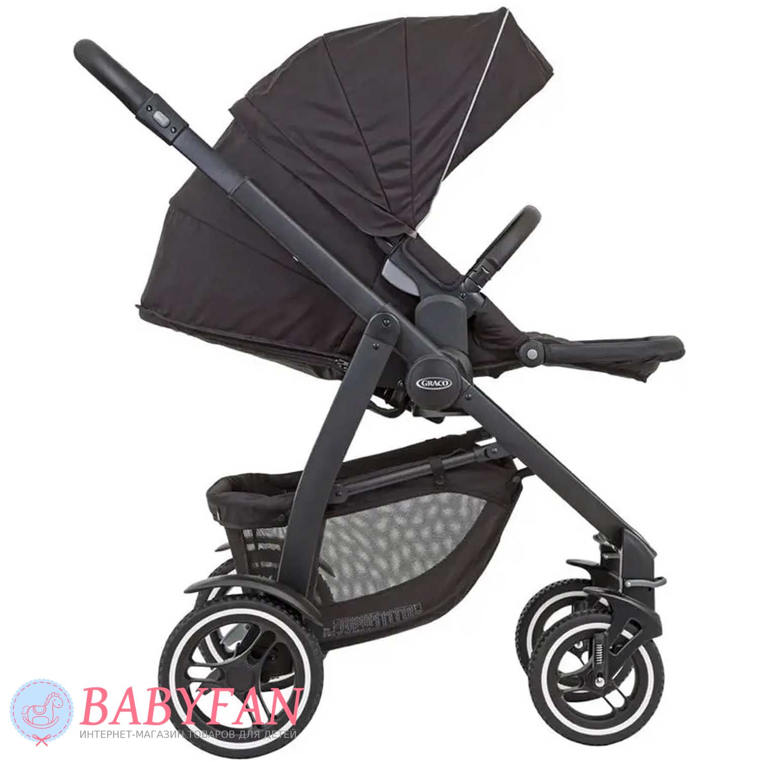 Коляска Graco Evo XT – комфортабельний всюдихід. Чудову прохідність, маневреність та стійкість цієї моделі забезпечують гумові з бризковиками великі колеса, довга колісна база та підвіска на кожному колесі. Трипозиційне сидіння з 2-хсторонньою установкою щодо шляху прямування, висувний каптур і проста експлуатація коляски створюють часом цілорічних прогулянок максимально комфортні умови для обох: дитини та мами.