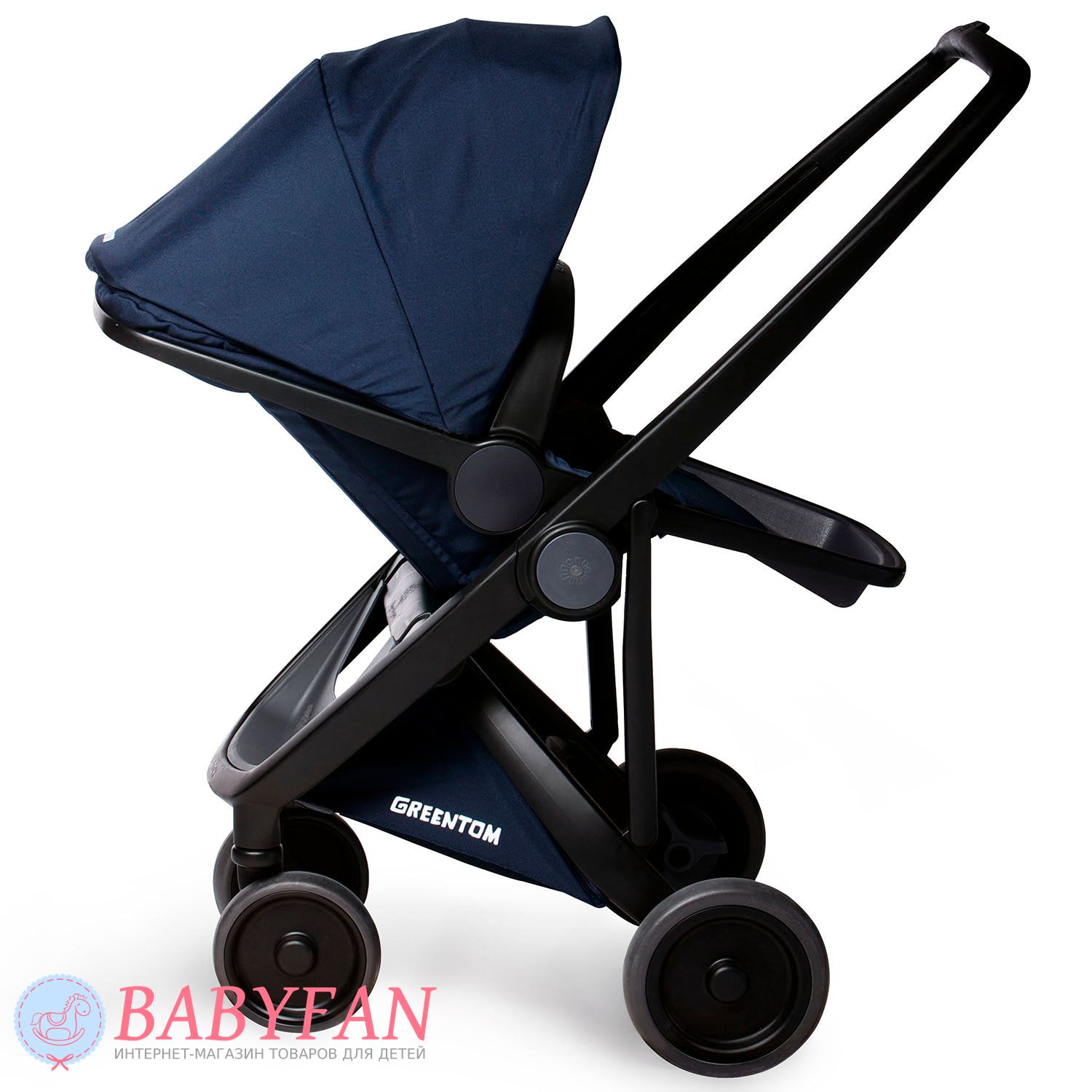 - реверсивний прогулянковий модуль, що встановлюється «по ходу руху», якщо дитині цікаво вивчати навколишнє середовище та «проти ходу руху» у разі необхідності забезпечення постійного візуального контакту між коляскою та дитиною;