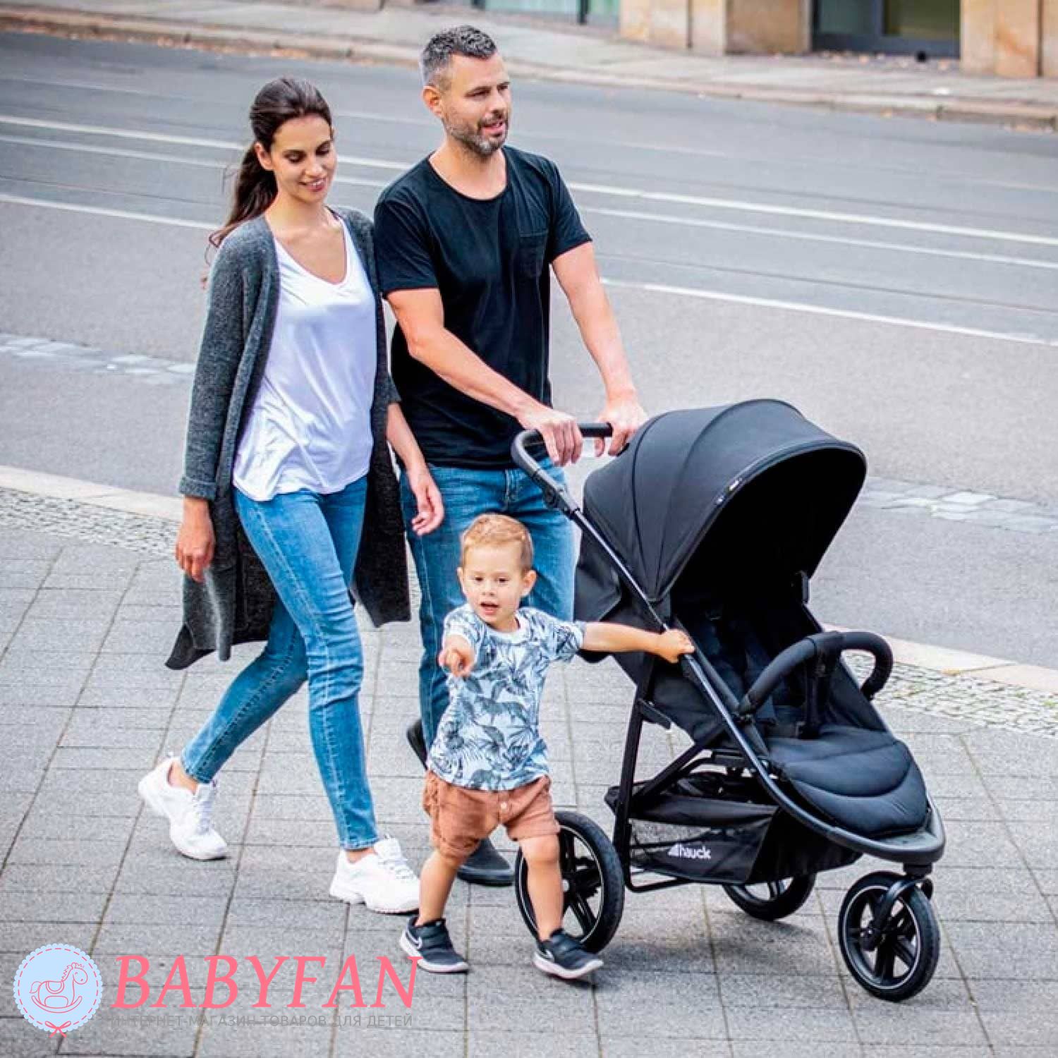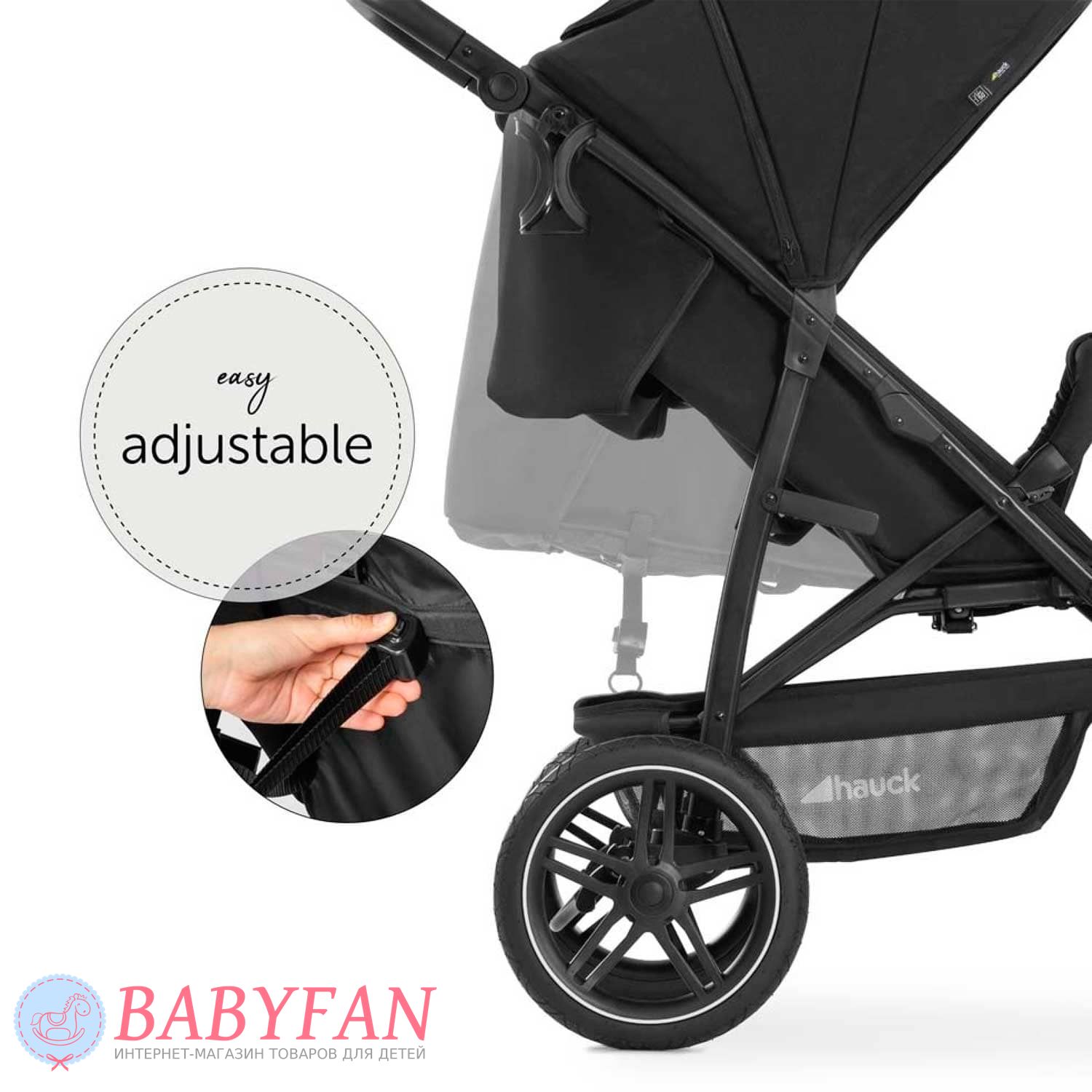 - коляска Hauck Rapid 3R оснащена трьома великими колесами з гарною амортизацією, тому її можна назвати всюдиходом, що плавно проходить будь-якими дорогами;