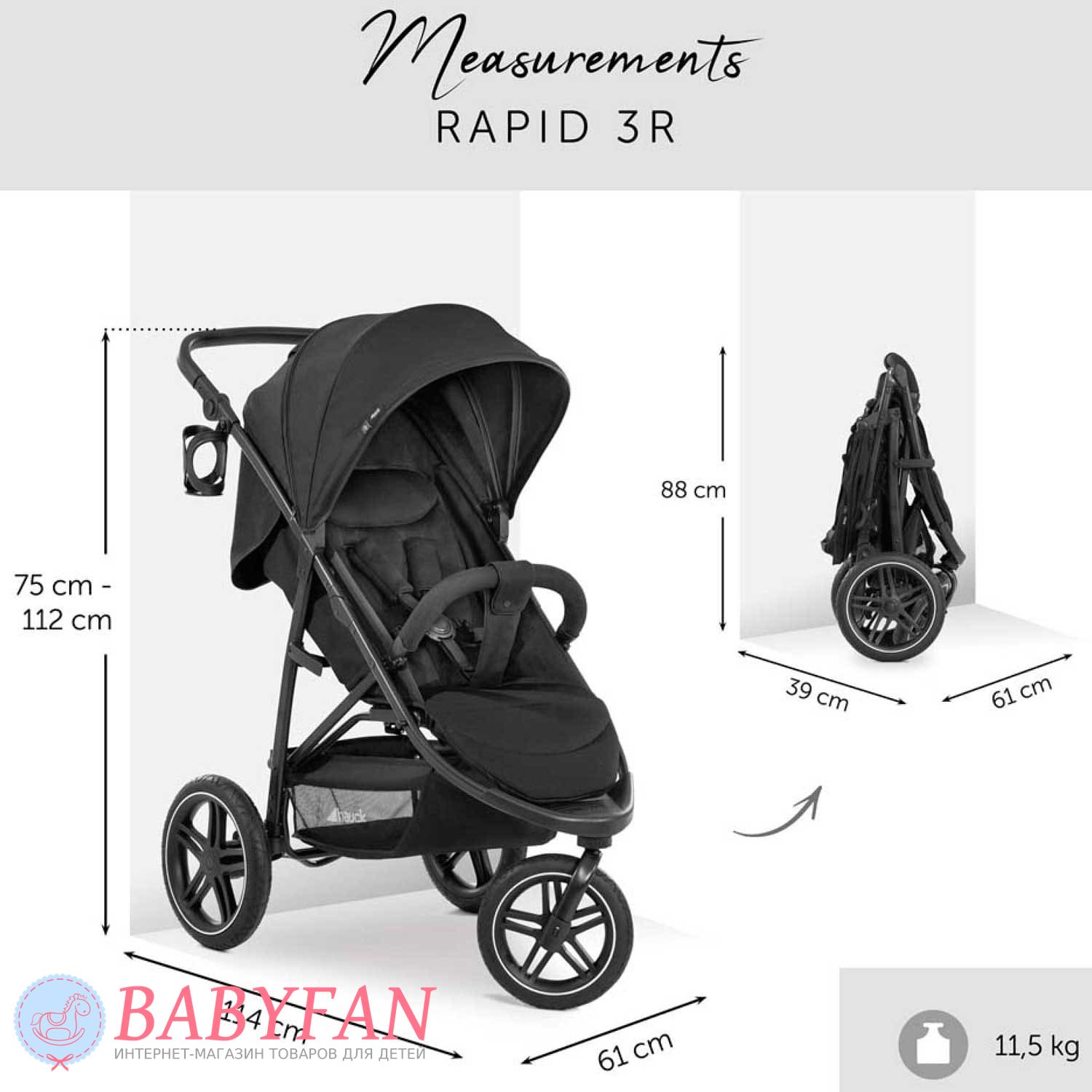 - вікова група, для якої рекомендовано візок Hauck Rapid 3R: 6 місяців – 3-4 роки (максимальне навантаження 25 кг);