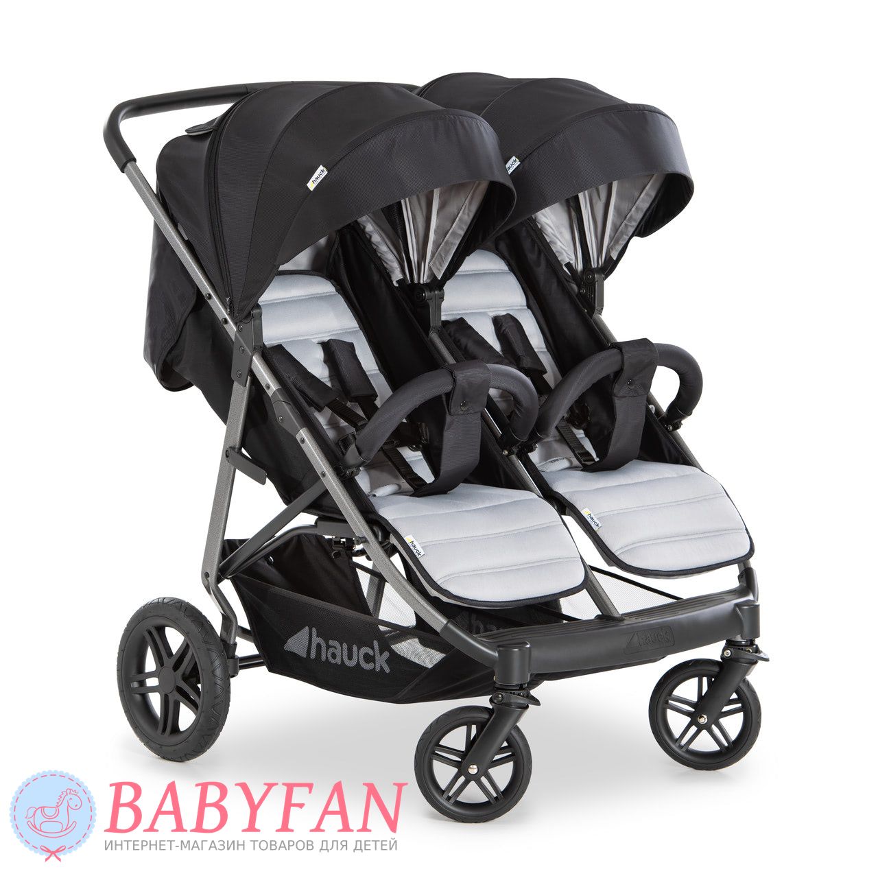 Прогулянковий візочок Hauck Rapid 3R Duo – практичний візочок, виконаний у стильному дизайні, значно полегшує життя молодих батьків близнюків або погодок. Коляска має дуже вузьке шасі для конструкцій, призначених для двох дітей, всього 77 см, завдяки чому забезпечується хороша маневреність і проходження у багато дверей та багатьох проходів. Завдяки регулюванню для кожної дитини створюються комфортні умови, навіть передбачена система вентиляції для прогулянок у літню спеку.