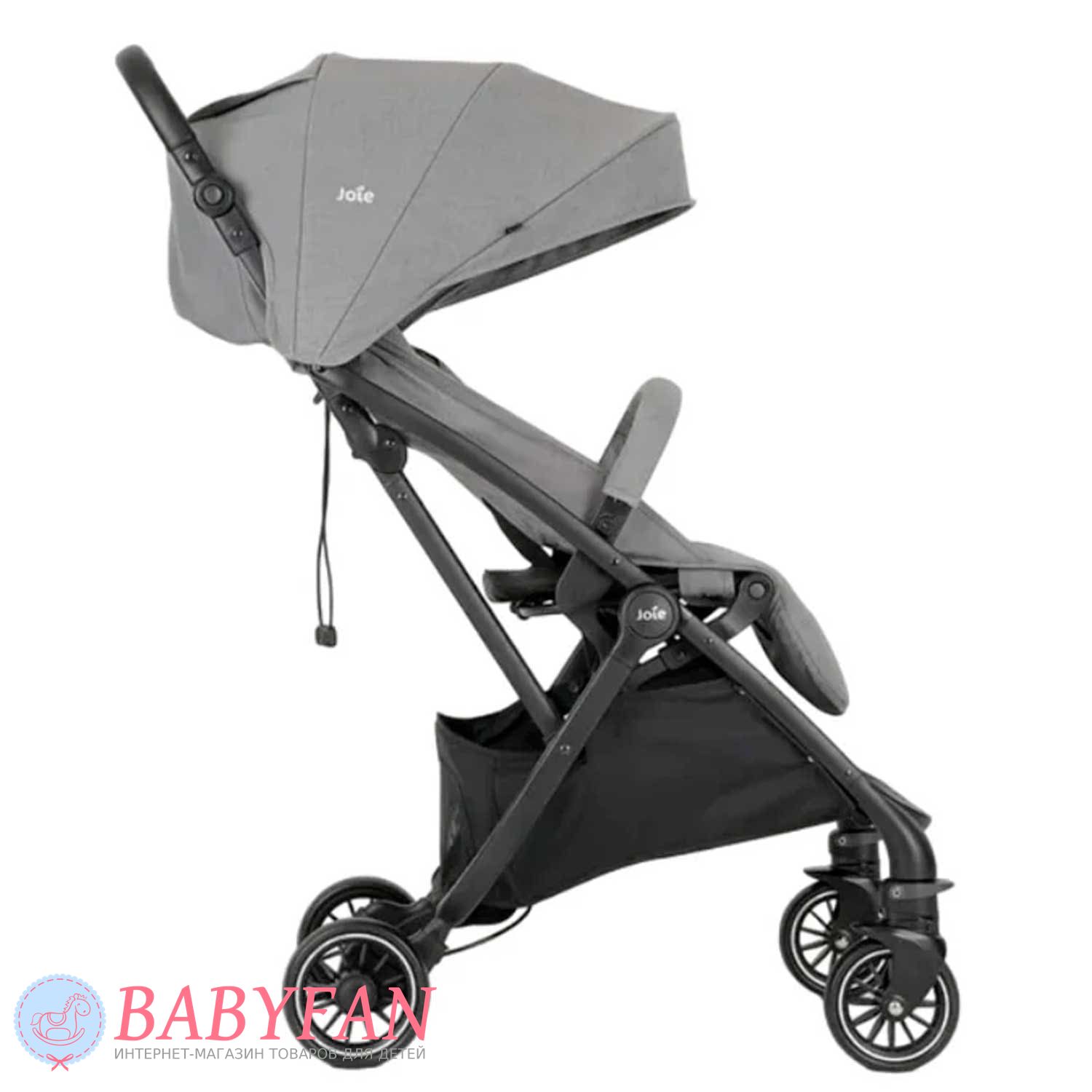 - проста система додавання за допомогою однієї руки в компактну «книгу». Є плечовий ремінь, що дозволяє нести складену коляску на плечі. Складена коляска Joie Tourist 2019 зручна у транспортуванні, оскільки вільно розміщується у багажному відділенні;