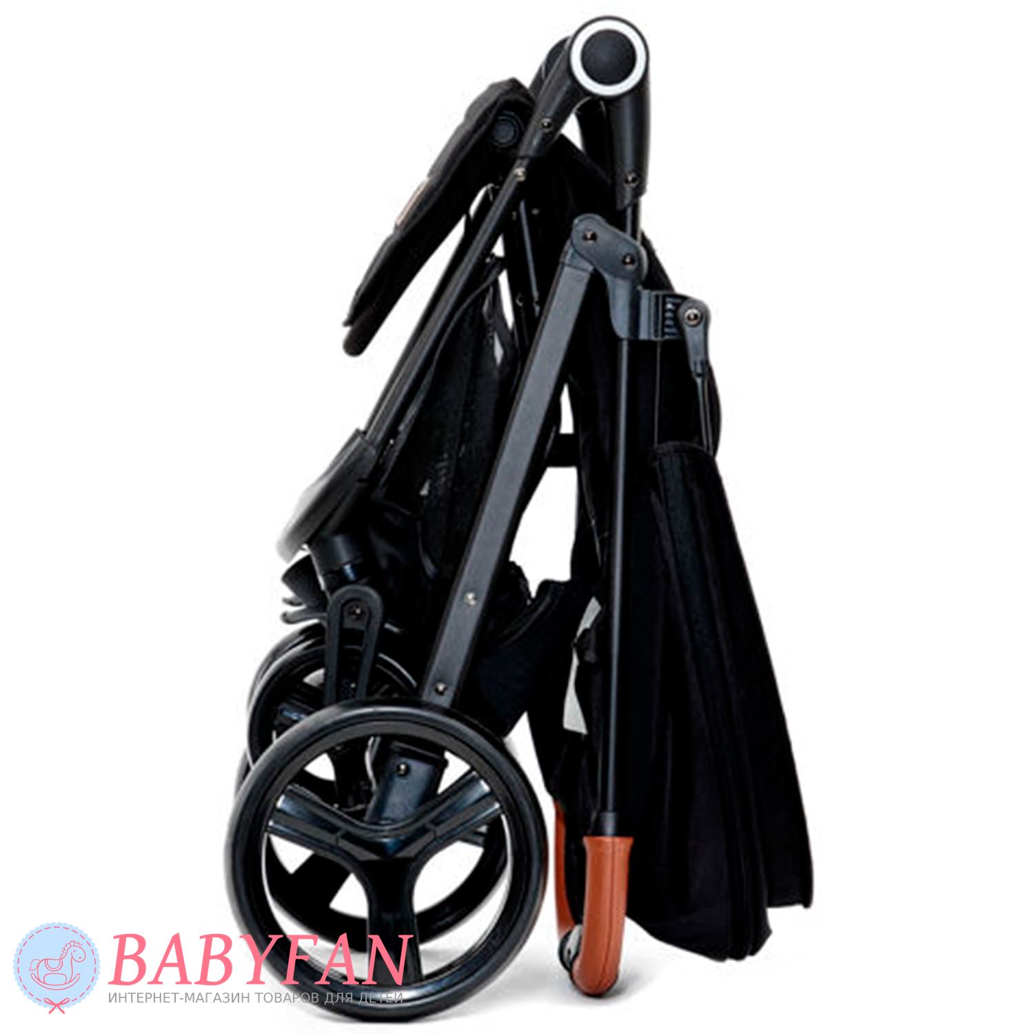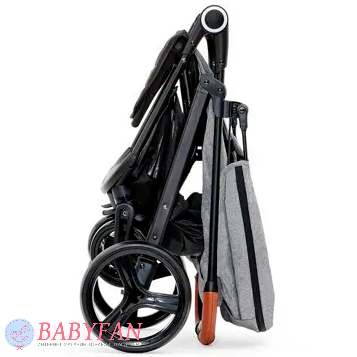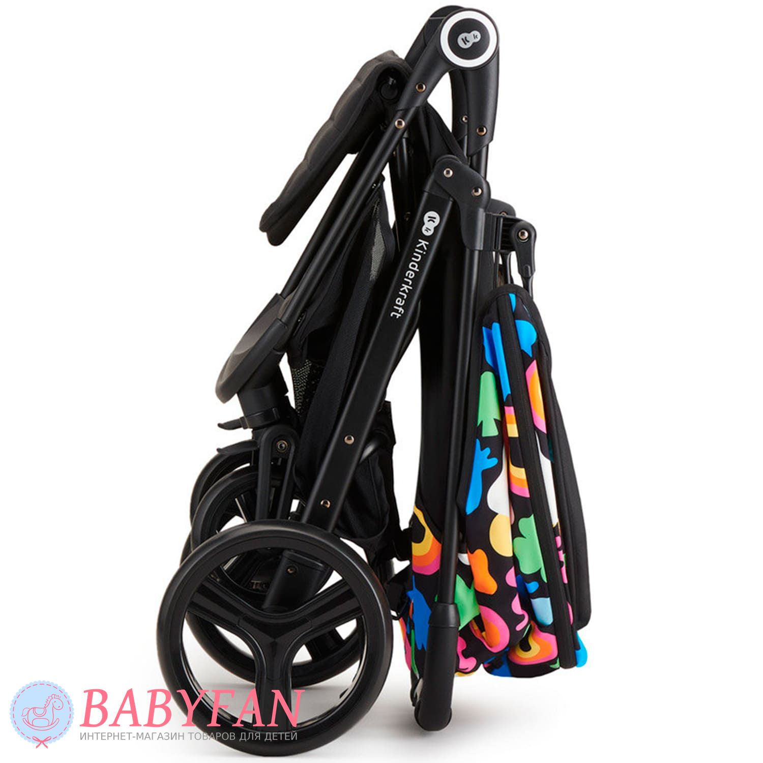 Kinderkraft Grande – простора та функціональна прогулянкова коляска-книжка для дітей від народження до 4 років вагою до 15 кг. Виконана у класичному для даного виду колясок 4-колісному дизайні. Виготовлена з якісних, довговічних та практичних матеріалів: міцна сталева рама покрита порошковою чорною фарбою; текстильні елементи з водовідштовхувального поліестеру; покришки задніх коліс із гуми, передніх – із спіненого поліуретану; батьківська ручка управління та захисний бампер покриті чохлами з екошкіри. Коляска швидко і легко складається однією рукою одним рухом.