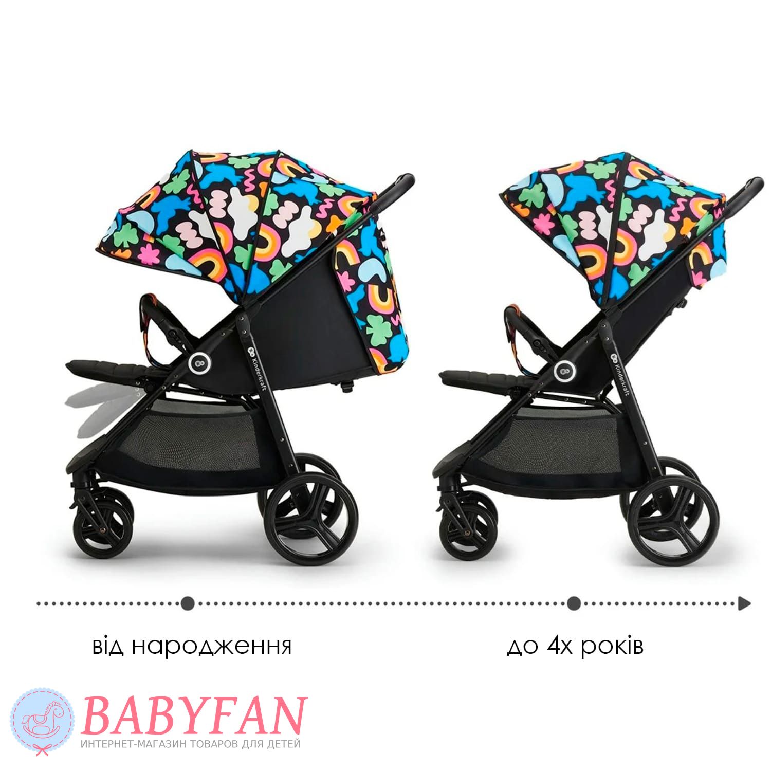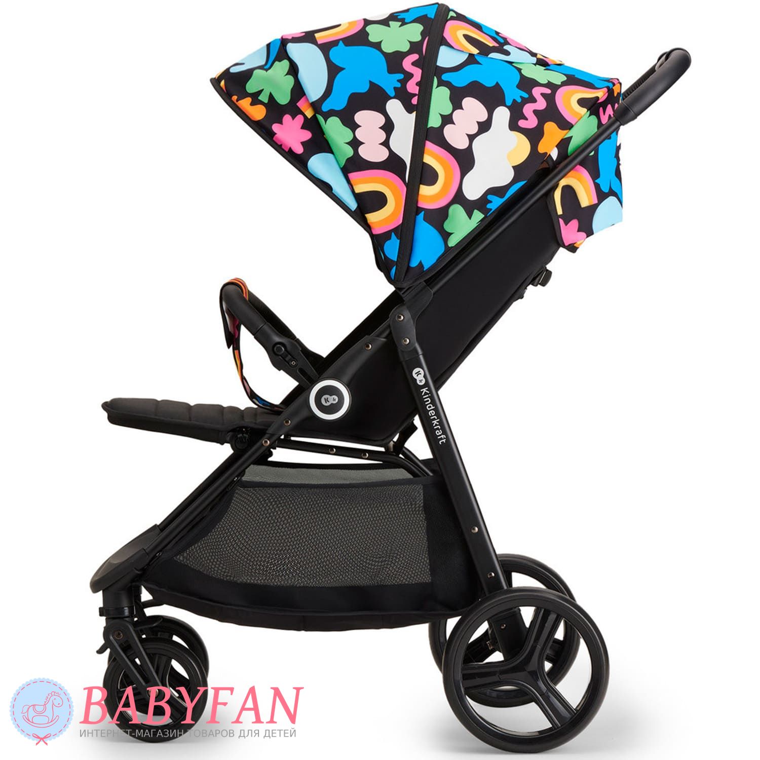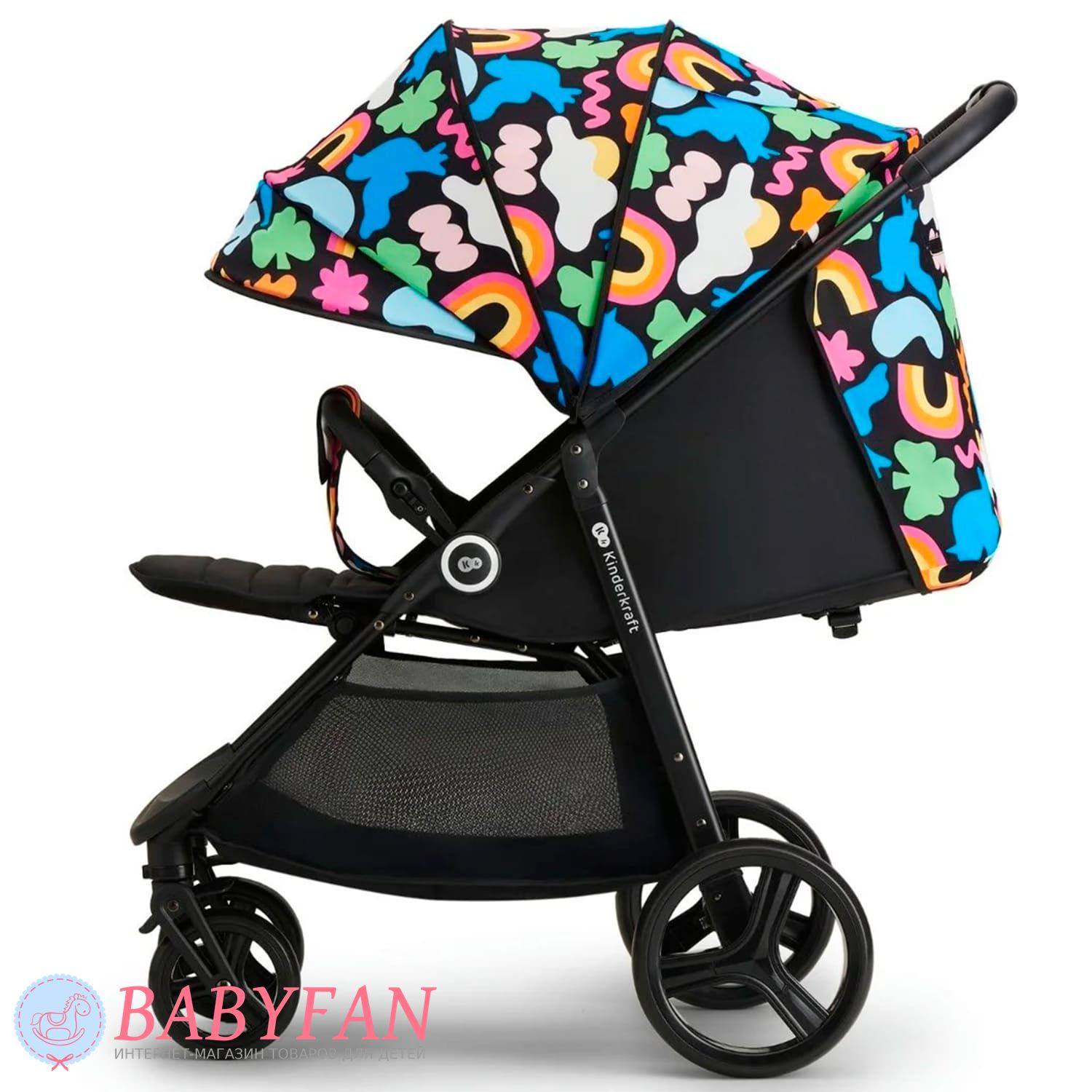 Прогулянковий блок Kinderkraft Grande просторий, з шириною сидіння 34 см. Спинка сидіння плавно опускається до горизонтального положення. Підніжка регулюється по висоті. За безпеку дитини відповідають 5-точкові ремені безпеки з м'якими плечовими та пахвинними накладками. Ремені регулюються по довжині та висоті. Для додаткового захисту у прогулянковому блоці передбачений знімний бампер, покритий чохлом з екошкіри – відстібається з кожного боку. Для захисту від сонця та вітру передбачений масивний глибокий каптур з додатковою секцією на блискавці та сонцезахисним козирком. Для спостереження за дитиною у візку передбачено оглядове вікно.