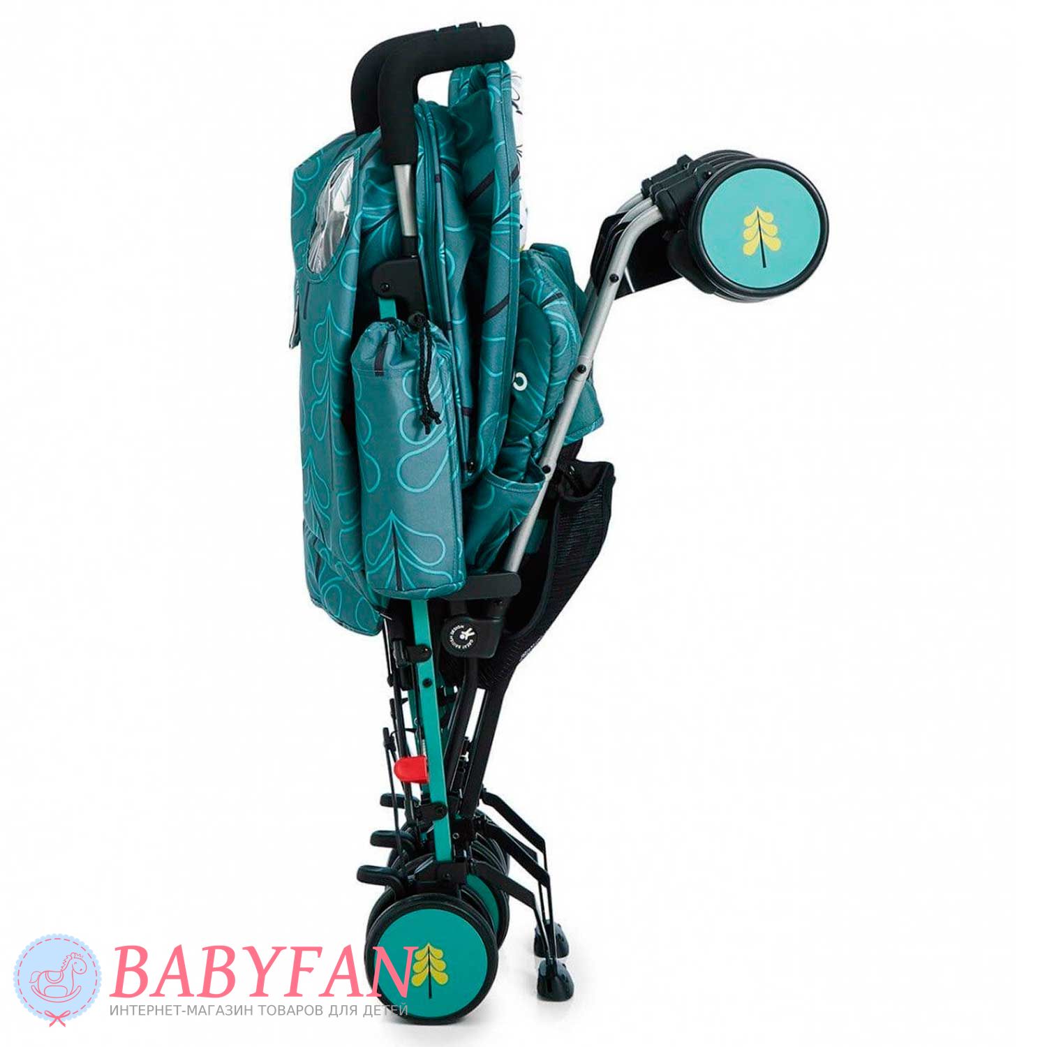 - швидке компактне додавання. У складеному вигляді тканинні частини зберігаються у чистоті, оскільки завдяки спеціальній підставці не дістають до брудної поверхні дороги чи підлоги. Складена коляска зручна у зберіганні, оскільки самостійно стоїть у вертикальній позиції. Її зручно переміщати, скориставшись спеціальною ручкою для транспортування. Від мимовільного розкладання виробником передбачено спеціальний захист;