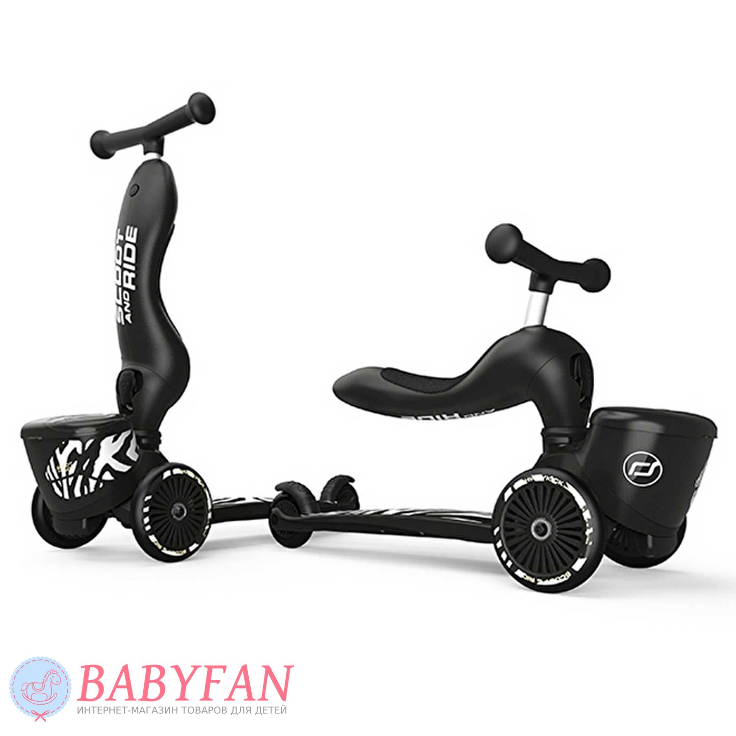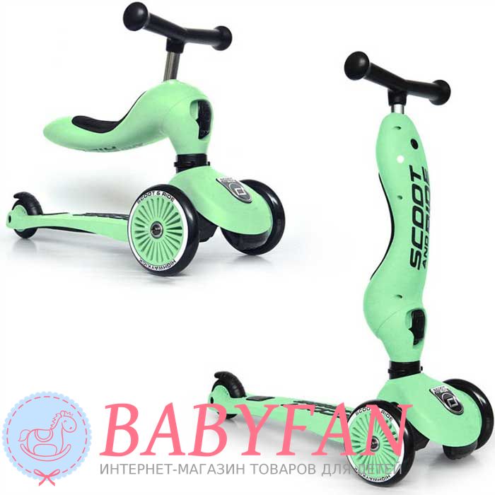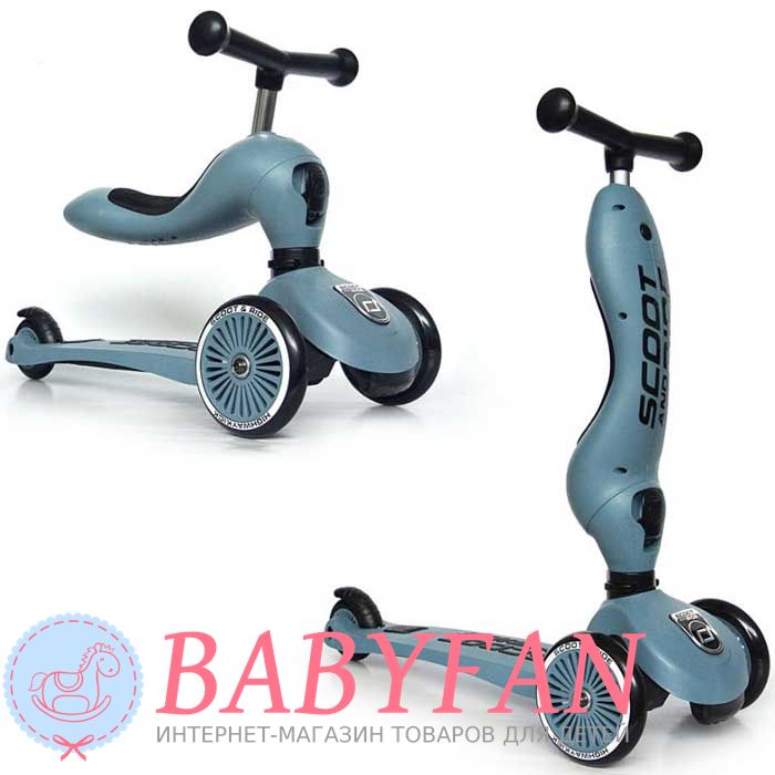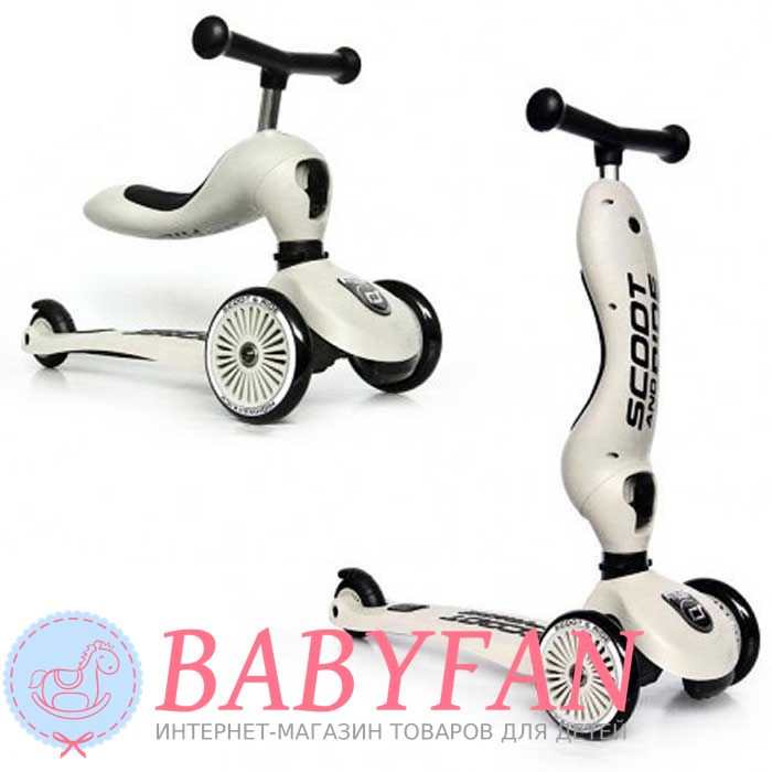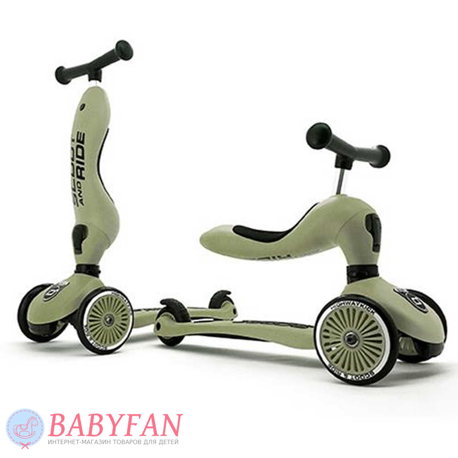 Самокат-беговел 2 в 1 Scoot and Ride Highwaykick 1 - універсальна, триколісна практична модель, яку можна навіть назвати 3 в 1: самокат, беговел, коляска. Модель з регульованою висотою сидіння та керма, завдяки чому самокат-біговець індивідуально налаштовується під параметри свого власника. Спеціальний запатентований пристрій виключає можливість перекидання через кермо, вся конструкція змодельована так, щоб забезпечити високий рівень безпеки та комфортності для дитини.