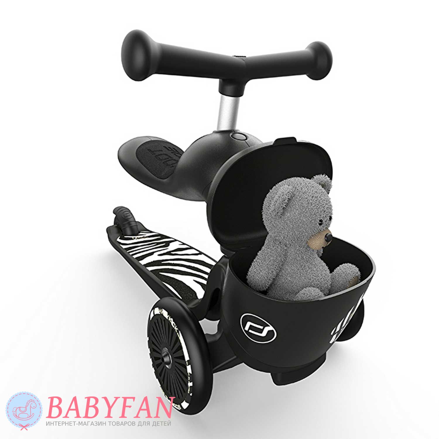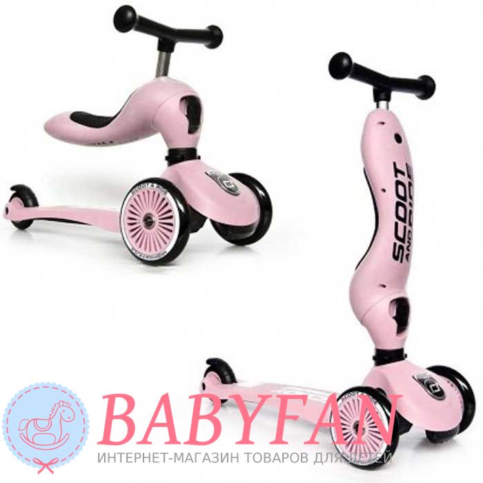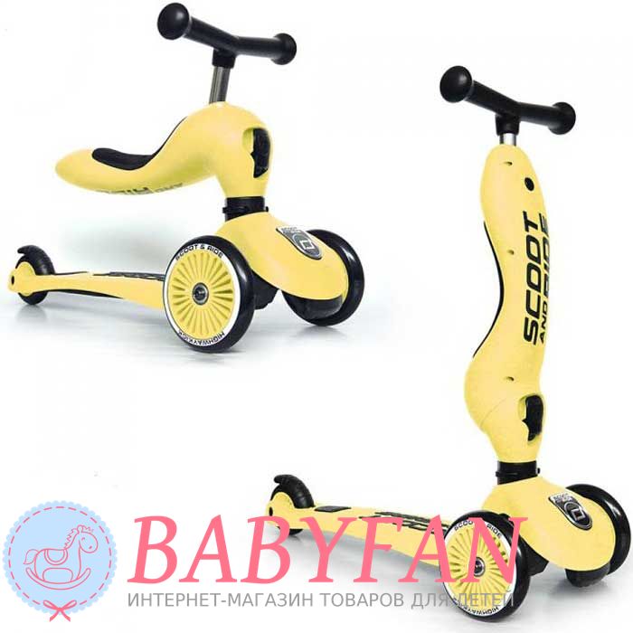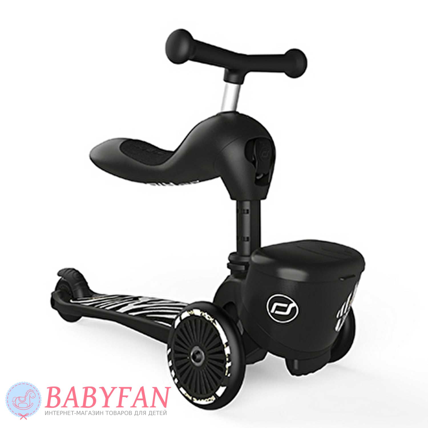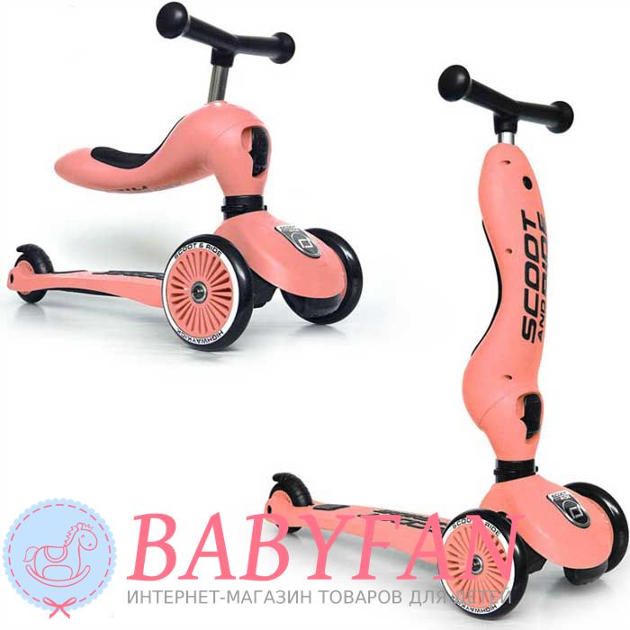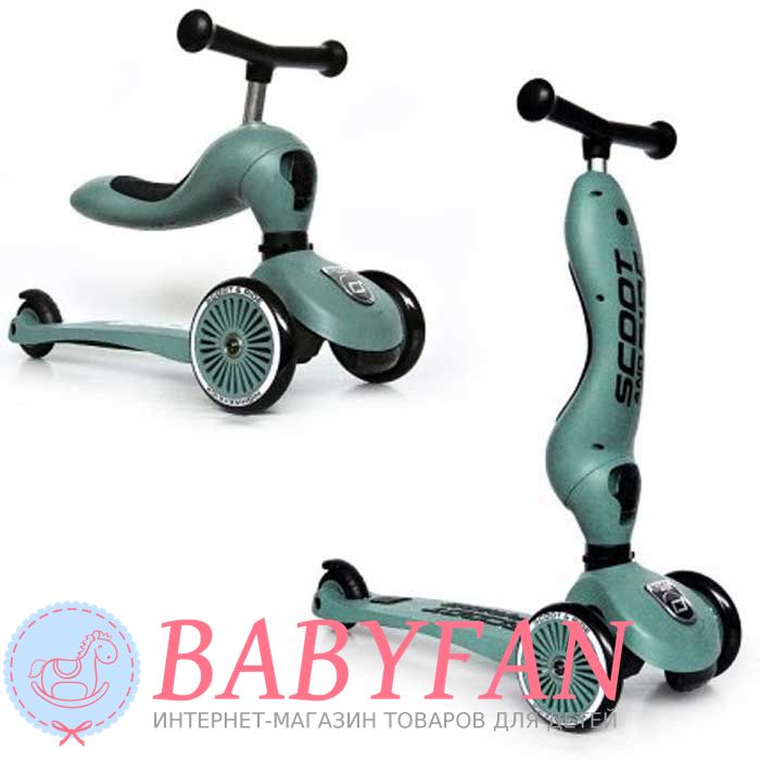 Самокат-беговел 2 в 1 Scoot and Ride Highwaykick 1 - універсальна, триколісна практична модель, яку можна навіть назвати 3 в 1: самокат, беговел, коляска. Модель з регульованою висотою сидіння та керма, завдяки чому самокат-біговець індивідуально налаштовується під параметри свого власника. Спеціальний запатентований пристрій виключає можливість перекидання через кермо, вся конструкція змодельована так, щоб забезпечити високий рівень безпеки та комфортності для дитини.