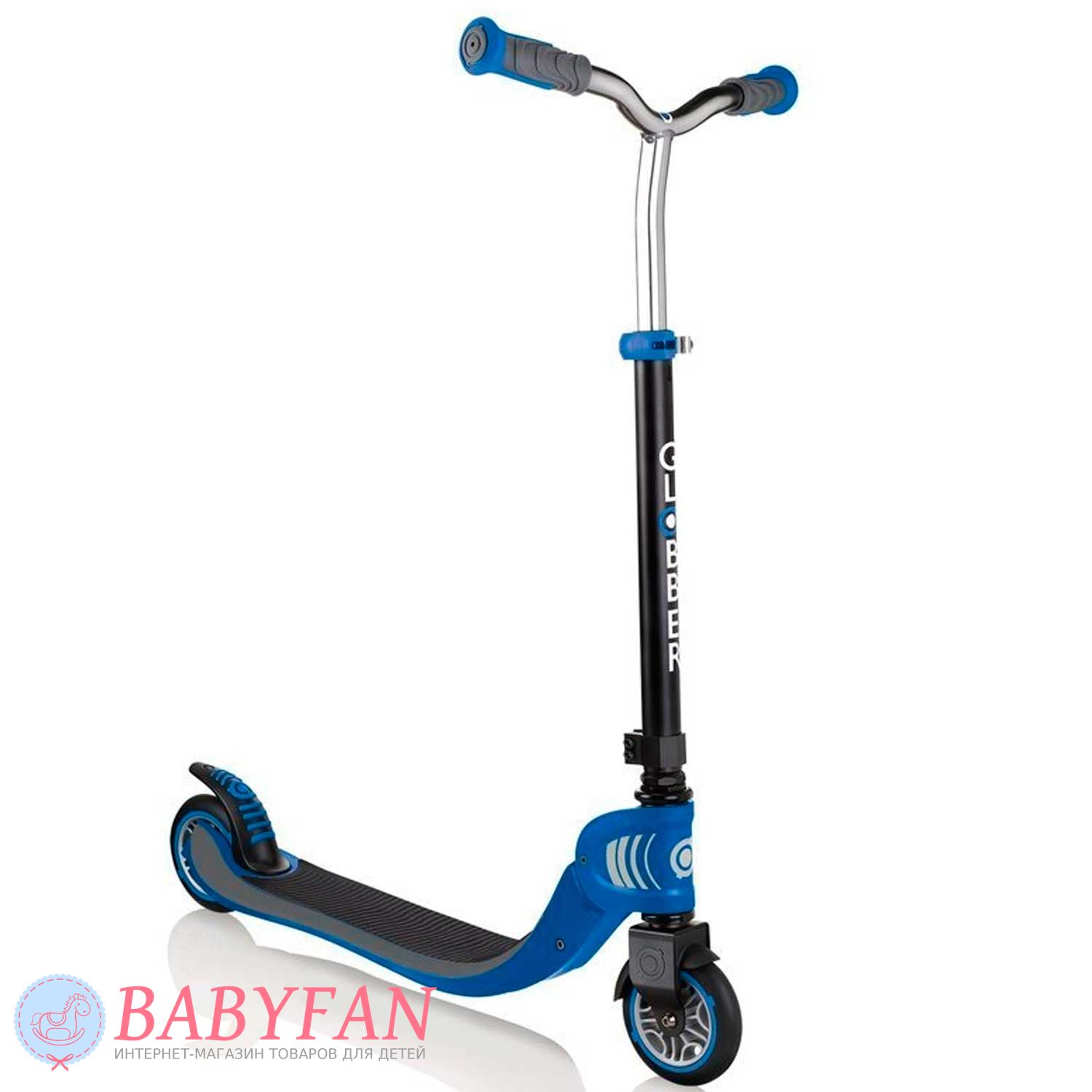 Globber Flow Foldable 125 – двоколісний самокат з посиленою конструкцією, що регулюється по висоті кермом та подвійним затиском кермової стійки для дітей від 4х років. Виконаний у класичному дизайні. Виготовлений з алюмінію та матового пластику – витримує вагу до 100 кг. Вигнуте Т-подібне кермо керує переднім колесом, регулюється по висоті, має протиковзкі грипси з композитного матеріалу. Рульова стійка надійно фіксується подвійним затискачем. Колеса не надувні, покришки із зносостійкого поліуретану. Гальмо ножне – самокат гальмує натисканням на заднє крило. Вигнута підставка для ніг покрита еластичним евапластиком, що не ковзає.