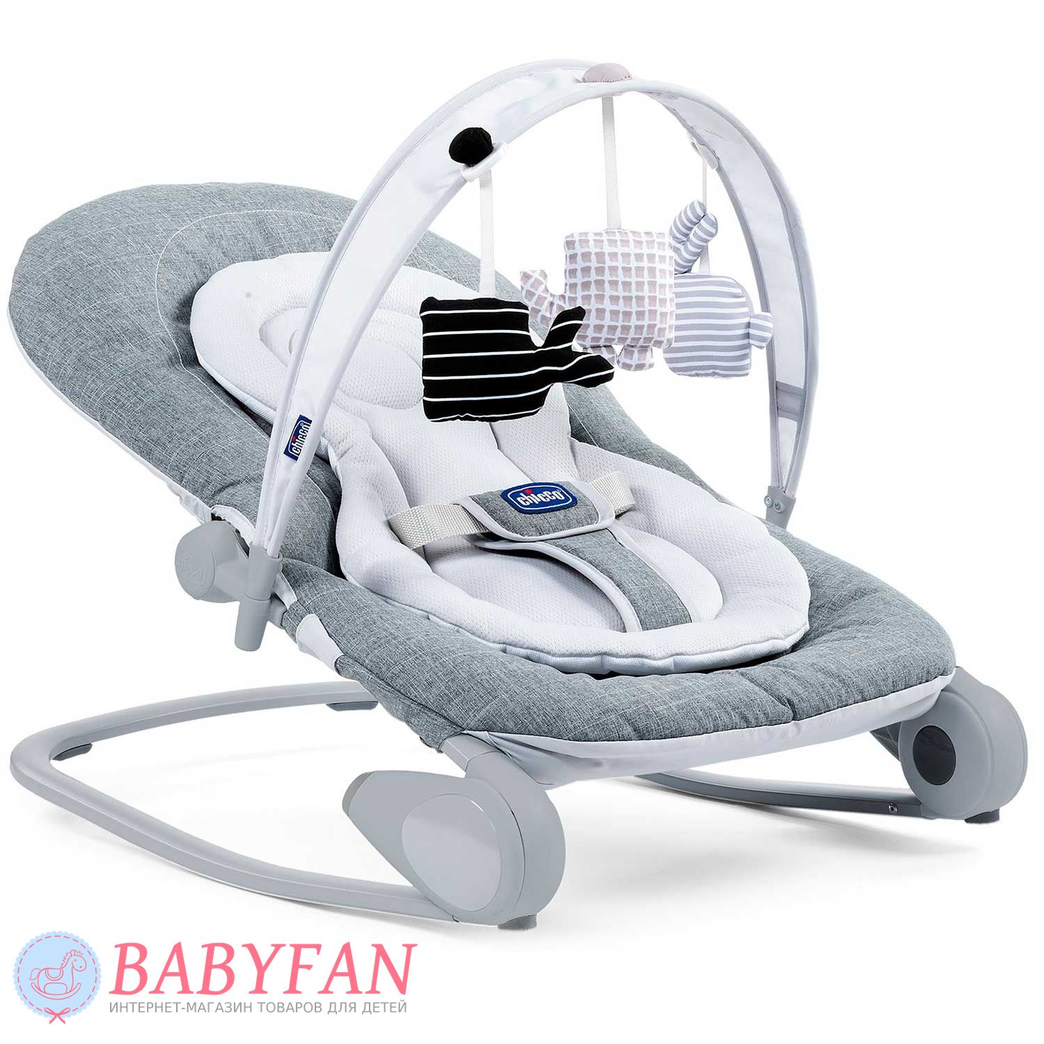 Крісло-гойдалка шезлонг Chicco Hoopla - це безпечне сидіння для новонароджених. У ньому дитина почувається також добре і спокійно, як на маминих руках. Багатопозиційна спинка шезлонгу, вкладиш для найменших, дуга з іграшками, які легко можна переставляти, функція гойдання – все, що потрібно для створення комфортних умов під час відпочинку чи неспання дитини, доки мама зайнята справами.