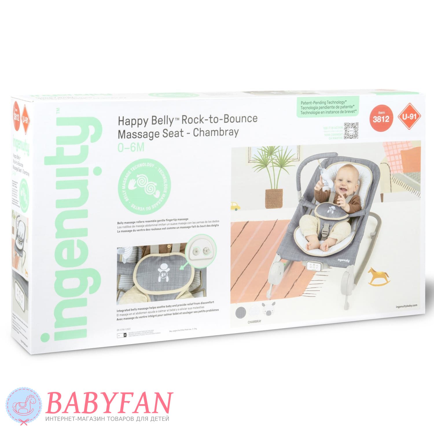 Шезлонг Ingenuity Bright Starts 16854 Chambray з технологією Happy Belly