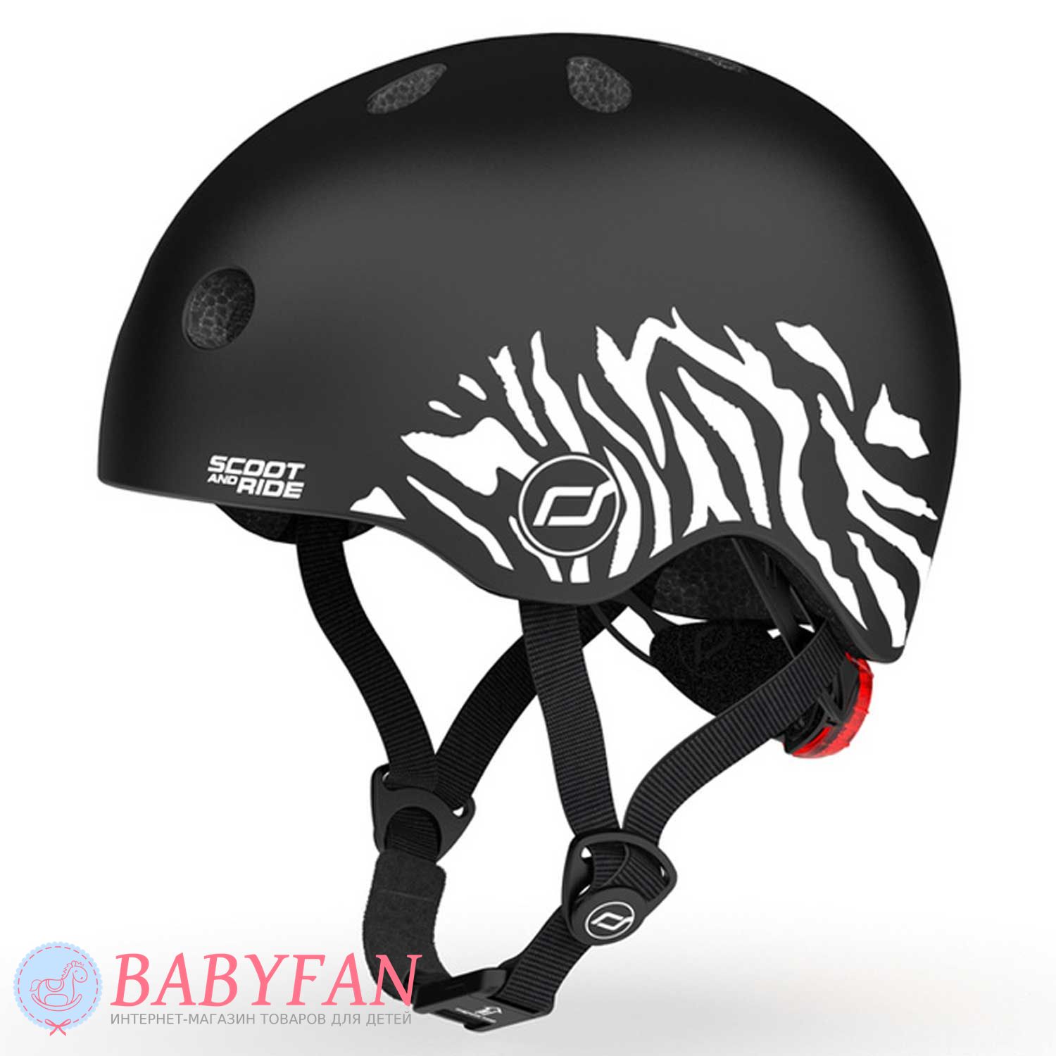 Захисний шолом Scoot and Ride для дітей від 1 до 5 років призначений для захисту голови дитини під час катання на біговелі, самокаті та велосипеді. Надійно захищає голову від струсу мозку, ударів та пошкоджень гострими предметами при падінні. Виготовлений з легкої удароміцної термопластичної смоли – ABS-пластик. Внутрішня частина виготовлена з пінополістиролу, що амортизує. У міру зростання дитини внутрішній обсяг шолома регулюється за допомогою поворотного механізму на потилиці. Для безпеки дитини при катанні в нічний час є світлодіодний сигнальний маячок.