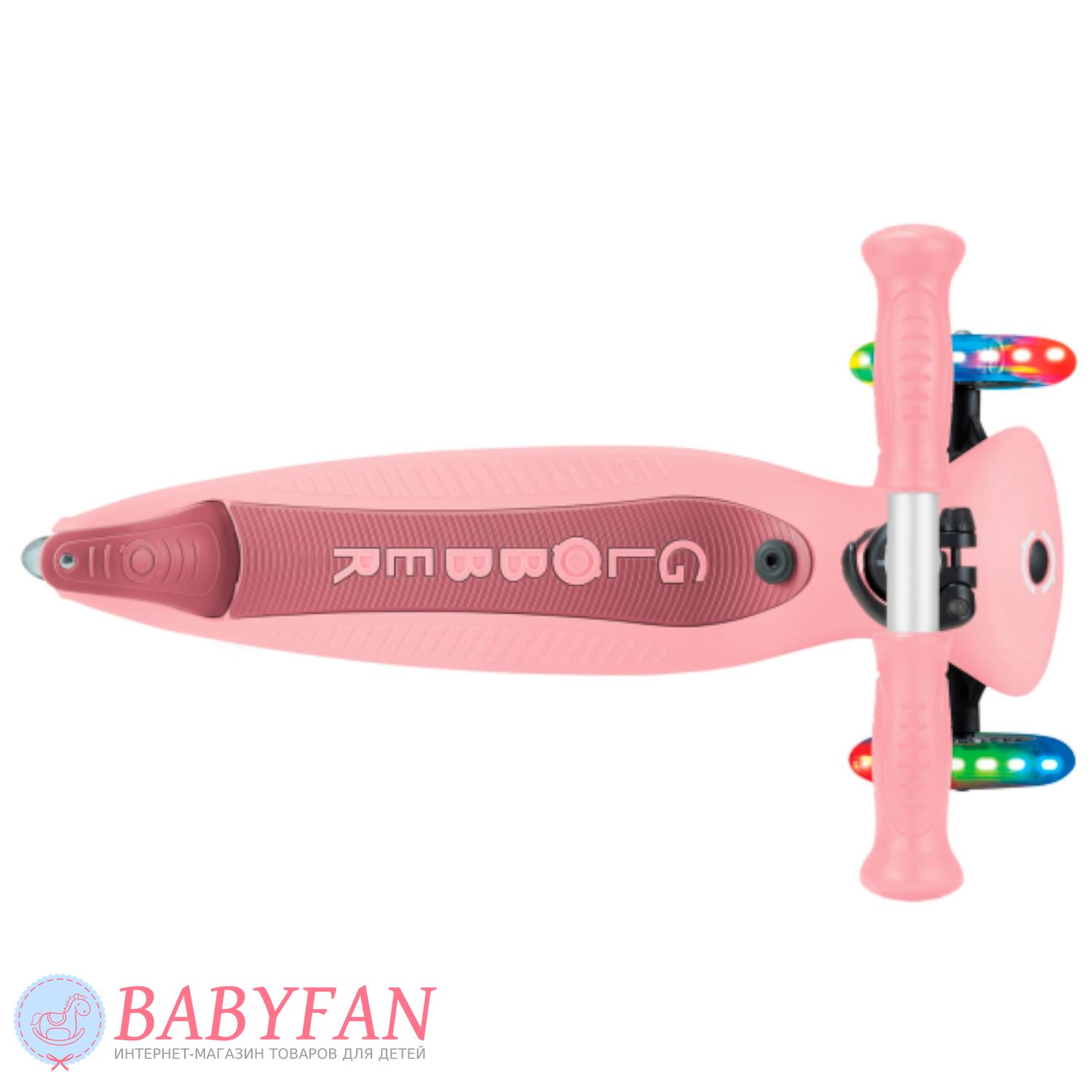 - вбудоване різнокольорове світлодіодне підсвічування в передніх колесах – світяться під час руху;