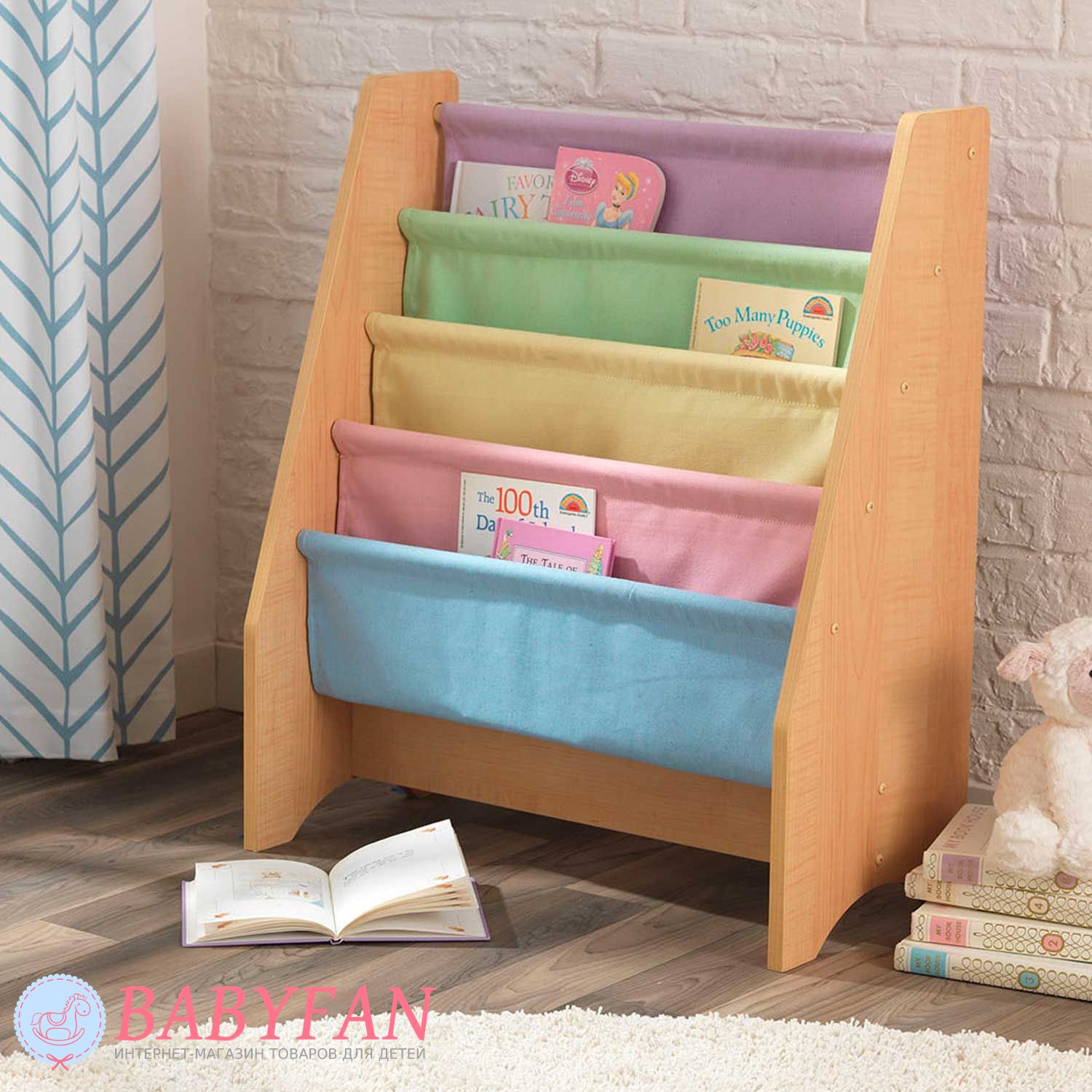 Стелаж для книжок KidKraft 14225 "Pastel" - незвичайний по дизайну стелаж. Виробнику вдалося поєднати оригінальність та функціональність в одній моделі. М'які полиці дозволяють розміщувати книги будь-якого розміру. Це зручні меблі для експлуатації дитиною.