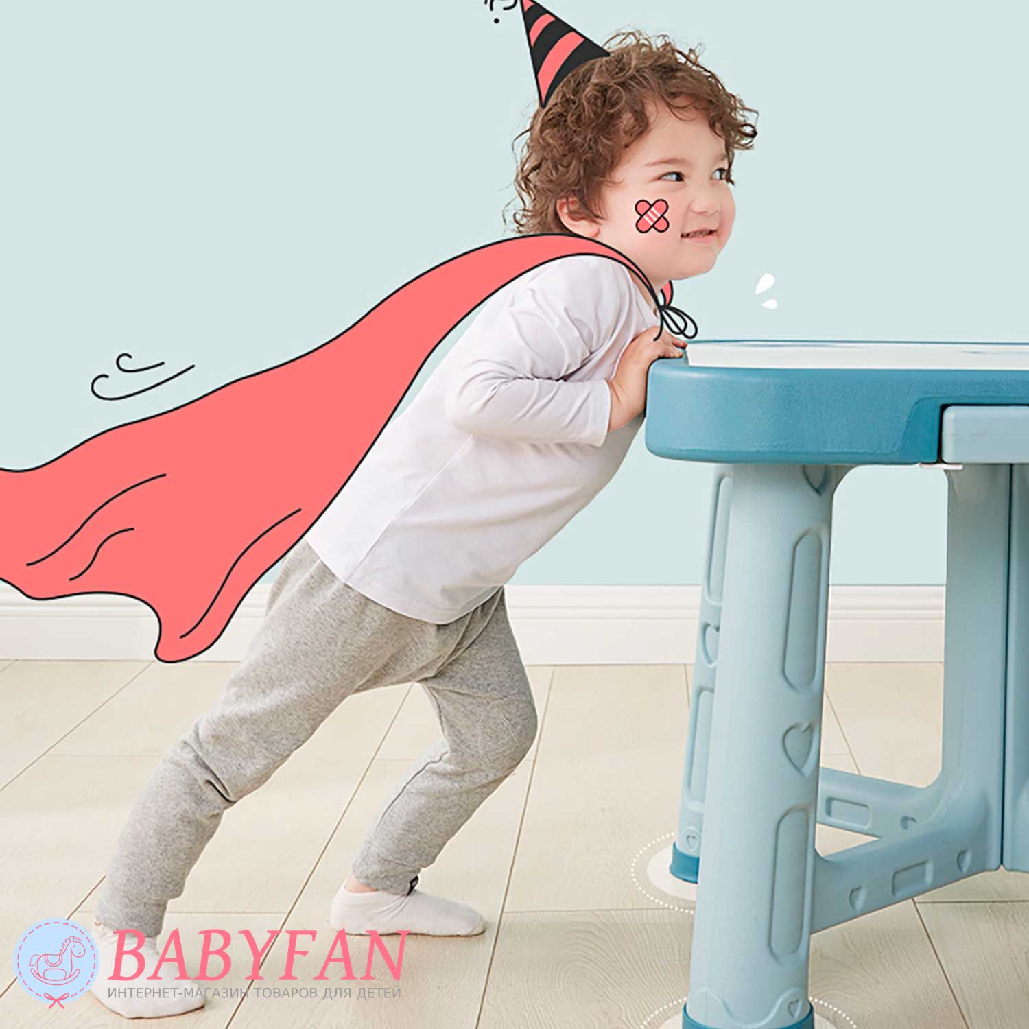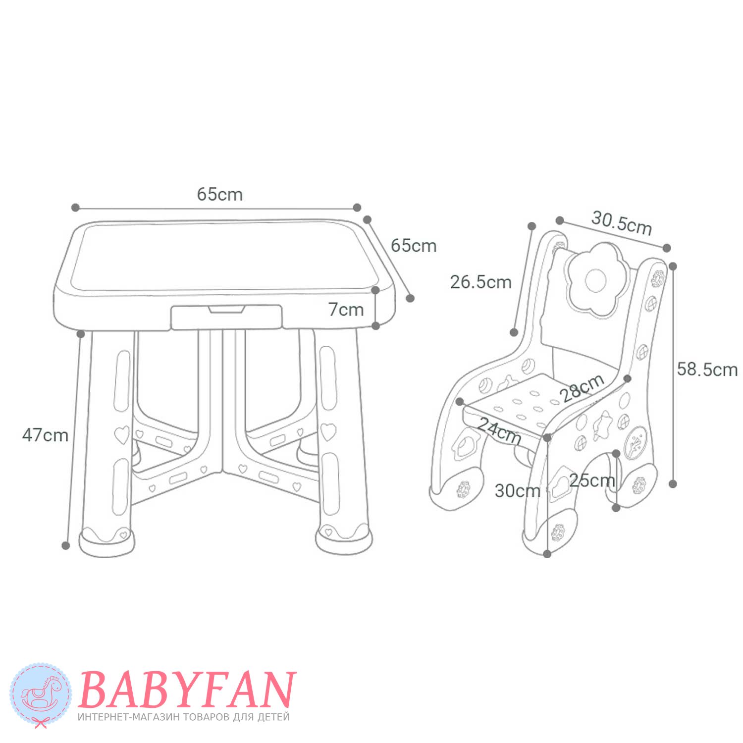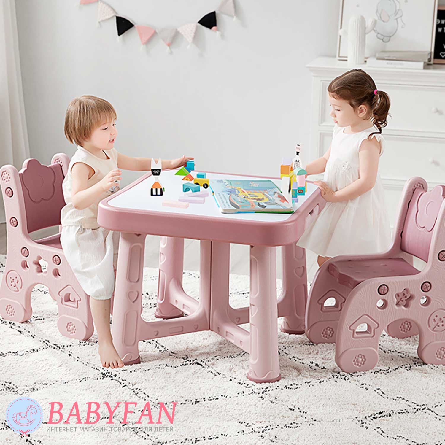 - 2 положення висоти столу та стільців: 26 см – для дітей від 1 до 6 років, 24 см – від 6 до 12 років;