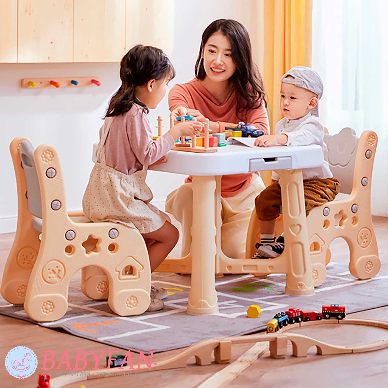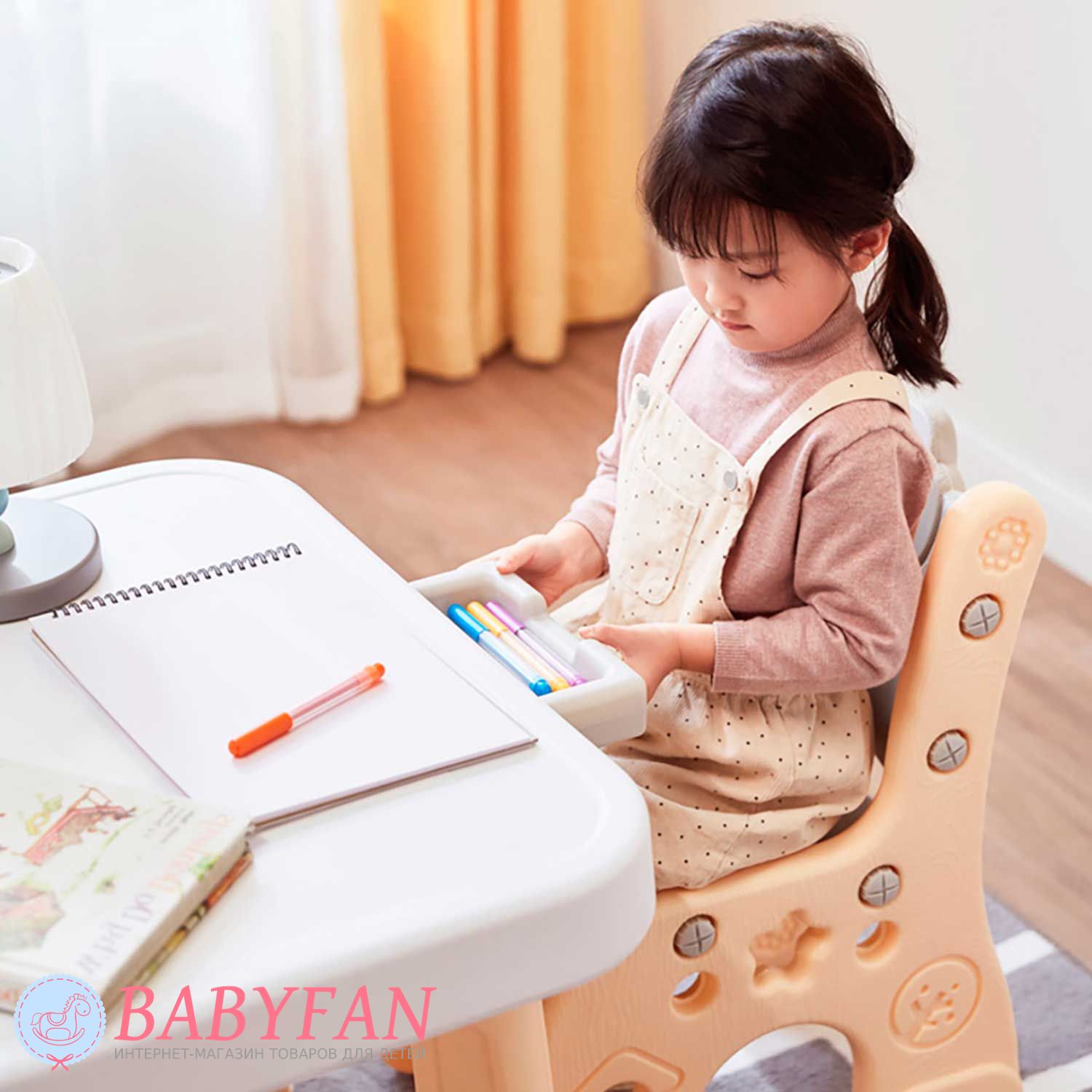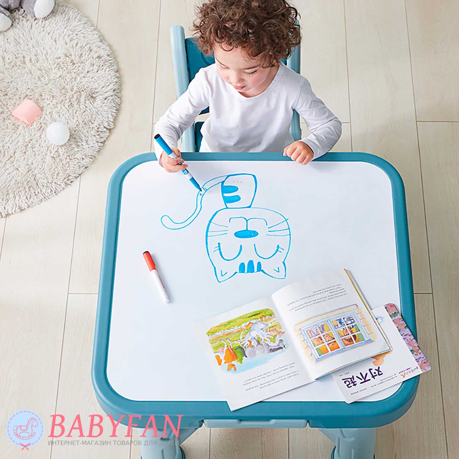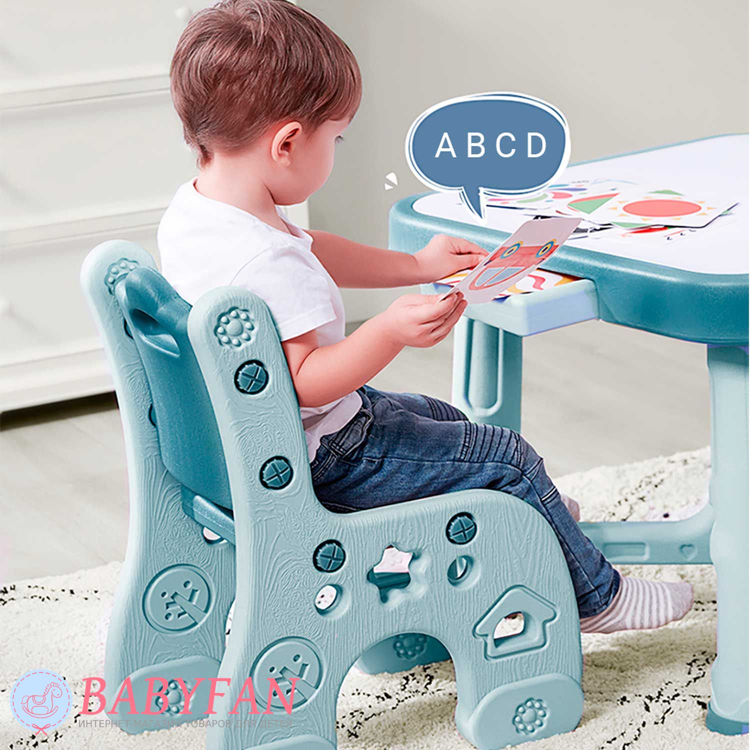 - 2 положення висоти столу та стільців: 26 см – для дітей від 1 до 6 років, 24 см – від 6 до 12 років;