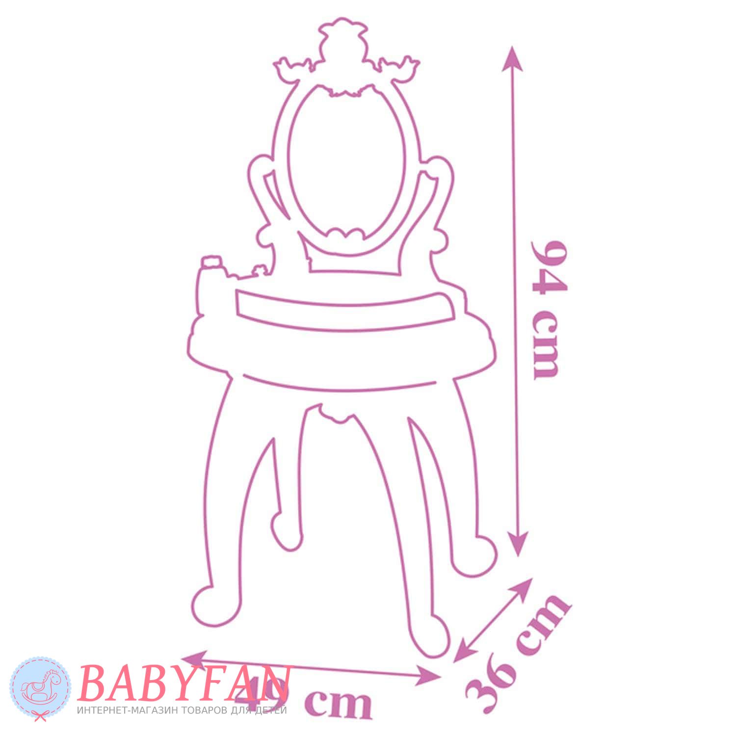 - знімна стільниця з дзеркалом оснащена трьома висувними ящиками для прикрас і спеціальними відсіками для аксесуарів, завдяки чому дівчинка може зберігати свої прикраси, привчаючись до порядку;