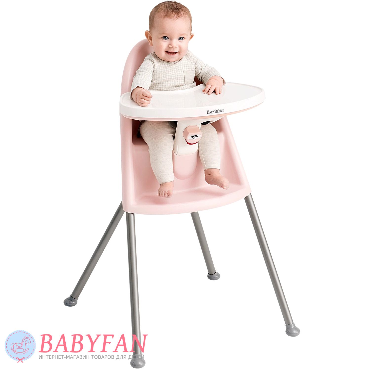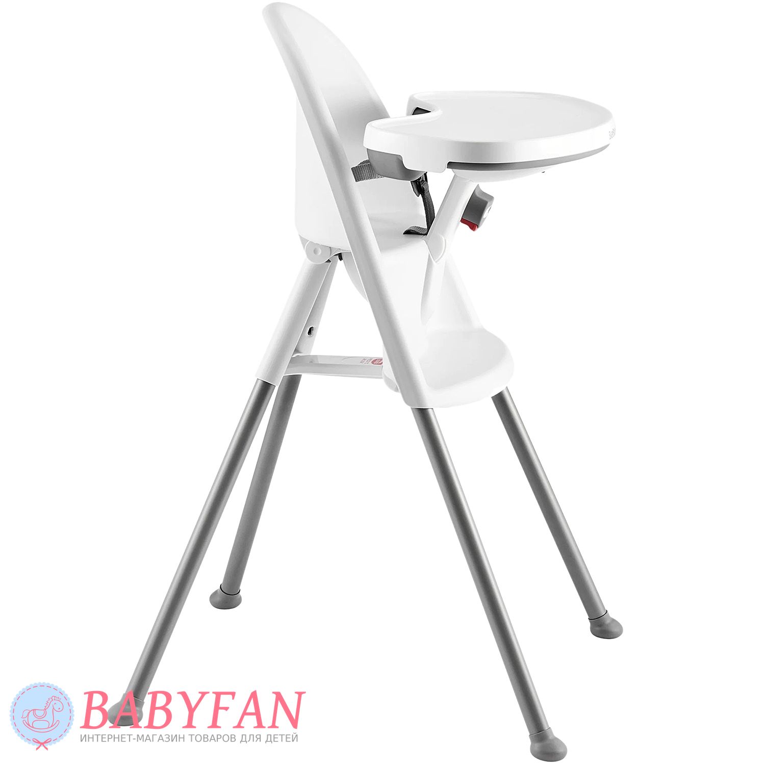 Стільчик для годування Baby Bjorn High Chair – безпека завжди на чільному місці. Ваша дитина не зможе встати або відштовхнутися ногами від столу і таким чином перекинути стілець назад. Саме безпека була в центрі нашої уваги, коли ми розробляли цей столик, який одночасно функціонує як запор. Жодних ремінців не потрібно, і старші брати і сестри не зможуть відкрити замок.