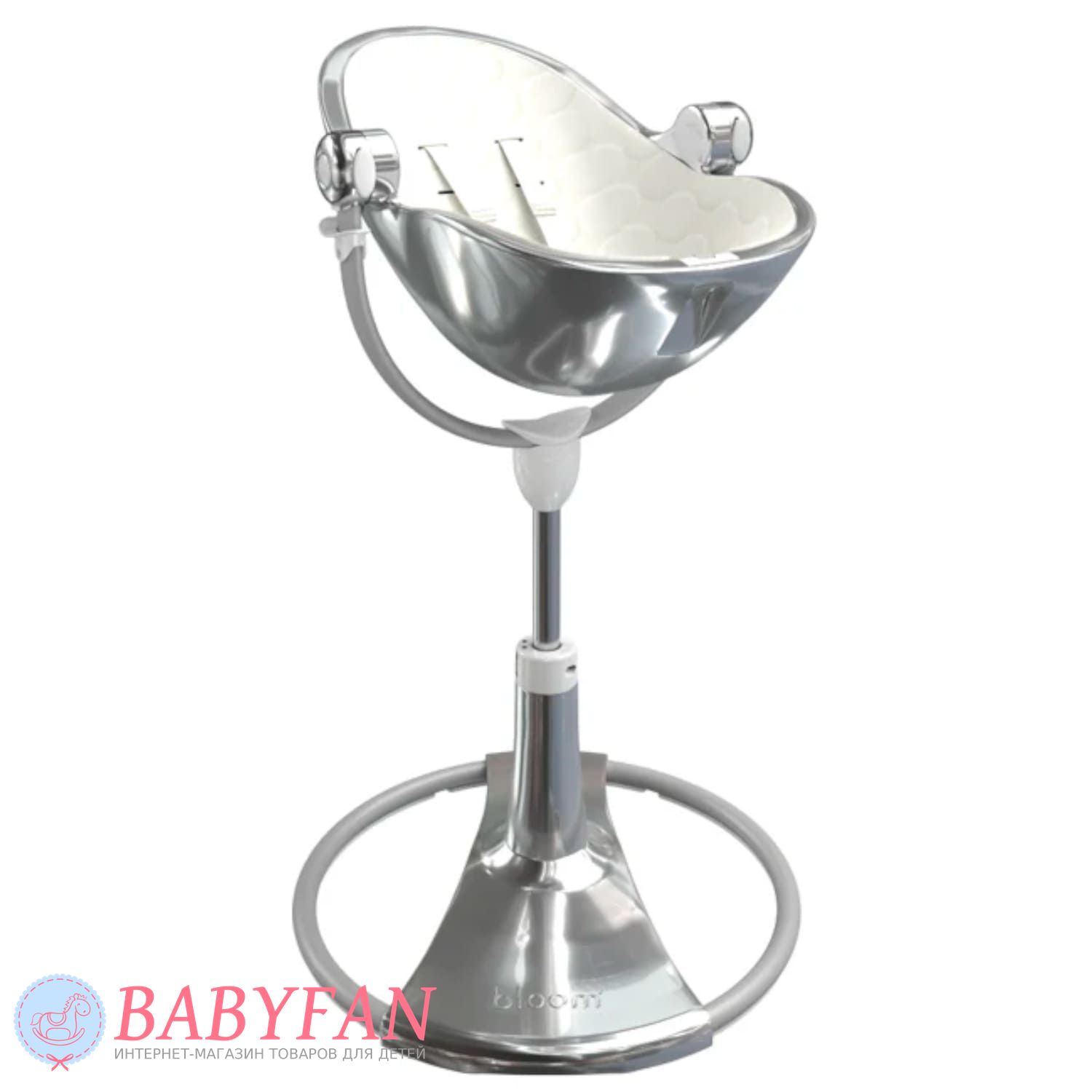 Стільчик для годування Bloom Fresco Chrome Special Edition Silver (з вкладишем) – ультрасучасна модель стільчика, яку можна використовувати як колиску для новонародженого, безпечного стільця для годування зі стільницею дитини та зручного крісла для дітей, що підросли. Виробником передбачені різні регулювання, що дозволяють налаштовувати стільчик під потреби дитини та її параметри в міру дорослішання.