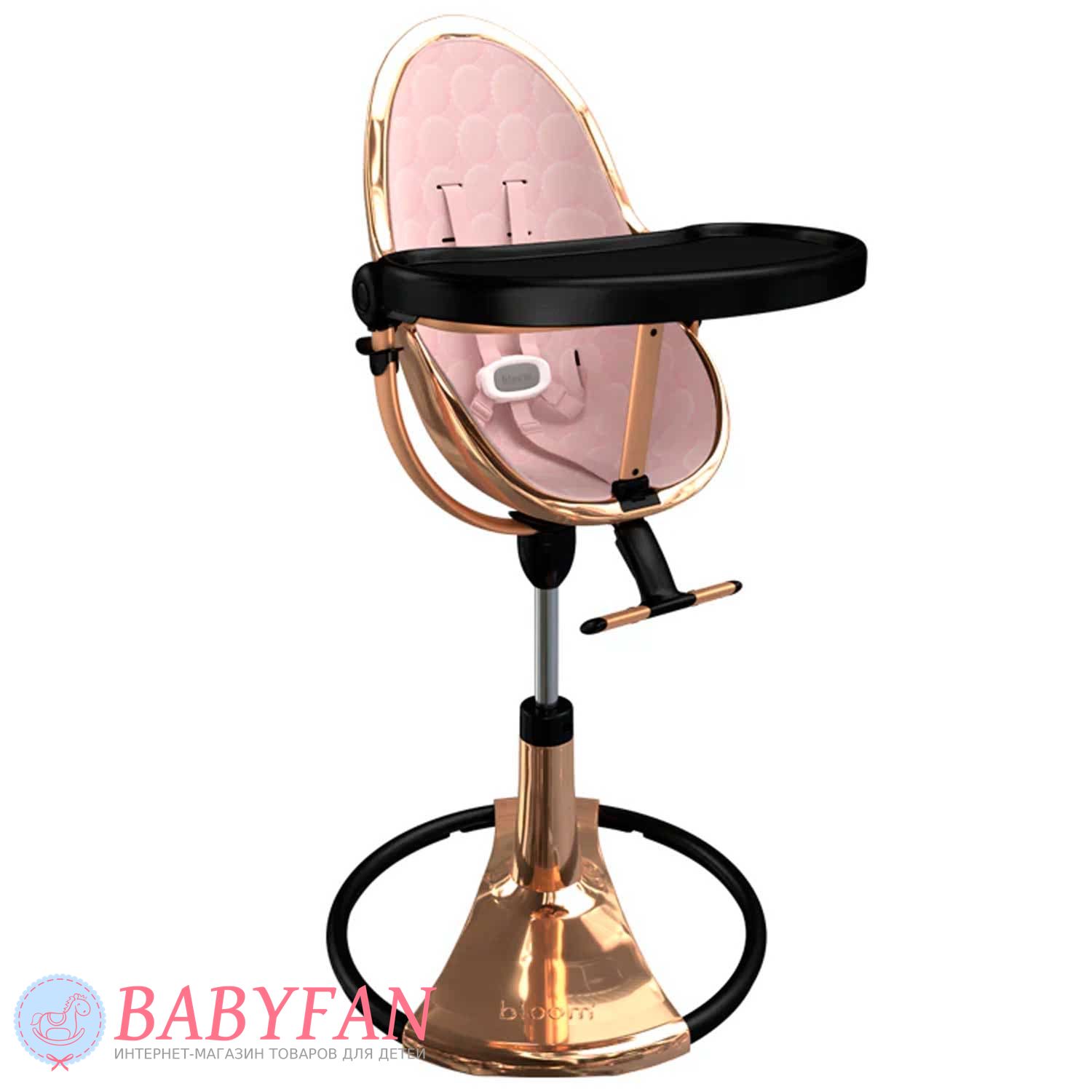 Стільчик для годування Bloom Fresco Chrome Special Edition Rose Gold (з вкладишем) – ультрасучасна модель стільчика, яку можна використовувати як колиску для новонародженого, безпечного стільця для годування зі стільницею дитини та зручного крісла для дітей, що підросли. Виробником передбачені різні регулювання, що дозволяють налаштовувати стільчик під потреби дитини та її параметри в міру дорослішання.