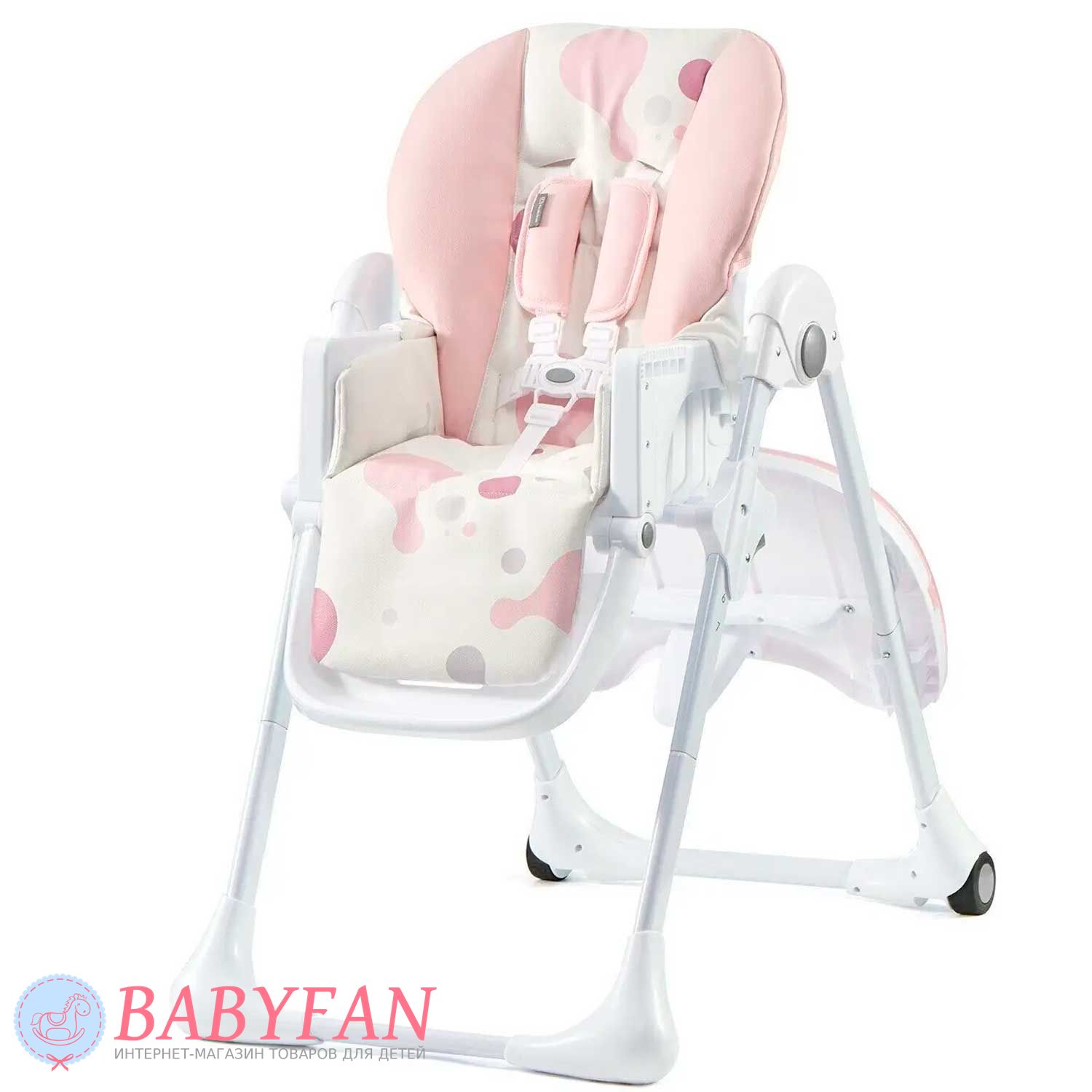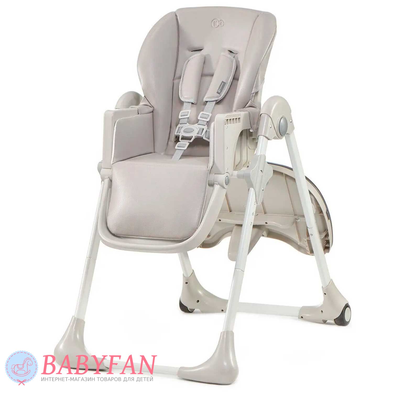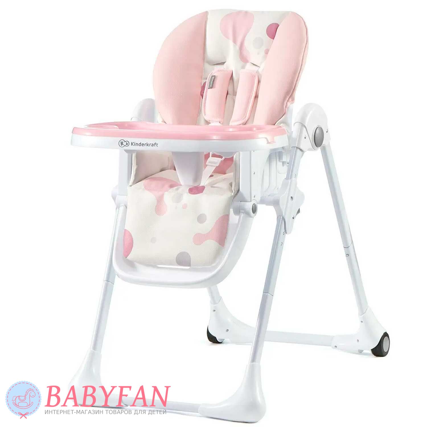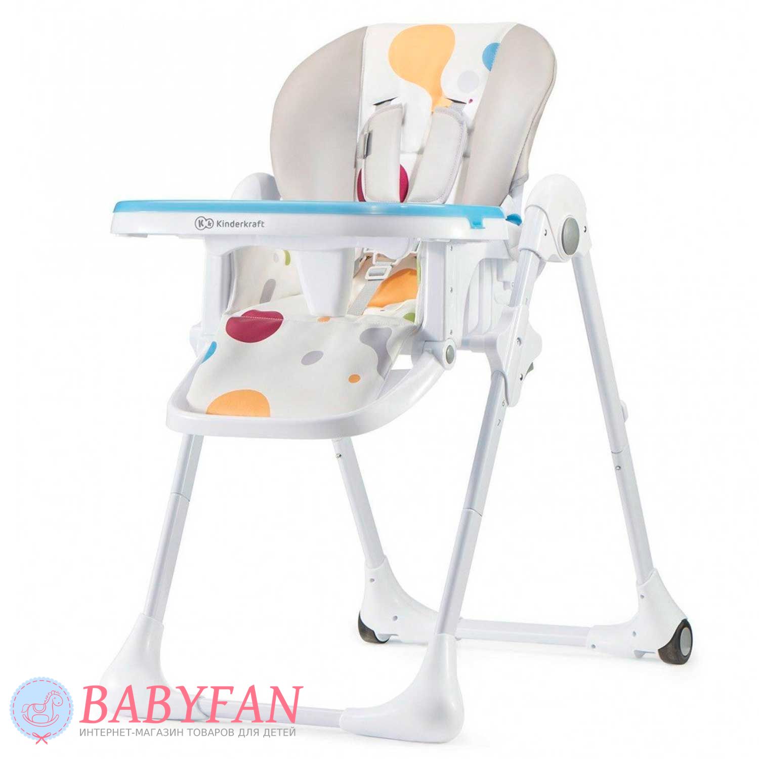 М'який чохол Kinderkraft Yummy виготовлений з екошкіри, легко та швидко очищається вологою серветкою. За безпеку дитини відповідають 5-точкові ремені безпеки з м'якими накладками. Ремені регулюються за висотою та довжиною. Застібаються надійним замком. Столик оснащений швидкознімною тацею, регулюється в горизонтальній площині в 3 положеннях. Таця має заглиблення для пляшечки. У столик вмонтований упор між ніг, що запобігає зісковзування не пристебнутої дитини під столик. Для легкого переміщення в межах кімнати на задніх ніжках є гумові колеса, на передніх – накладки, що не ковзають. Компактно складається для зберігання.