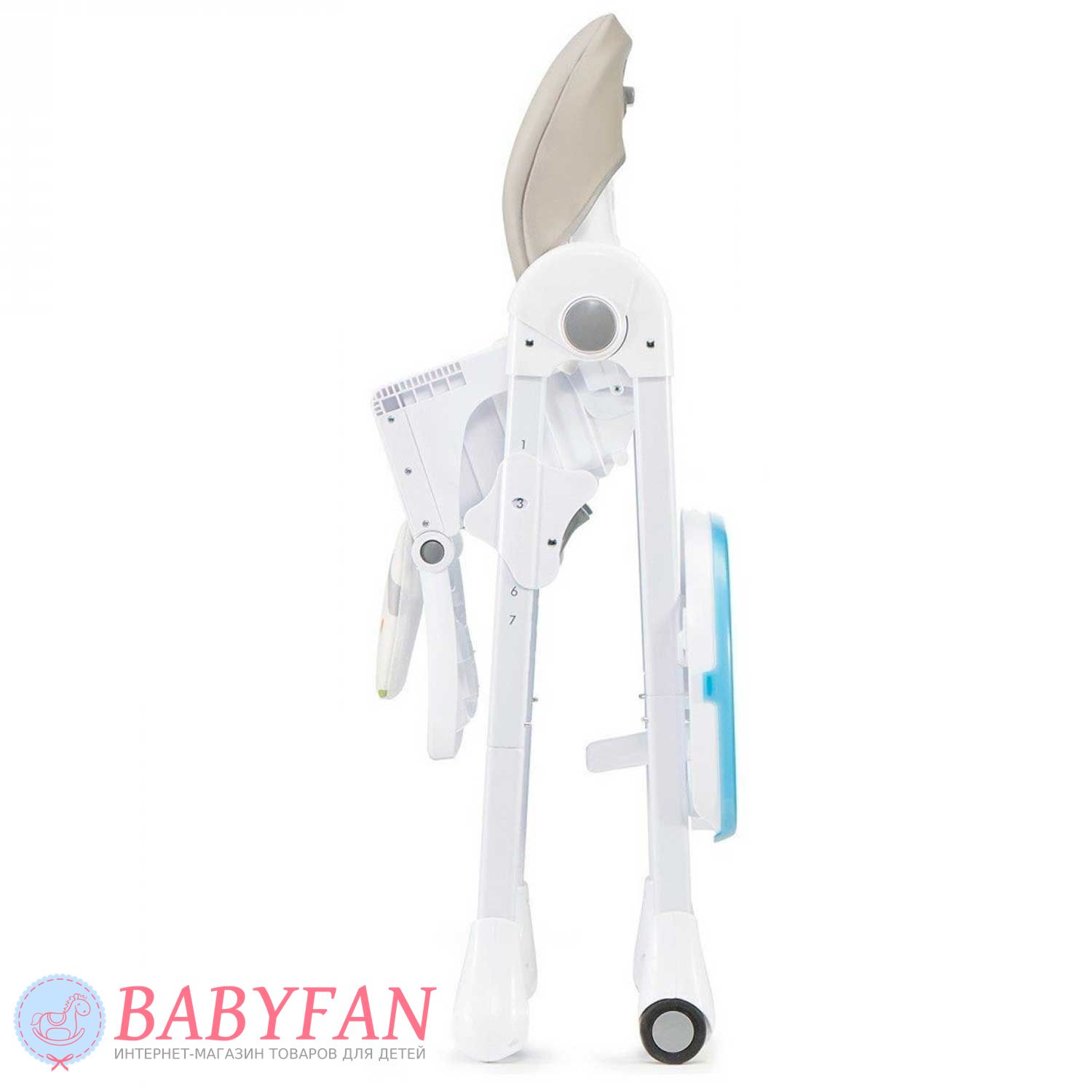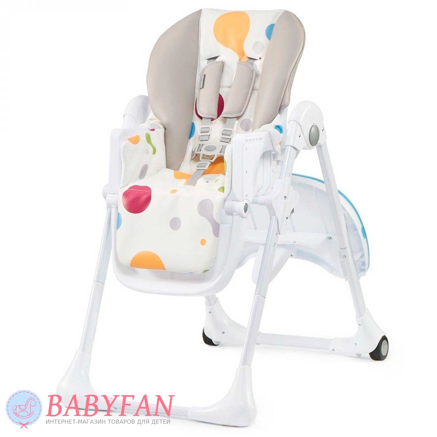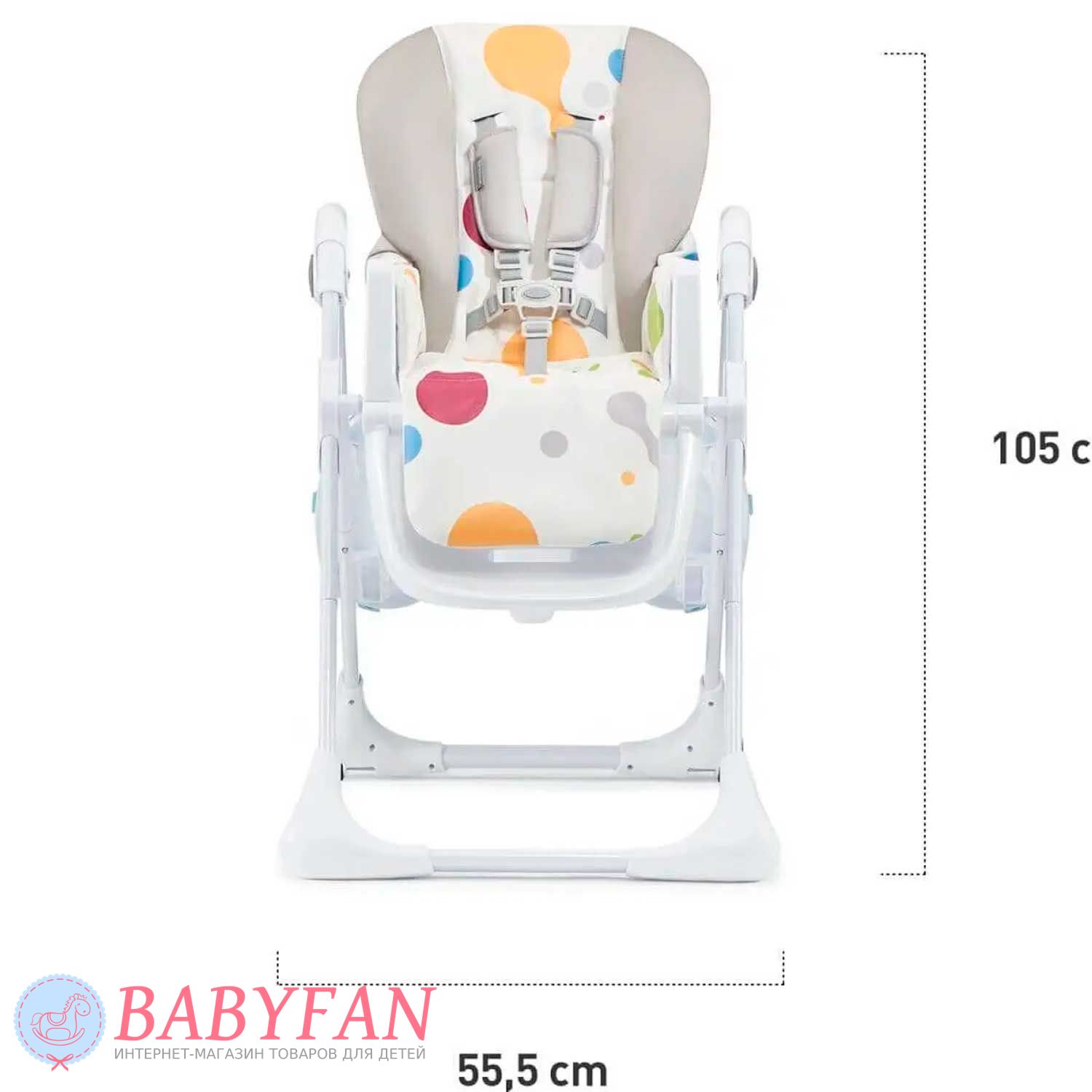 М'який чохол Kinderkraft Yummy виготовлений з екошкіри, легко та швидко очищається вологою серветкою. За безпеку дитини відповідають 5-точкові ремені безпеки з м'якими накладками. Ремені регулюються за висотою та довжиною. Застібаються надійним замком. Столик оснащений швидкознімною тацею, регулюється в горизонтальній площині в 3 положеннях. Таця має заглиблення для пляшечки. У столик вмонтований упор між ніг, що запобігає зісковзування не пристебнутої дитини під столик. Для легкого переміщення в межах кімнати на задніх ніжках є гумові колеса, на передніх – накладки, що не ковзають. Компактно складається для зберігання.