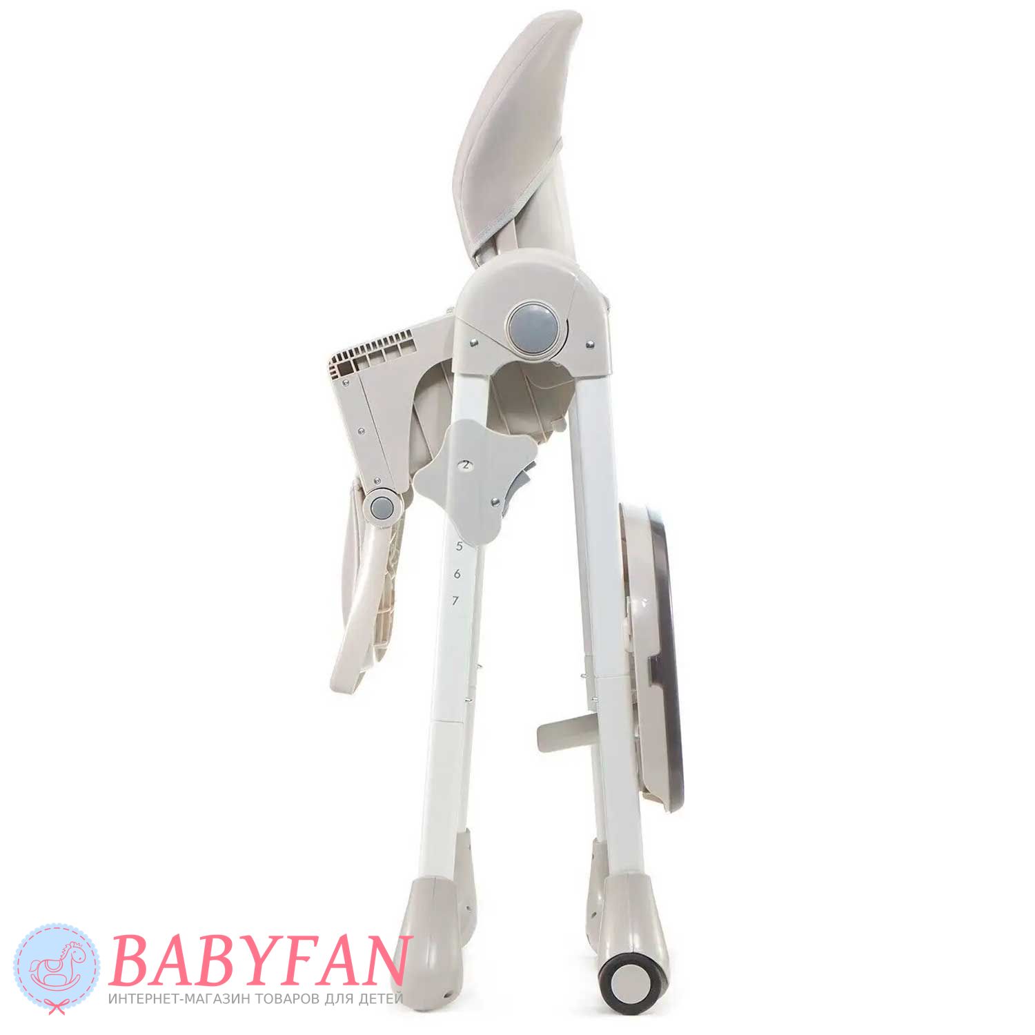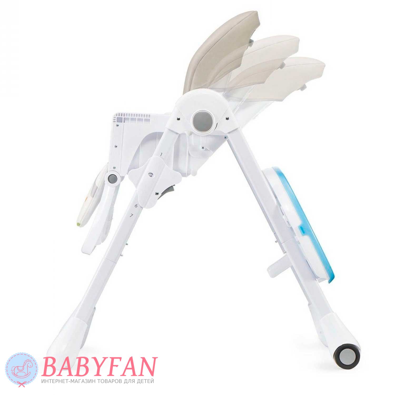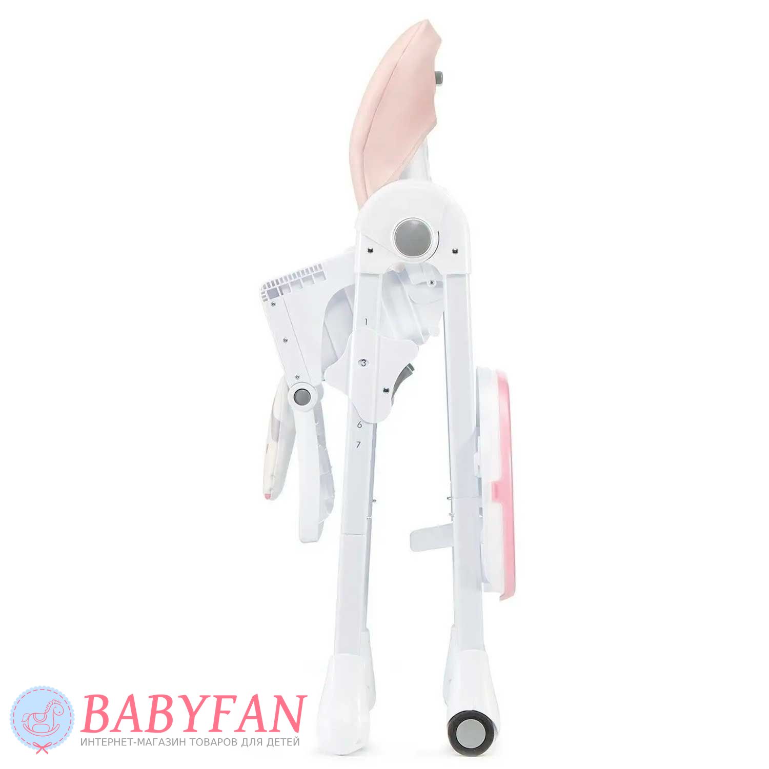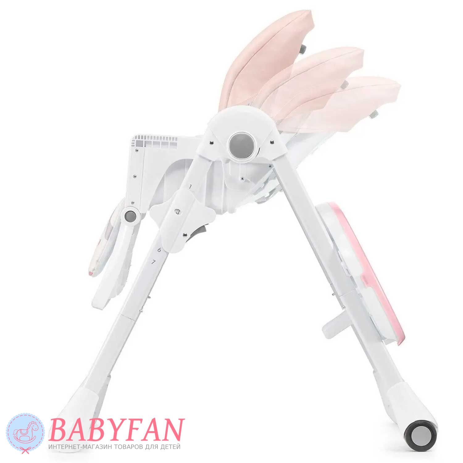 М'який чохол Kinderkraft Yummy виготовлений з екошкіри, легко та швидко очищається вологою серветкою. За безпеку дитини відповідають 5-точкові ремені безпеки з м'якими накладками. Ремені регулюються за висотою та довжиною. Застібаються надійним замком. Столик оснащений швидкознімною тацею, регулюється в горизонтальній площині в 3 положеннях. Таця має заглиблення для пляшечки. У столик вмонтований упор між ніг, що запобігає зісковзування не пристебнутої дитини під столик. Для легкого переміщення в межах кімнати на задніх ніжках є гумові колеса, на передніх – накладки, що не ковзають. Компактно складається для зберігання.
