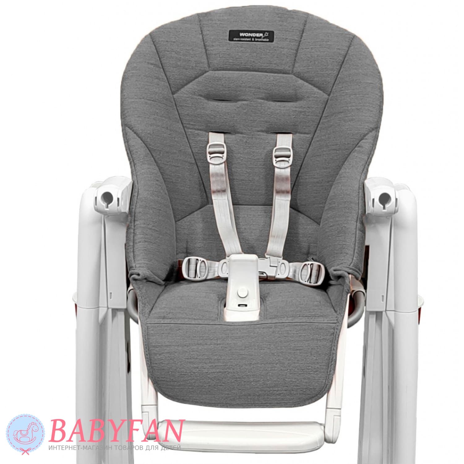 За безпеку малюка відповідають спеціальні ремені та перемичка між ніжками – дитина не зможе самостійно вискочити або сповзти вниз. Стійкість широкої основи гарантує, що навіть при максимальному навантаженні стільчик не перекинеться набік. Комплекс усіх якостей робить цей стільчик найкращим у своїй категорії.