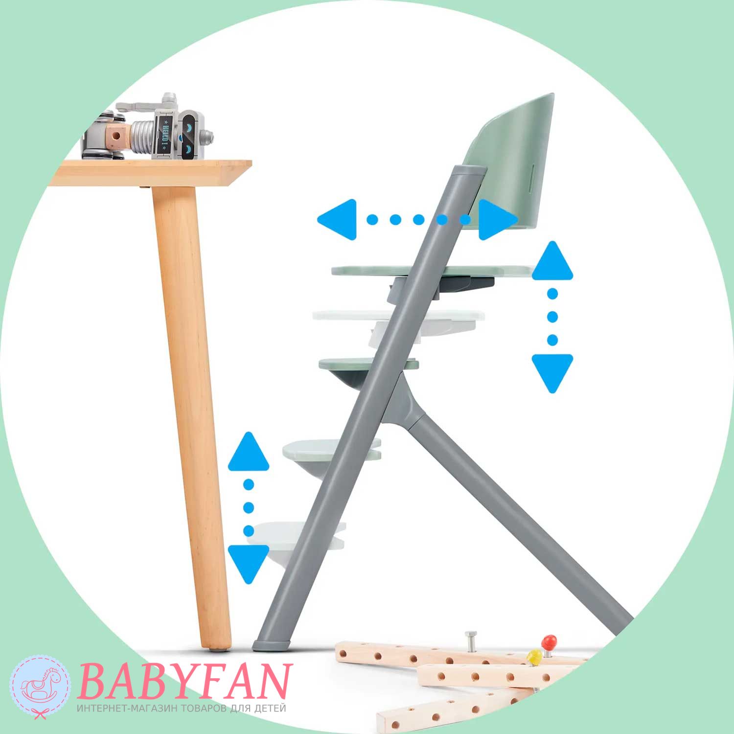 - високий стільчик для годування – для дітей віком від 6 місяців до 3 років;
