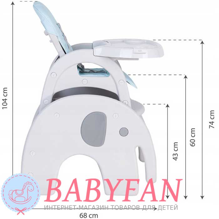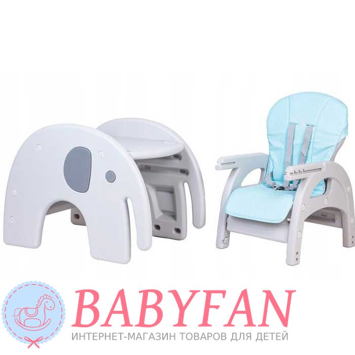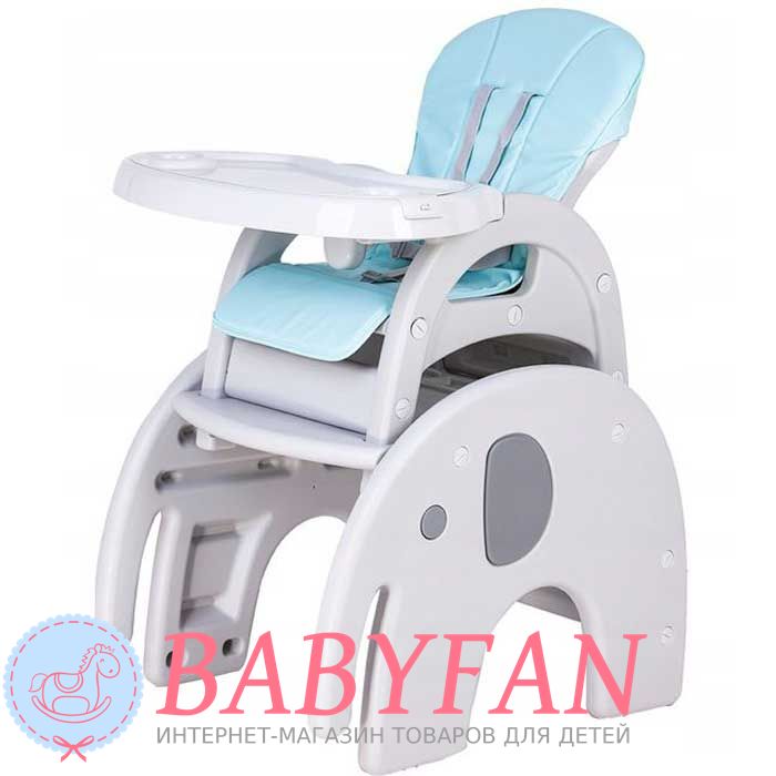 Стільчик трансформер EcoToys Slonik – стільчик-трансформер для годування забезпечить зручний прийом їжі для вашого малюка. Високофункціональне крісло призначене для комфорту малюка та зручності батьків. Це і високе крісло для годування та окремий столик зі стільцем. Висока функціональність крісла забезпечить використання багато років. Зручне регулювання дозволить трансформувати його відповідно до зростання дитини. Оснащені ременями безпеки. Оббивку можна зняти для очищення, зносостійка, надовго збереже добрий зовнішній вигляд. Витримує навантаження до 50 кг! Призначений для дітей від півроку та до 6 років!
