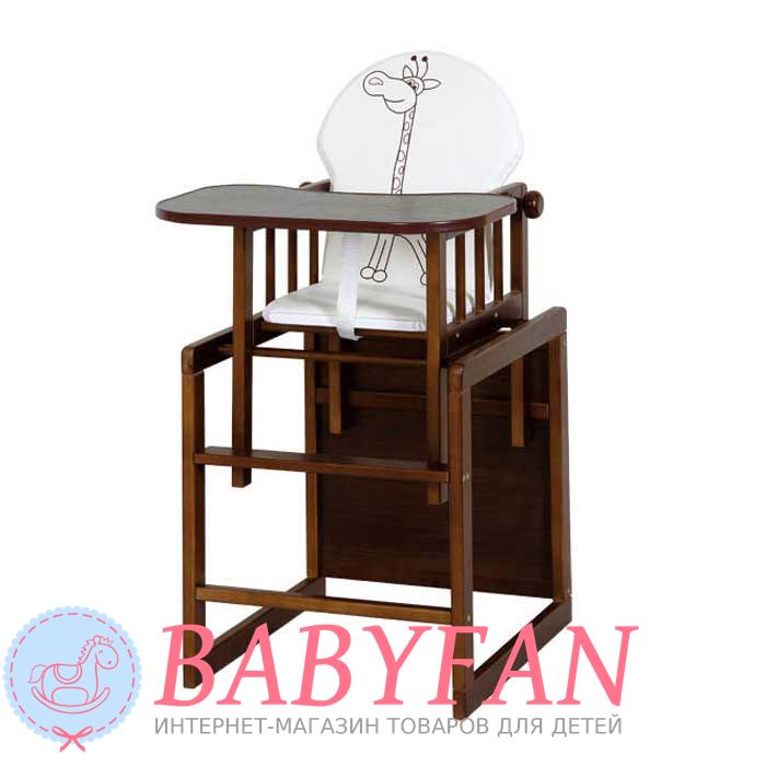 Стільчик для годування Klups Agnieszka III Zyrafka - зручний стільчик-трансформер для дітей від 6 місяців до 3-4 років. Швидко трансформується в стіл та стільчик. Стільниця знімна, ламінована, коли дитина підросте можна зняти тацю і посунути стільчик до дорослого столу.