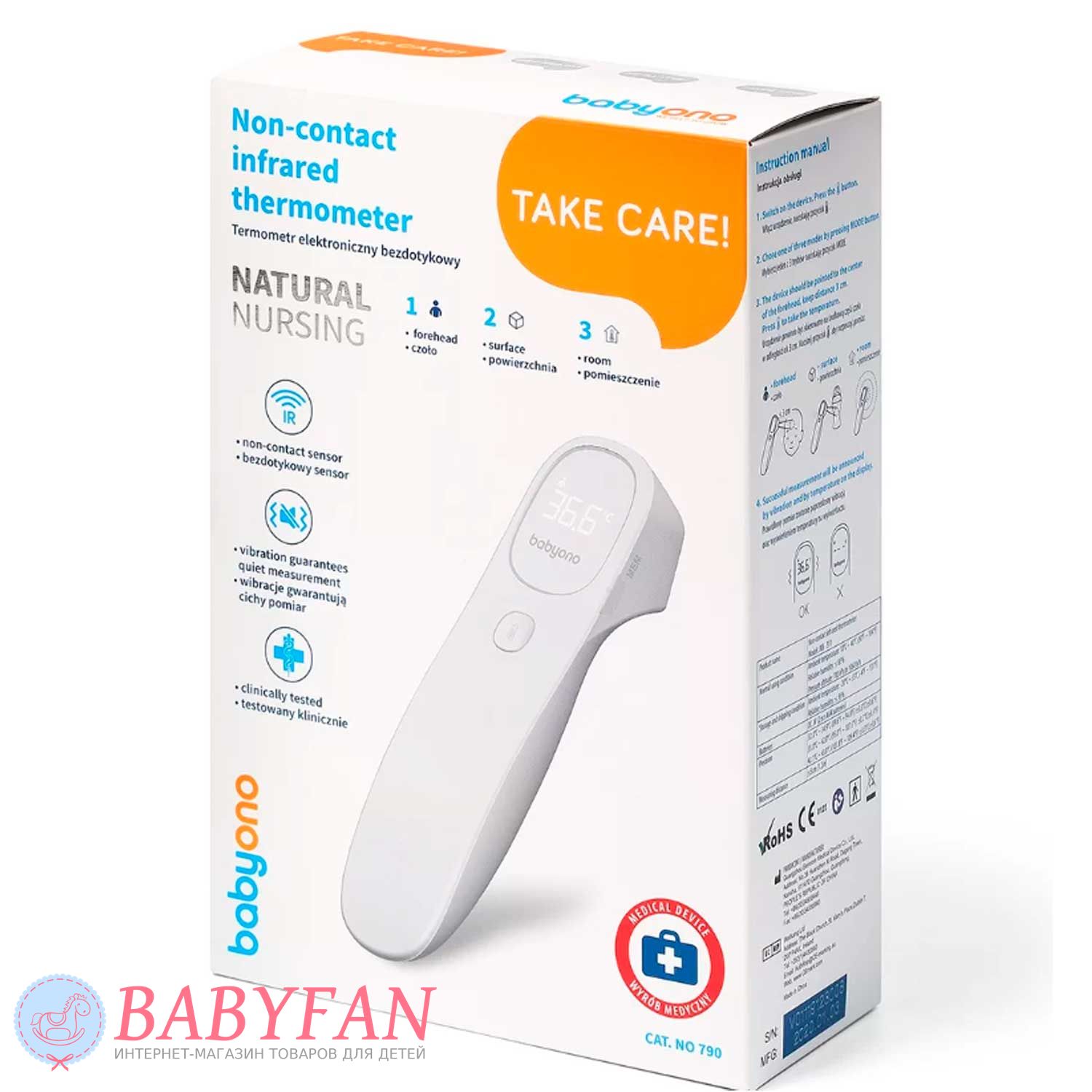 Термометр електронний Natural Nursing BabyOno 790 – безшумний та унікальний це термометр дозволяє вимірювати температуру на відстані за допомогою реєстрації променів теплового випромінювання. За допомогою цього термометра ви можете вимірювати температуру, поки дитина спить. Термометр вимірює також температуру предметів, їжі, рідин тощо. Завдяки екрану з підсвічуванням можна користуватися термометром також уночі.