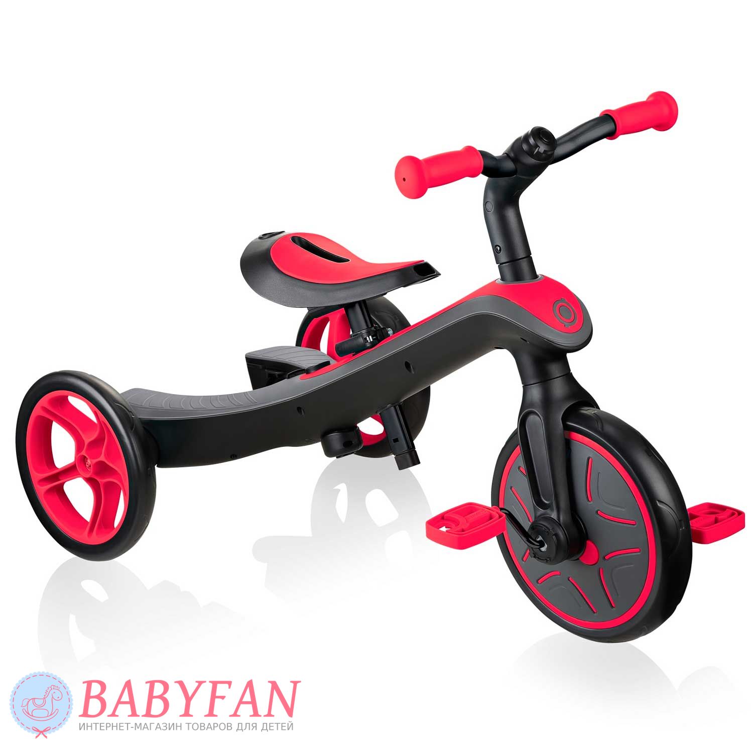 Globber Explorer Trike 2 в 1 – це дитячий триколісний велосипед для дітей від 2 до 5 років, який завдяки фірмовому запатентованому колісному механізму трансформується у двоколісний беговел – без викрутки, гайкового ключа та шестигранника. Виготовлений з легкого та міцного матового пластику та металу, покритого стійкою порошковою фарбою. Підходить для хлопчиків та дівчаток. Зібраний якісно – не люфт, не скрипить. Сидіння регулюється по висоті. Педалі знімні, фіксуються під сидінням – не загубляться. Ручки покриті прогумованими накладками - грипсами.
