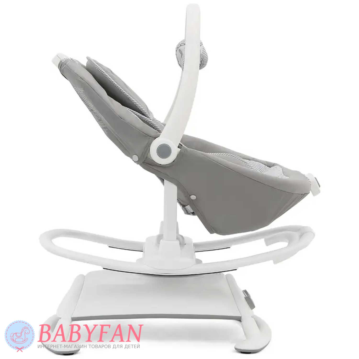 - сидіння легко знімається з бази, трансформуючись у зручний шезлонг, що гойдається від зовнішнього впливу або завдяки рухам дитини;