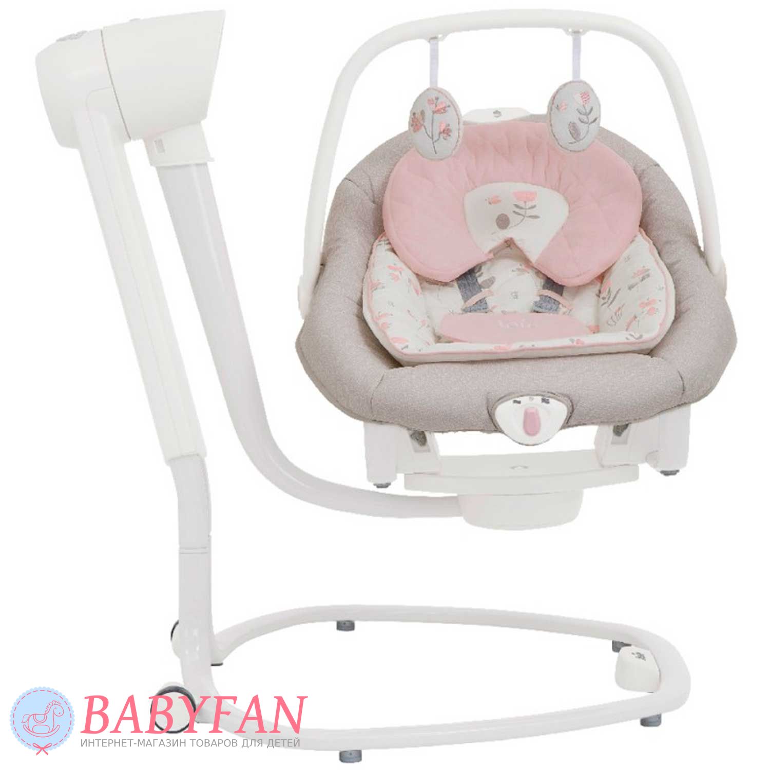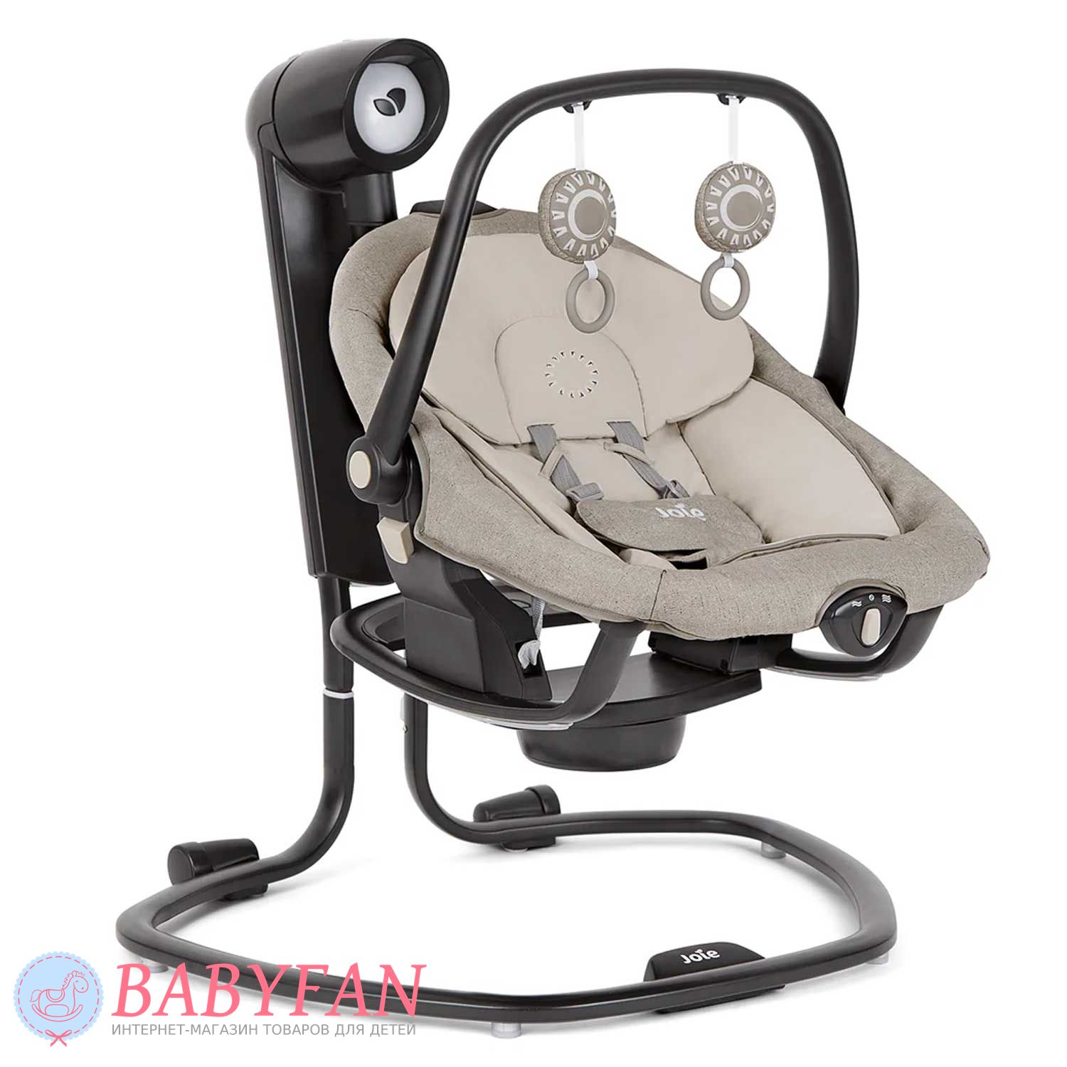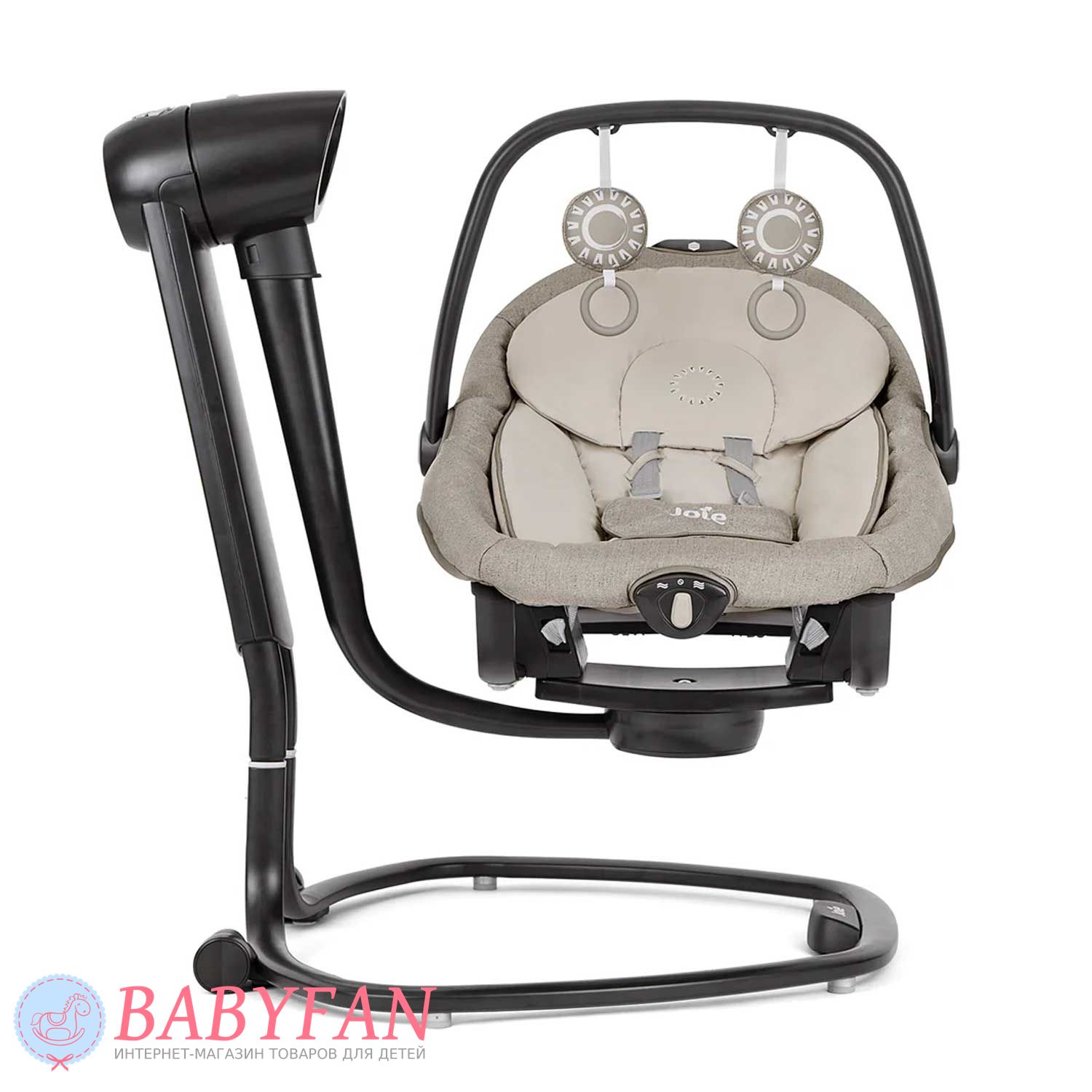 Електронні гойдалки Joie Serina 2 в 1 – оригінальна конструкція, що виконує функції гойдалки та окремого затишного переносного шезлонгу. Різні траєкторії хитання, швидкості хитання та вібрації, регульований нахил спинки, музичний супровід з мелодіями на вибір, коліщатка на основі, якісне складання та безпечні матеріали – багатофункціональний пристрій, зручний в експлуатації забезпечує дитині абсолютну безпеку та максимальний комфорт.