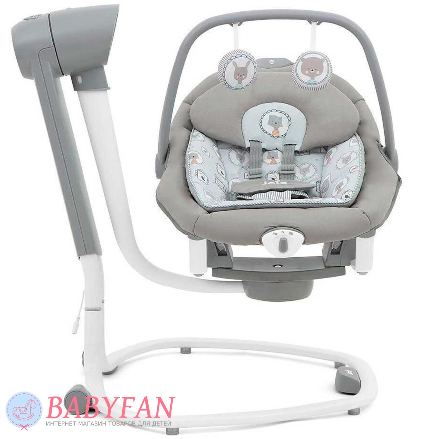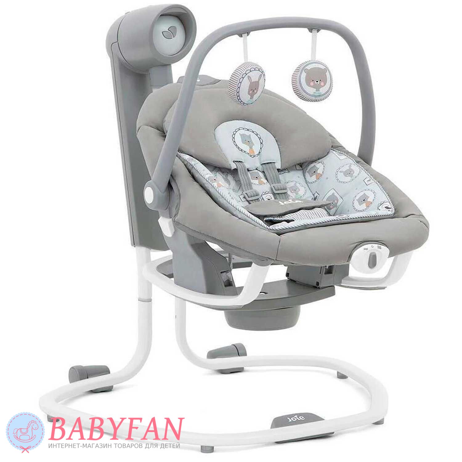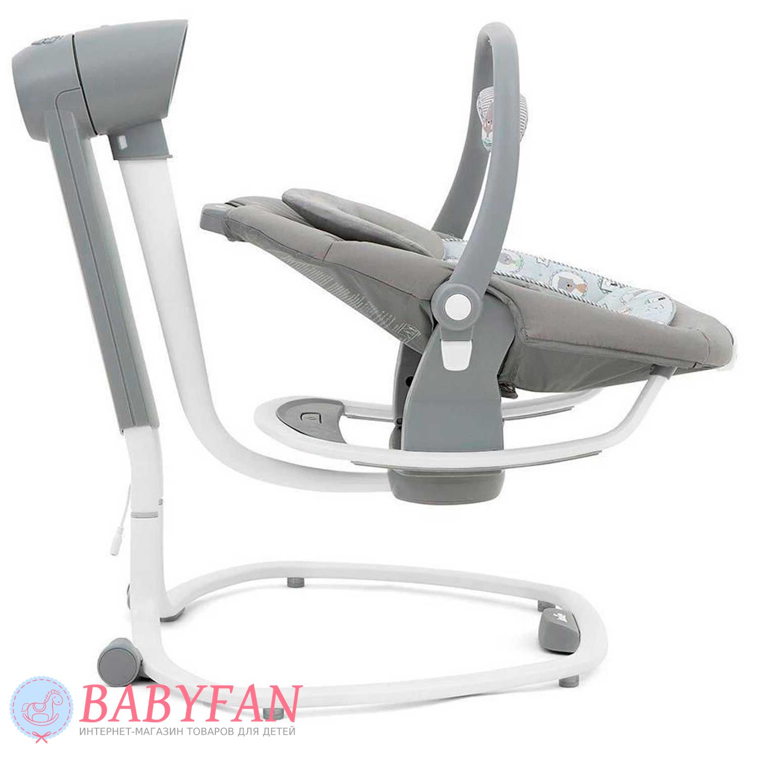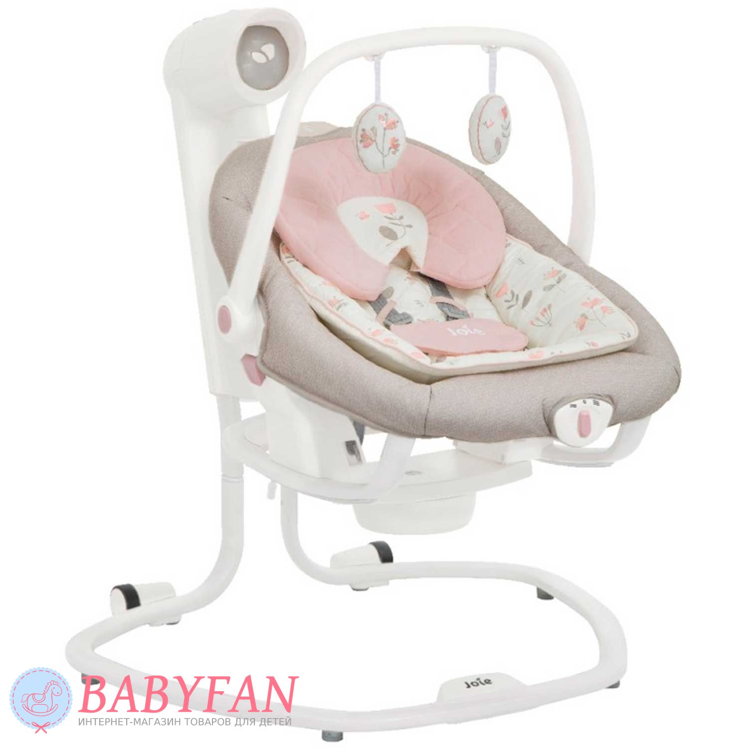 Електронні гойдалки Joie Serina 2 в 1 – оригінальна конструкція, що виконує функції гойдалки та окремого затишного переносного шезлонгу. Різні траєкторії хитання, швидкості хитання та вібрації, регульований нахил спинки, музичний супровід з мелодіями на вибір, коліщатка на основі, якісне складання та безпечні матеріали – багатофункціональний пристрій, зручний в експлуатації забезпечує дитині абсолютну безпеку та максимальний комфорт.