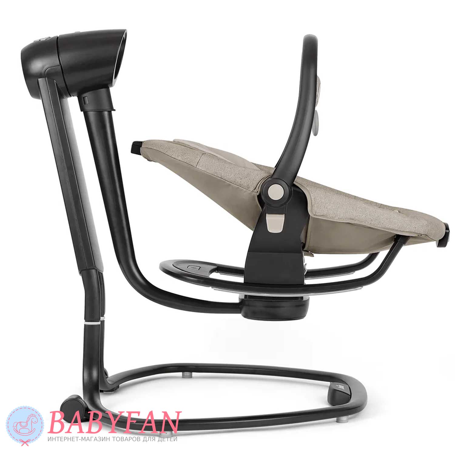 - двопозиційне сидіння щодо основи: спиною та боком до основи – у першому випадку шезлонг хитається праворуч наліво, а у другому випадку вперед-назад, така функція дозволяє оперативно повернути сидіння з дитиною до себе обличчям, не рухаючи основу;
