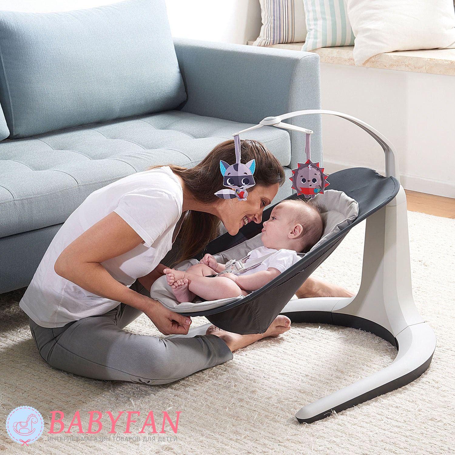 Центр Tiny Love, що заколисує, «Nature's Way Bounce and Sway» - легкий шезлонг з природним ручним хитанням по двох напрямках: вгору-вниз, з боку в бік. Смішні набивні іграшки на арці, що знімається, привертають увагу дитини. Є можливість включити будь-яку з 19 мелодій, що тривають 25 хвилин: білий шум, заколисують і веселі мотиви.