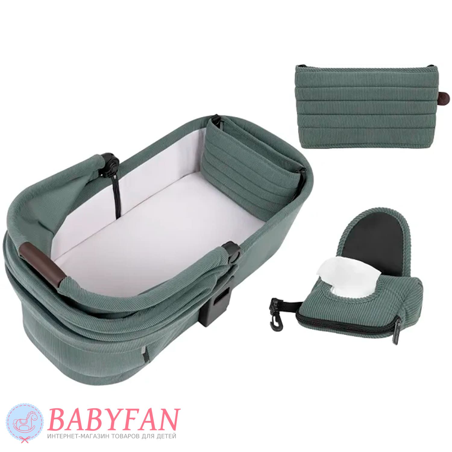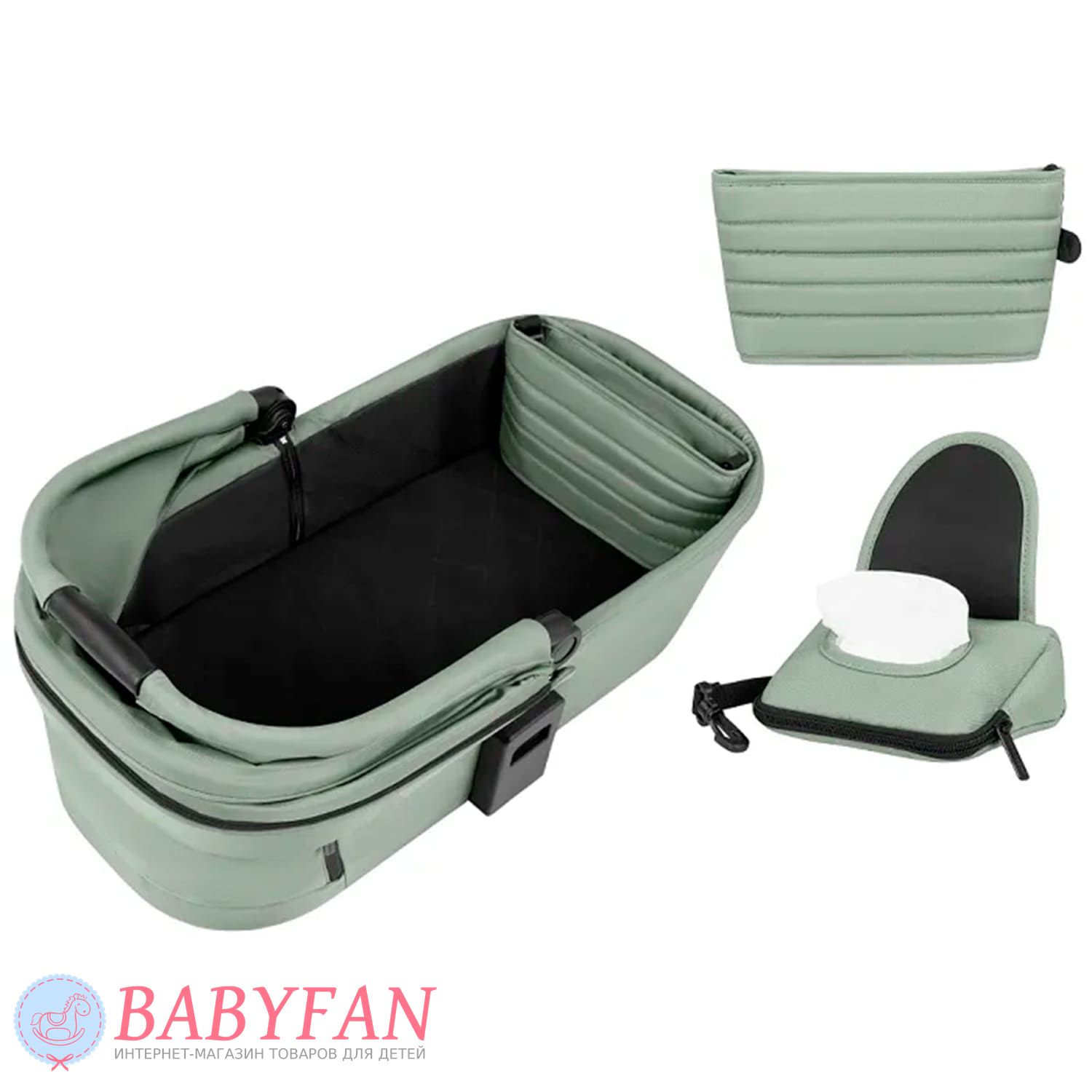 - внутрішню оббивку та частину елементів зовнішньої оббивки можна зняти при суттєвому забрудненні. Тканинні елементи стираються у прохолодній воді, можна використовувати ручний та машинний метод. Зовнішня оббивка має водовідштовхуючий ефект, що сприяє її довговічності та створенню комфортних умов для дитини під час опадів;