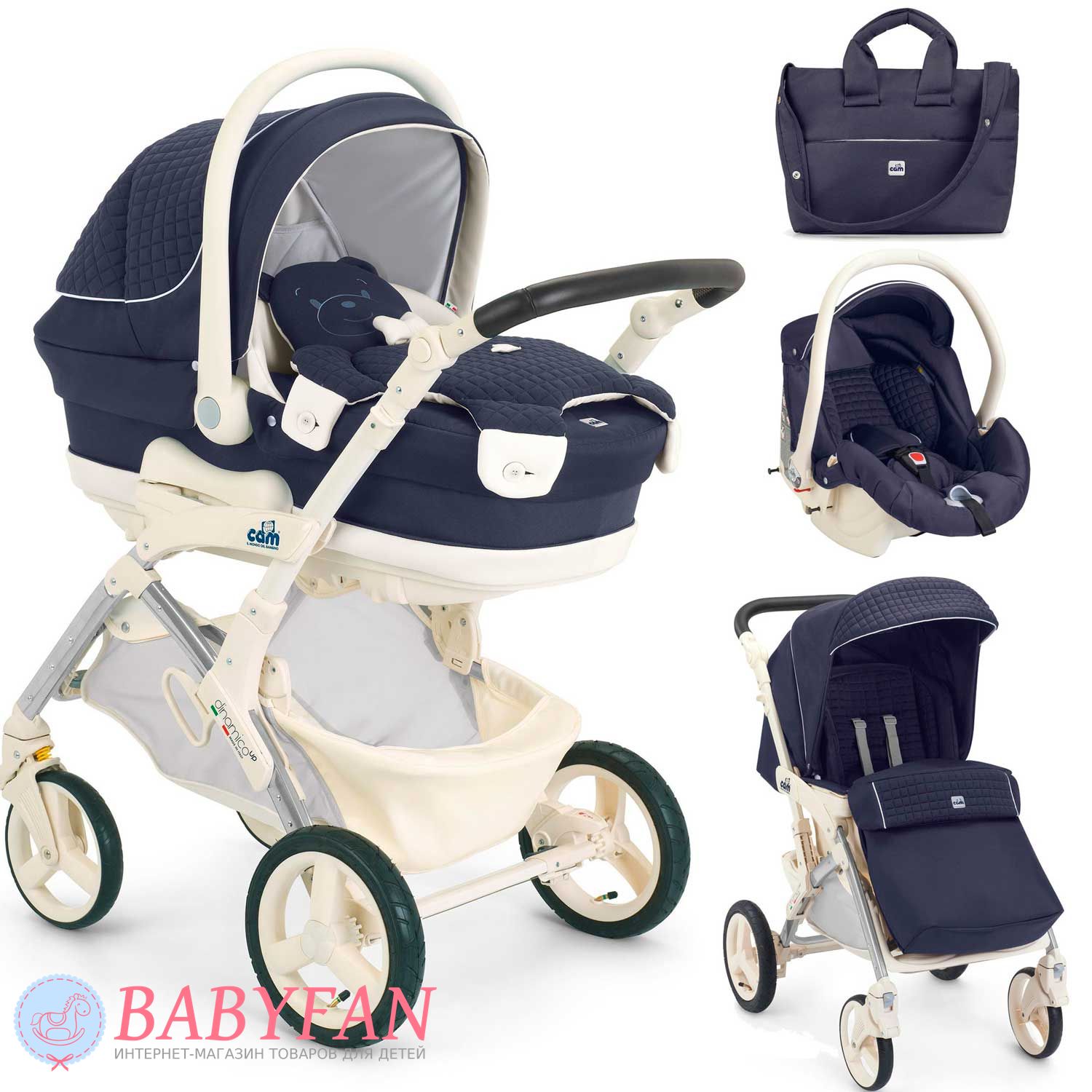 Універсальний дитячий візок CAM Dinamico – сучасний чотириколісний візок модульного типу для дітей від народження до 3 років. Складається із зимової люльки, яка підходить для транспортування в машині та реверсивного прогулянкового блоку.