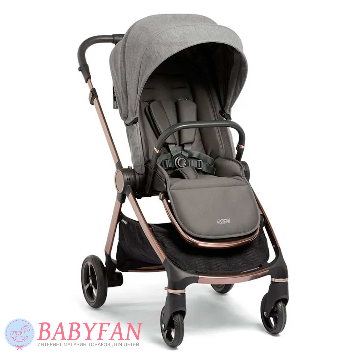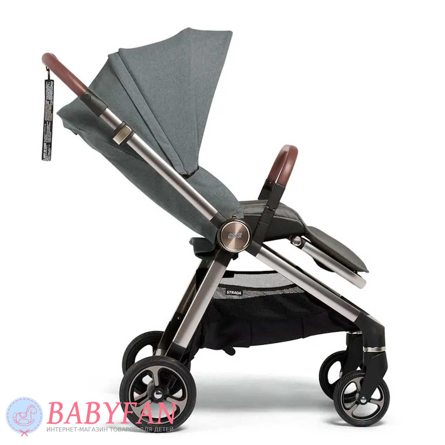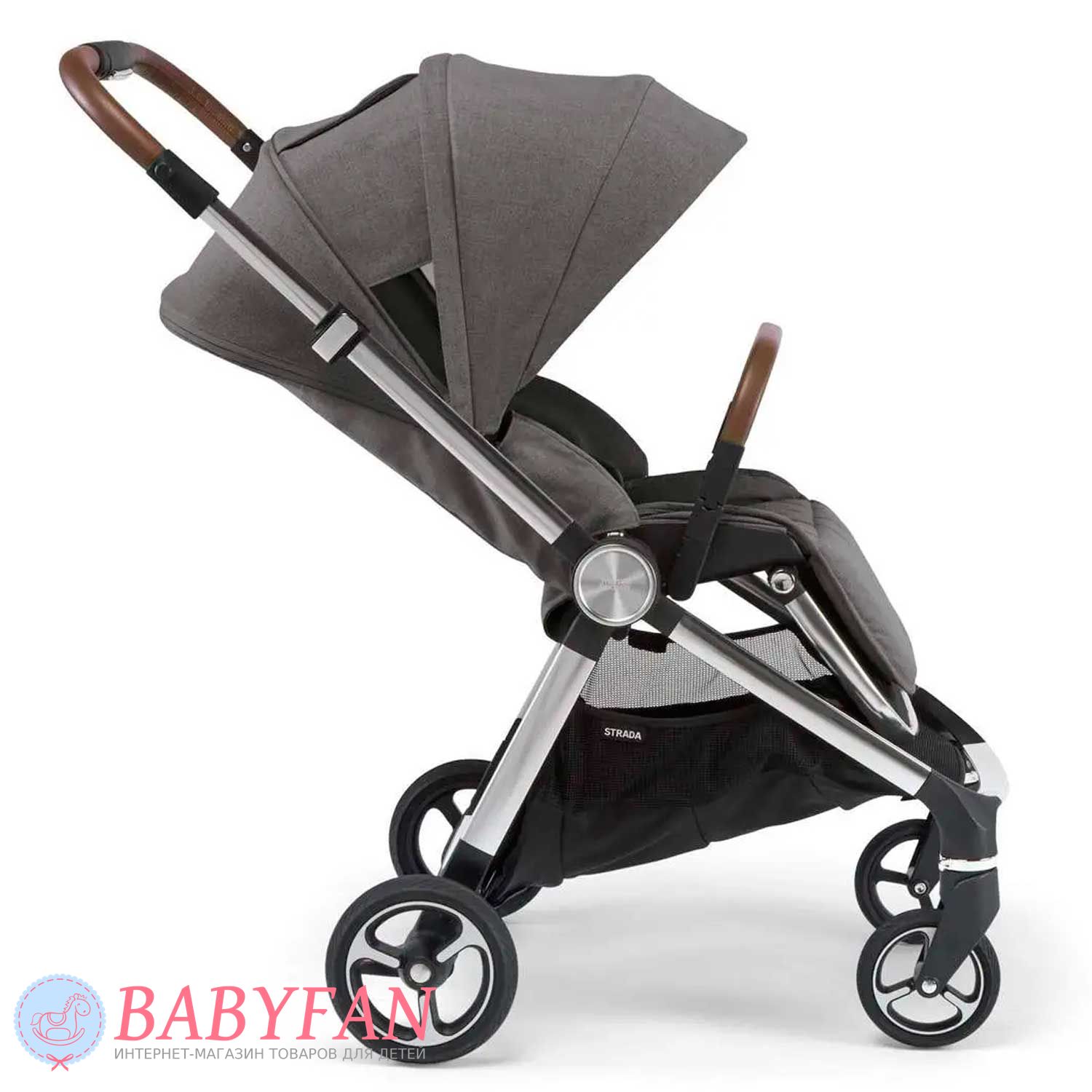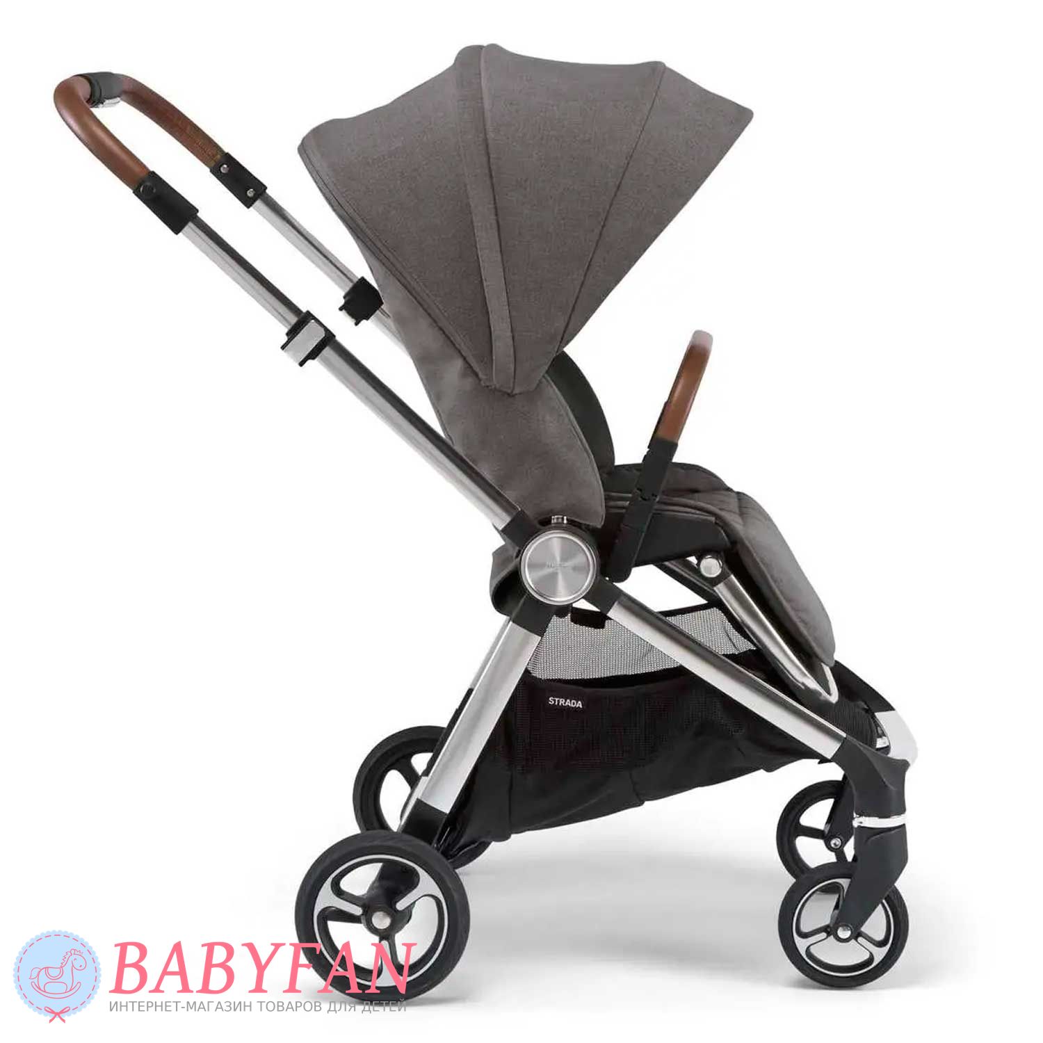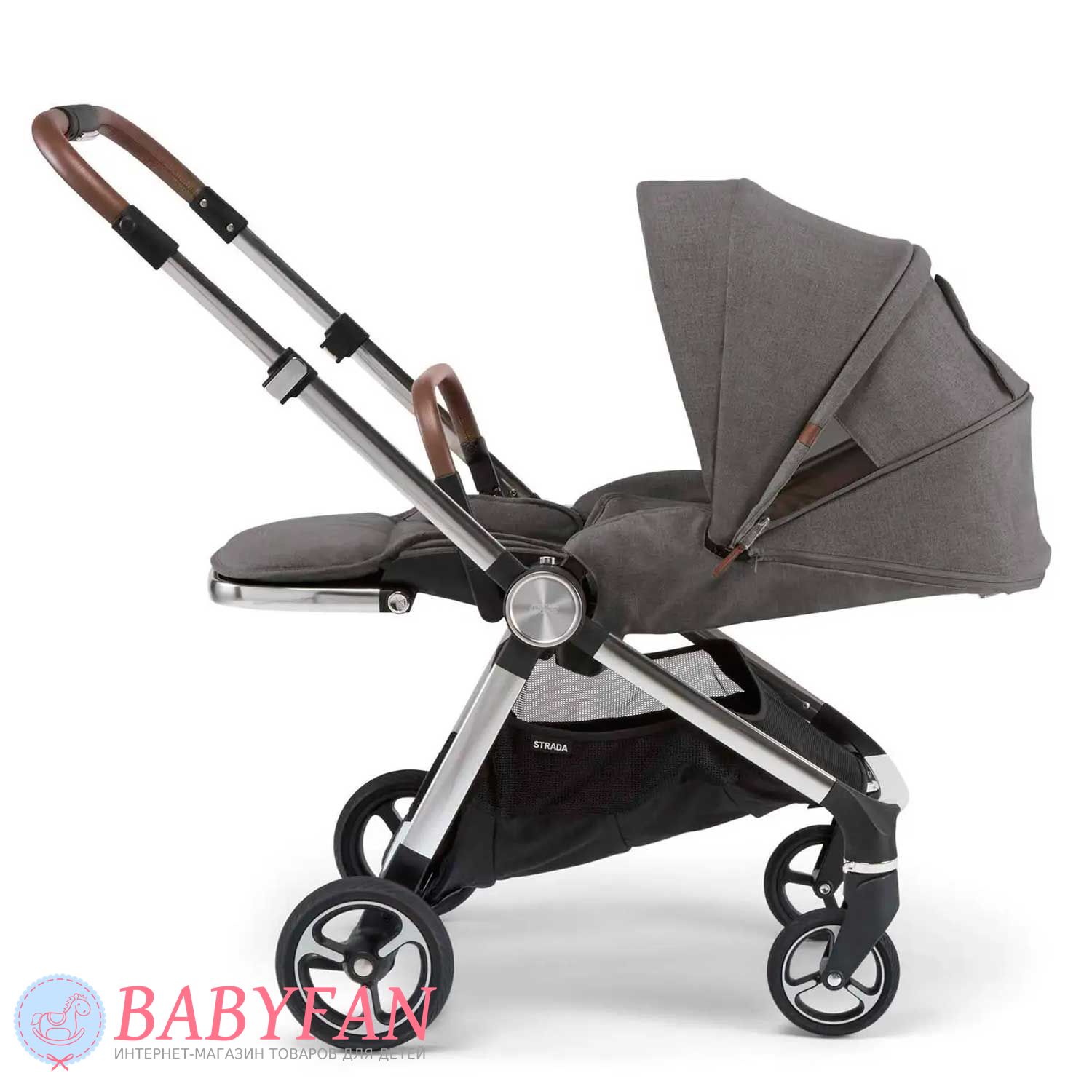 Універсальна коляска Mamas & Papas Strada є модульною системою 2 в 1, що складається з шасі, люльки для новонародженого немовляти і прогулянкового блоку для дітей від народження до 3 років. Обмеження за вагою малюка для колиски – до 9 кг, для прогулянкового блоку – до 15 кг. Виконана з якісних та міцних матеріалів: сталева хромована рама; сполучні елементи із матового пластику; покришки коліс із спіненого поліуретану; батьківська ручка та бампер з екошкіри; текстильні елементи із щільного, приємного на дотик поліестеру з додаванням натуральної бавовни – внутрішня частина люльки та підкладка прогулянкового блоку. Призначена для щоденних прогулянок з дитиною на свіжому повітрі у будь-яку пору року та будь-яку погоду. Для більшого комфорту оснащено пружинними амортизаторами.